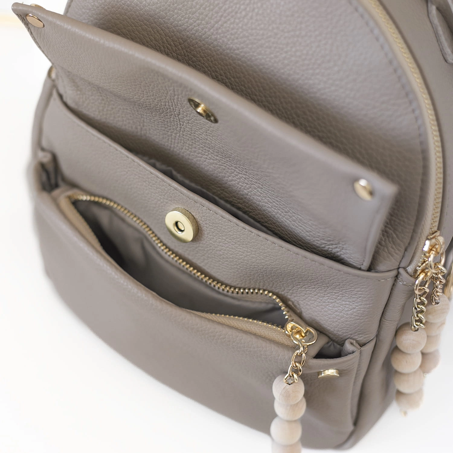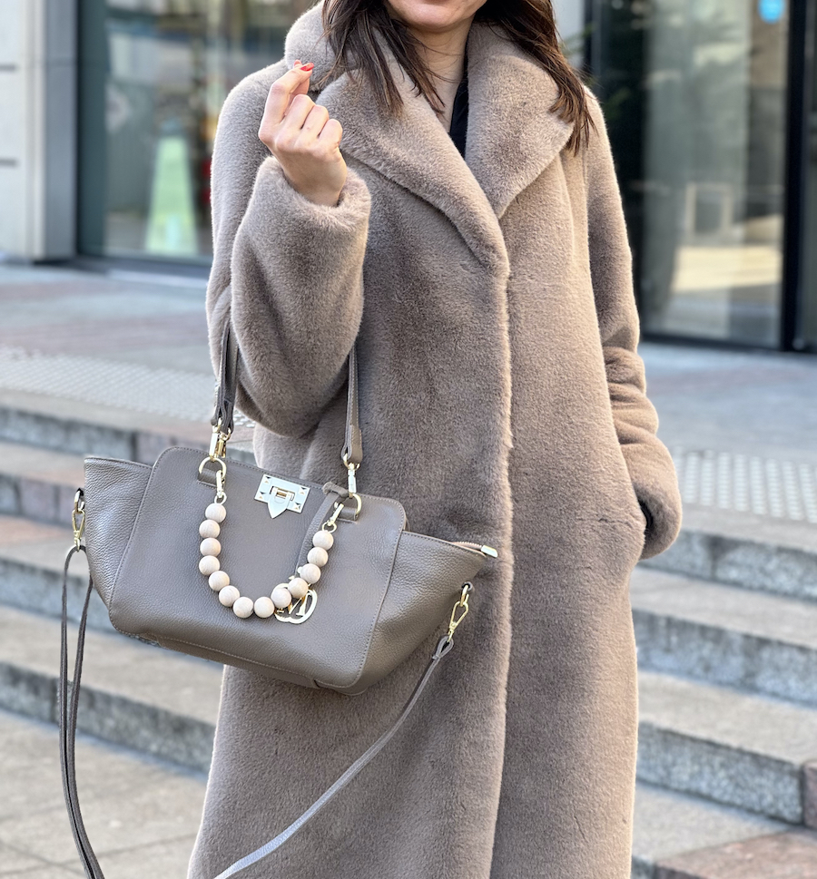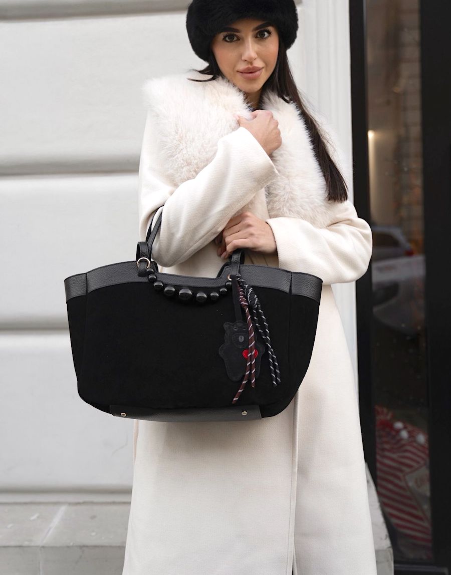 ManzanaTorebka Walencja z naturalnego zamszu z wyciąganą kosmetyczka Dwa rodzaje rączej kolor TAUPE