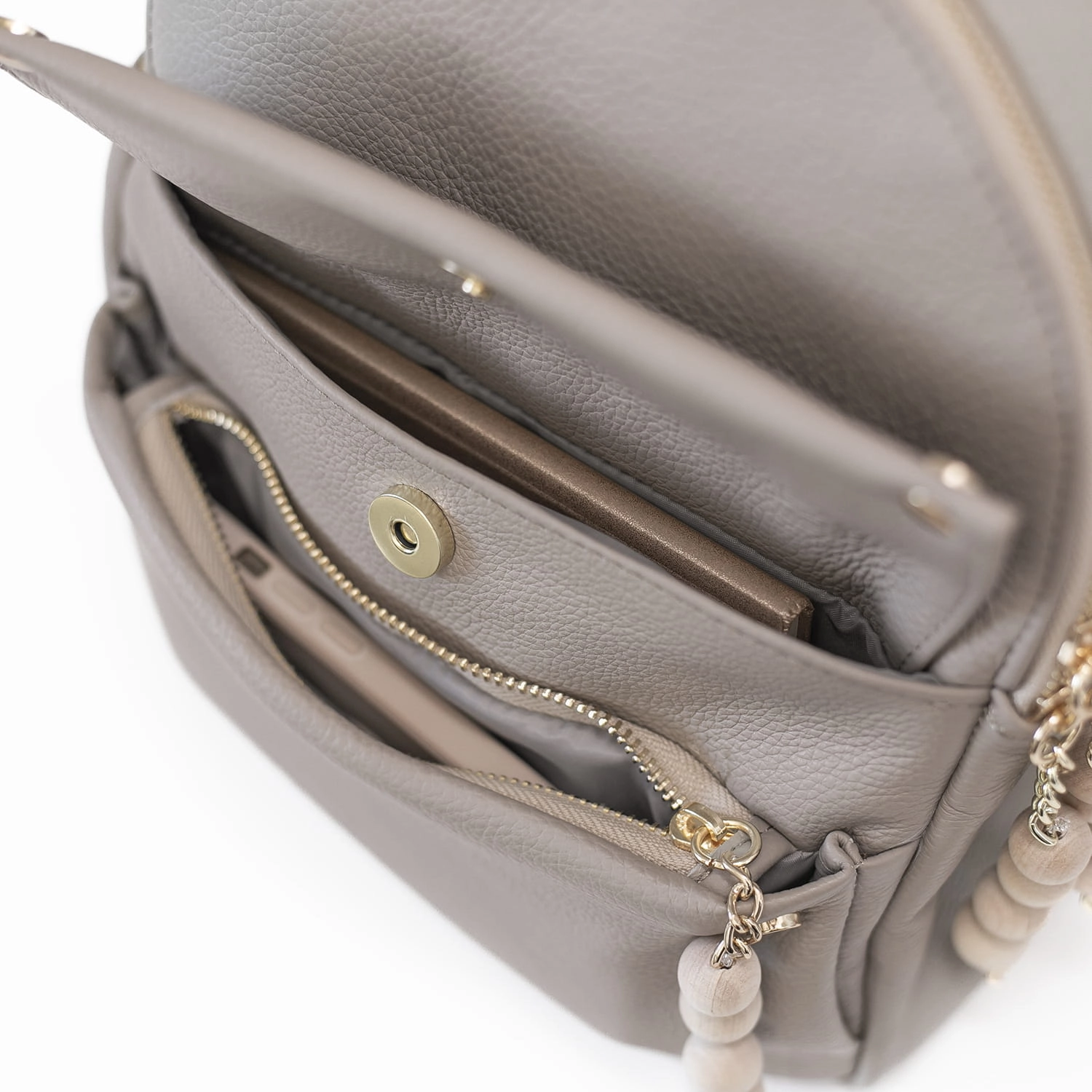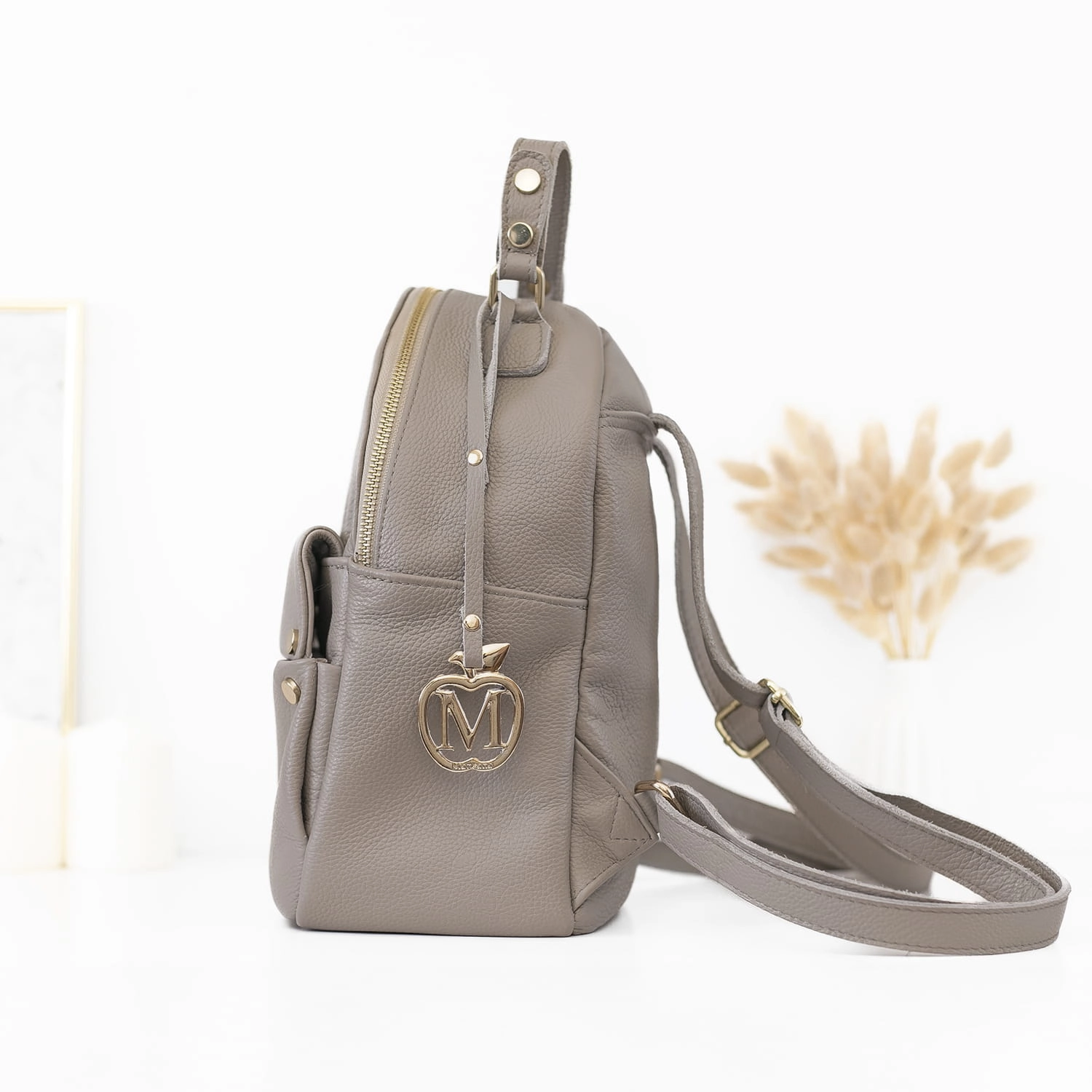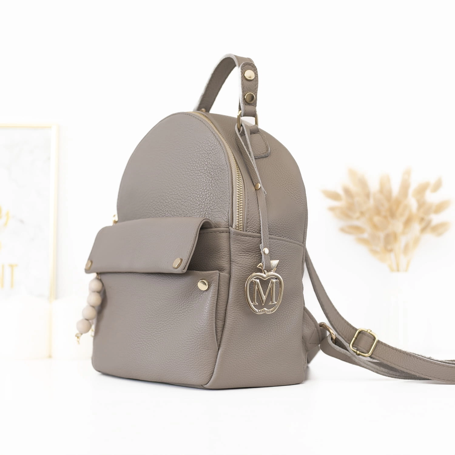 ManzanaTorebka Walencja z naturalnego zamszu z wyciąganą kosmetyczka Dwa rodzaje rączej kolor TAUPE