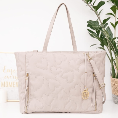 Duża i praktyczna torebka w wersji XXL. Uszyta z grubej mięsistej eko skóry która sami ręcznie pikujemy. Sami stworzyliśmy pikowanie w serca. Jest to Nasz autorski pomysł.