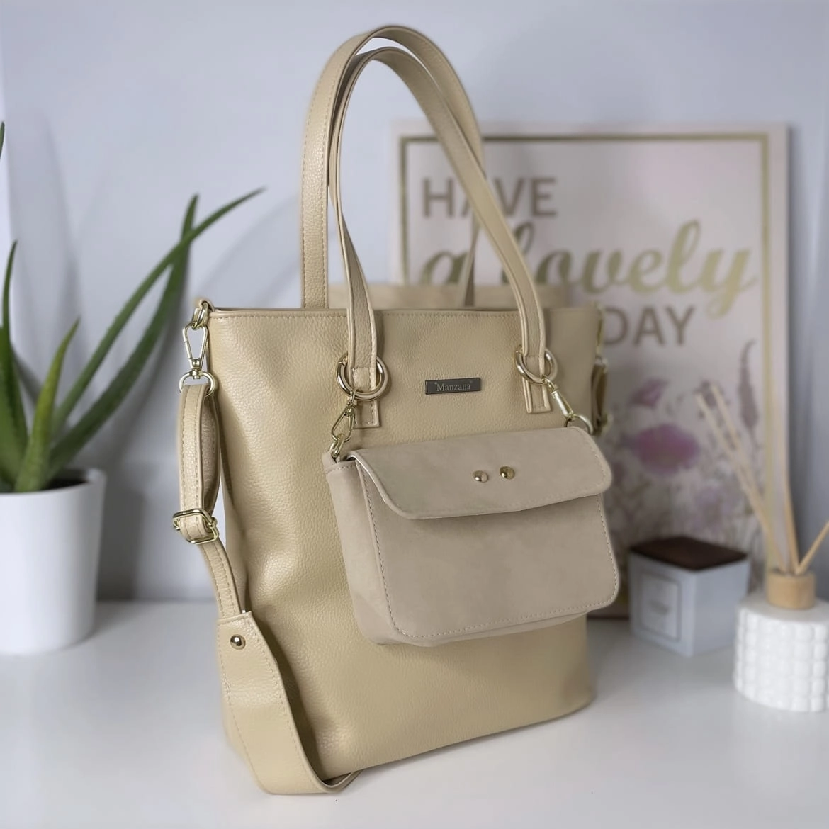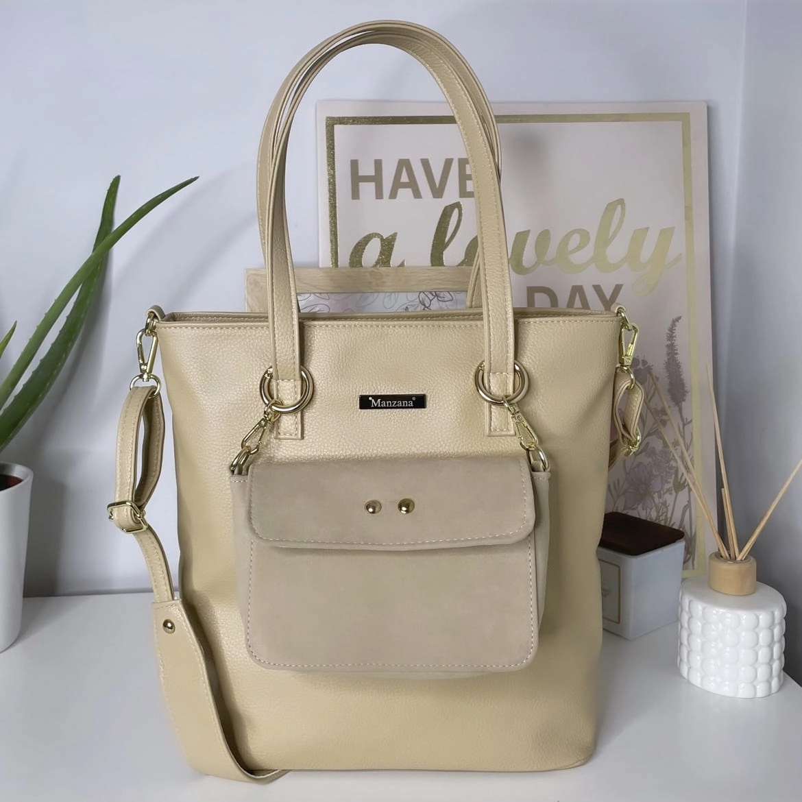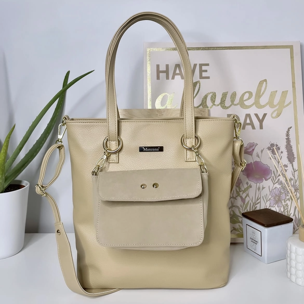 Torebka jest idealna na co dzień do pracy, szkoły czy na uczelnie a wieczorem dużą torbę zmieniamy na listonoszkę schowamy błyszczyk, telefon, portfel i idziemy np na randkę lub spotkanie...