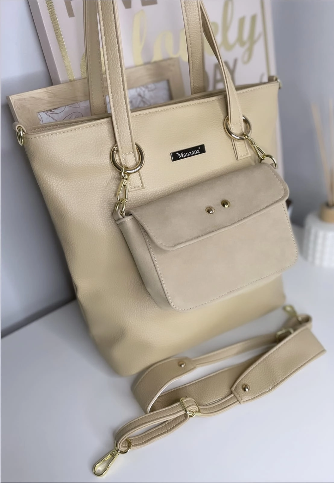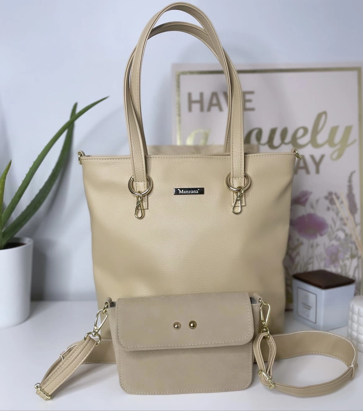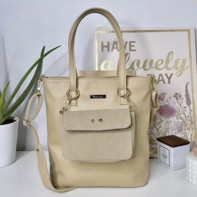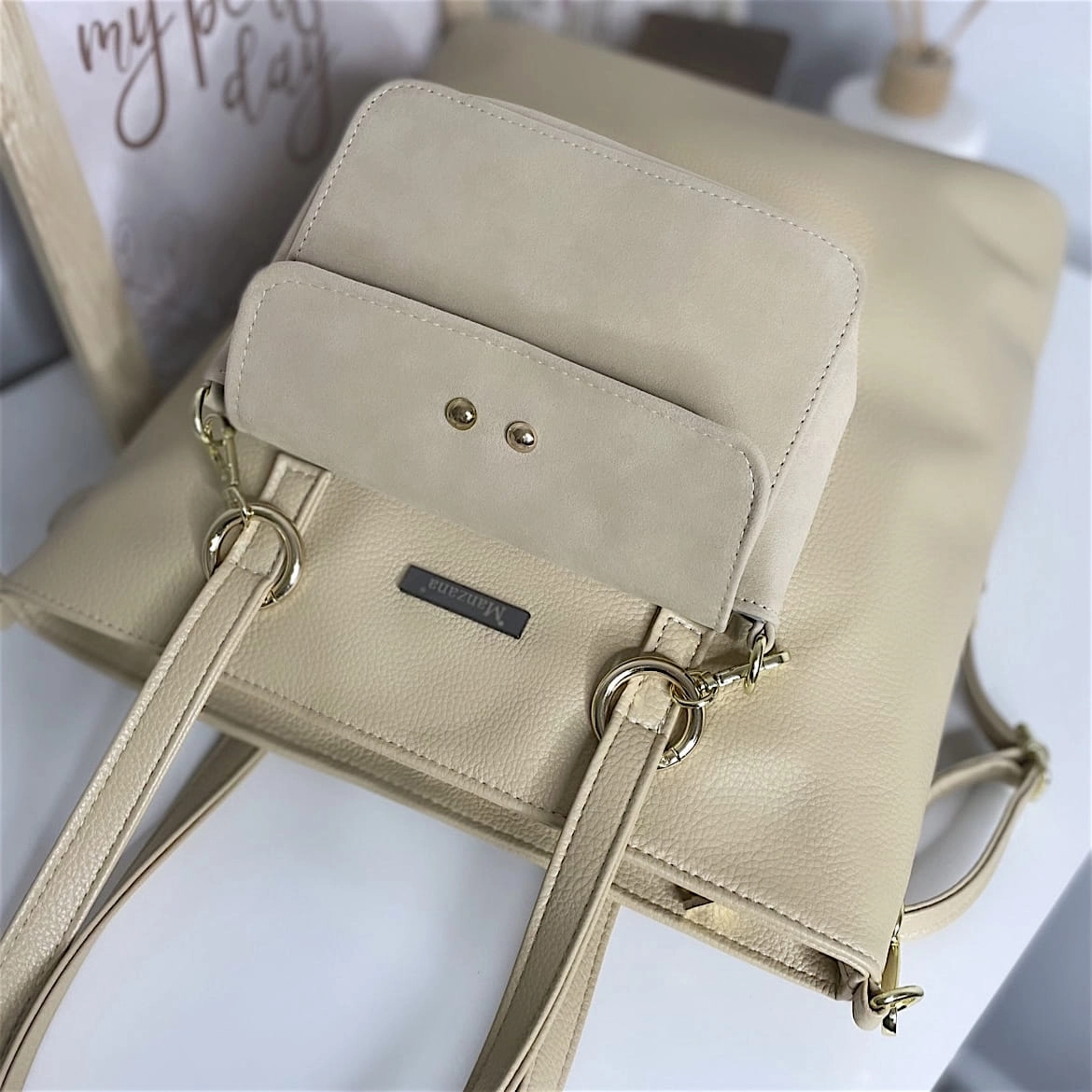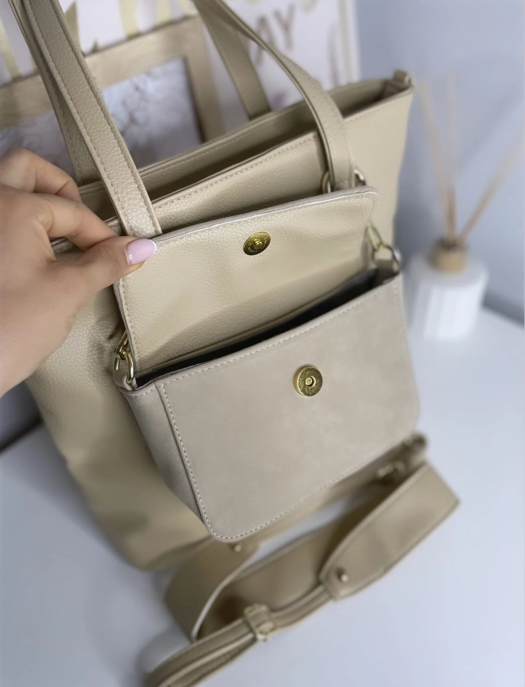 Duża torebka XL z listonoszką 2w1 Miejski Styl BEŻOWA złote dodatki