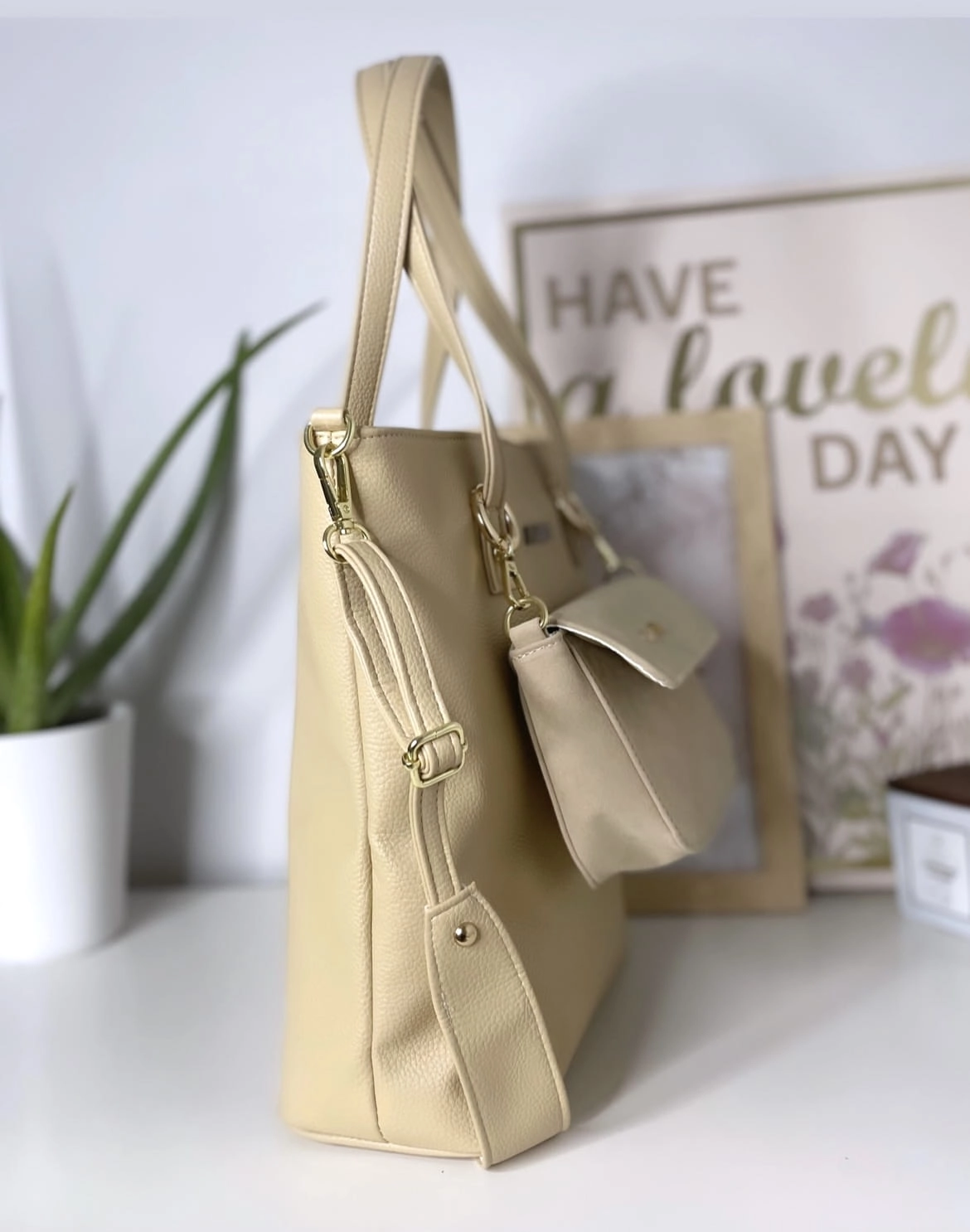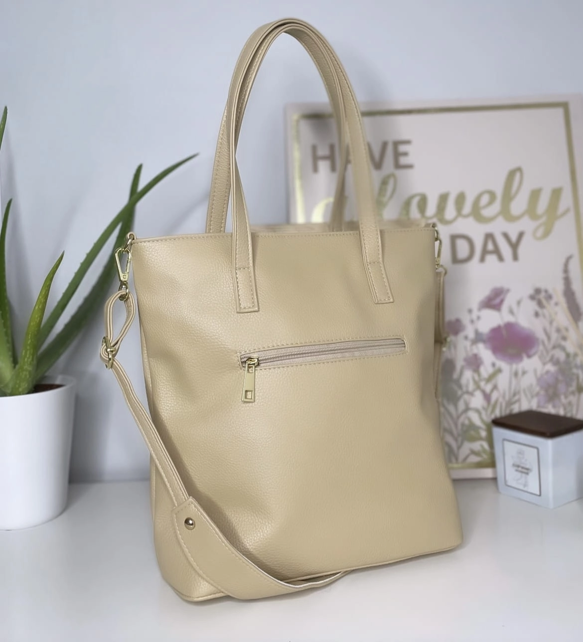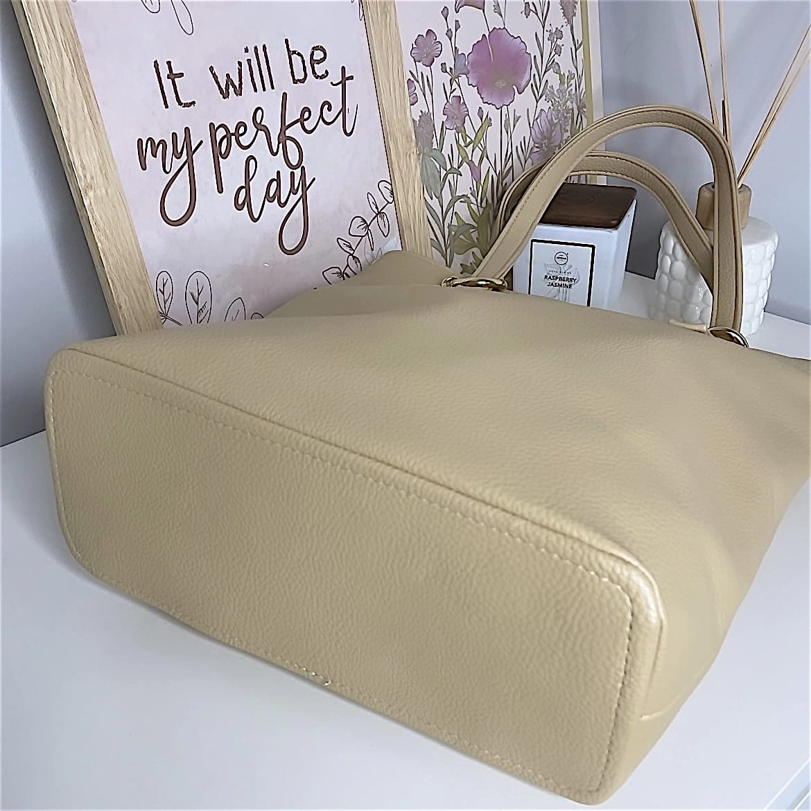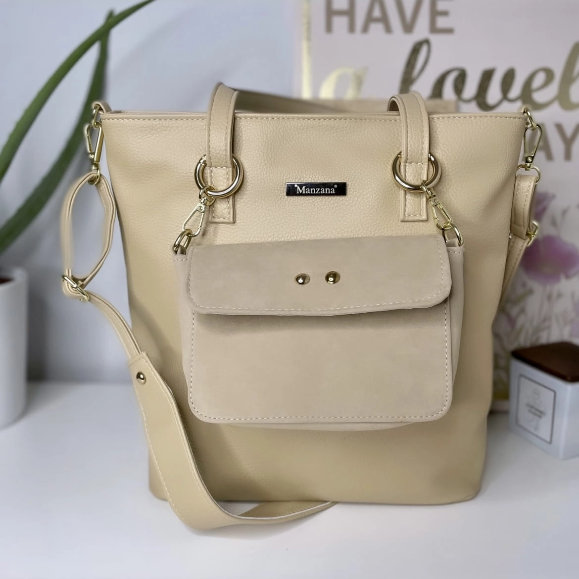 Duża torebka XL z listonoszką 2w1 Miejski Styl BEŻOWA złote dodatki