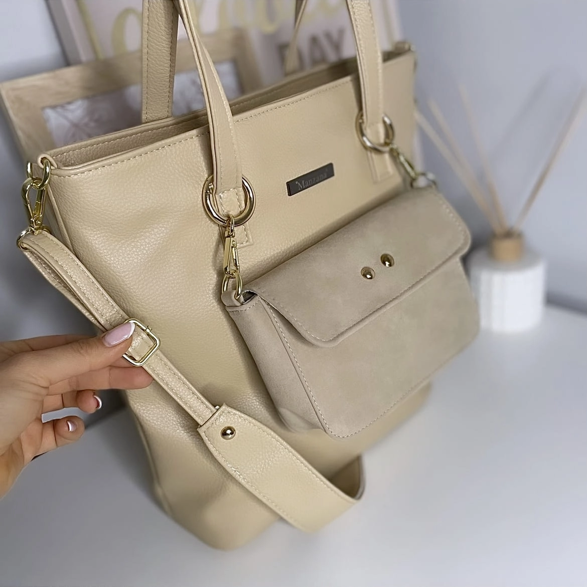Torba w wersji XL duża torebka + mała listonoszka, którą można nosić osobno lub razem.