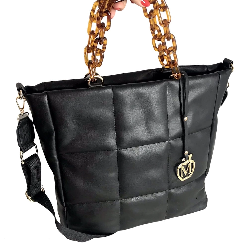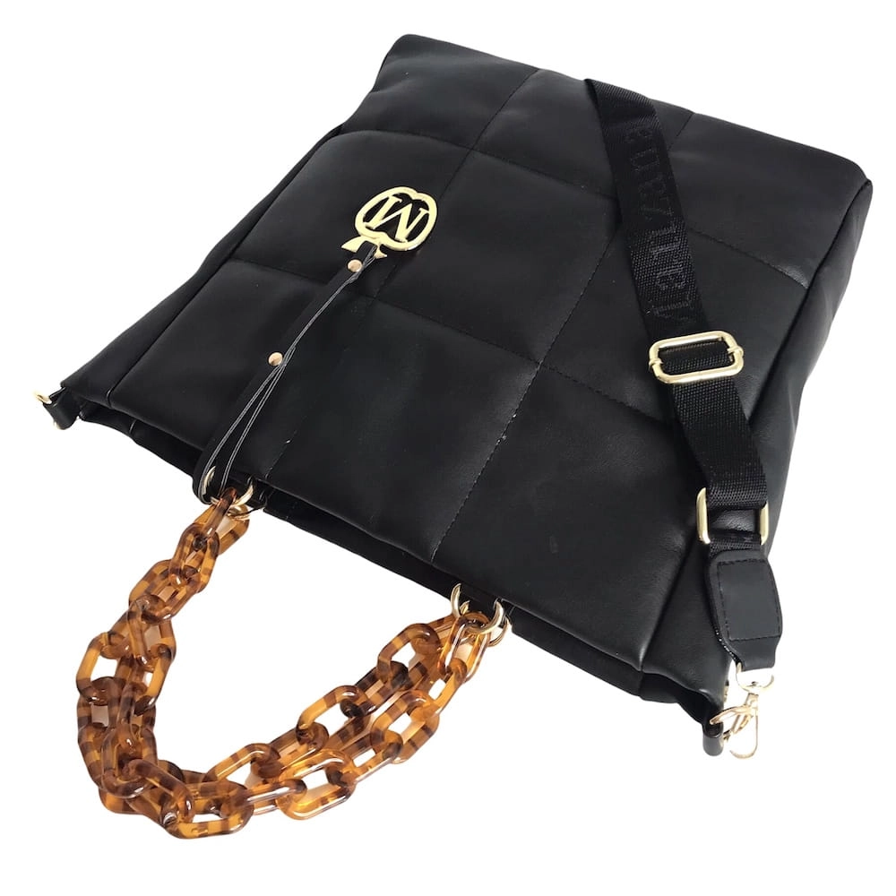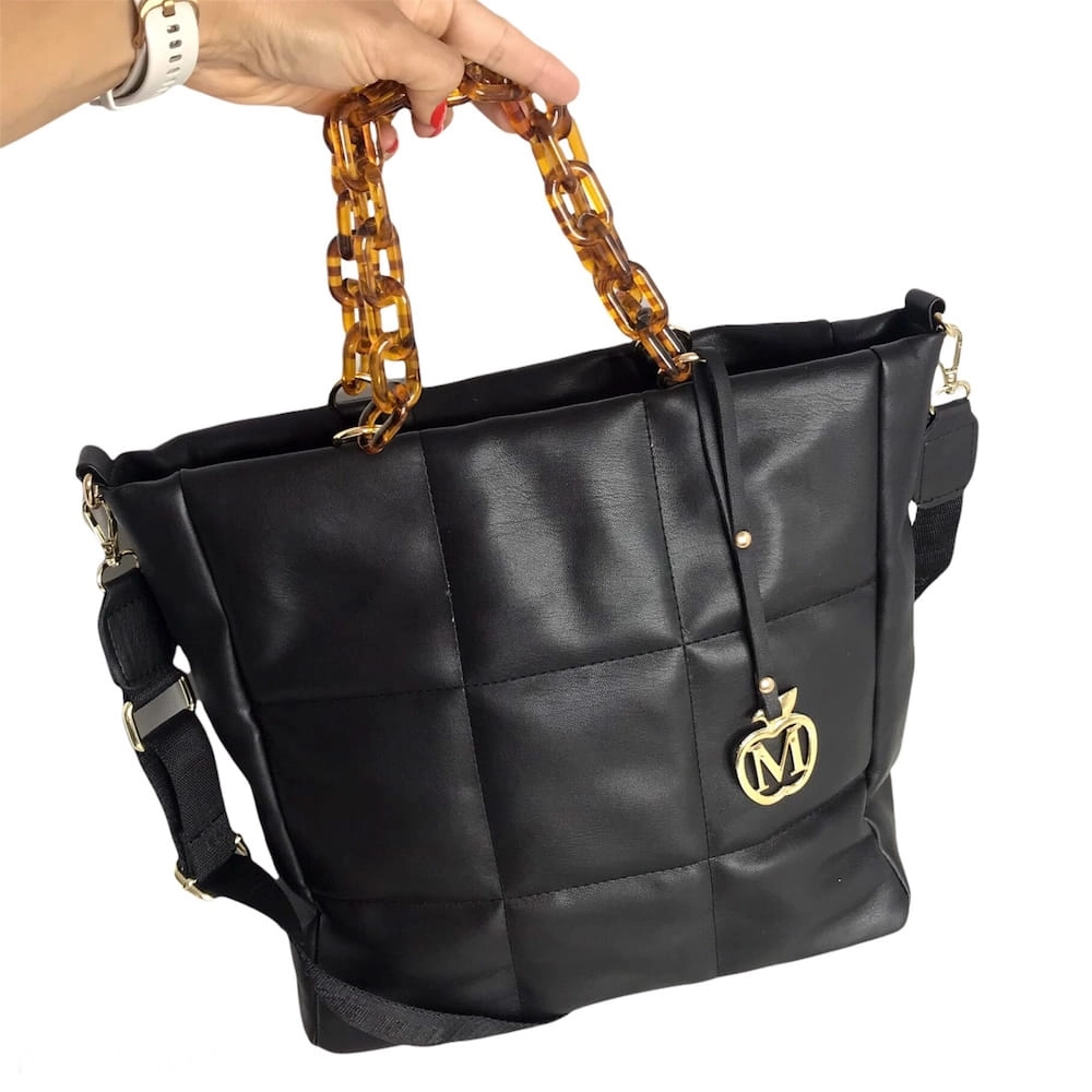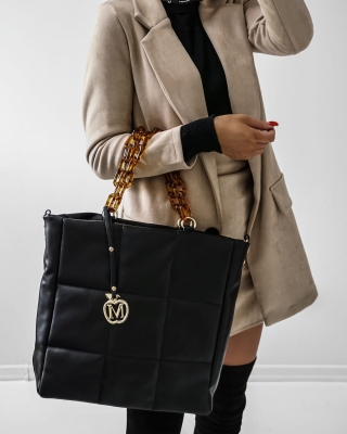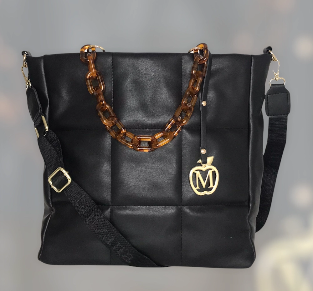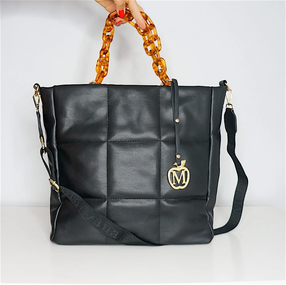 Duża torebka pikowana łańcuszek złote dodatki CZARNY - ROTA DUŻA format A4 ,