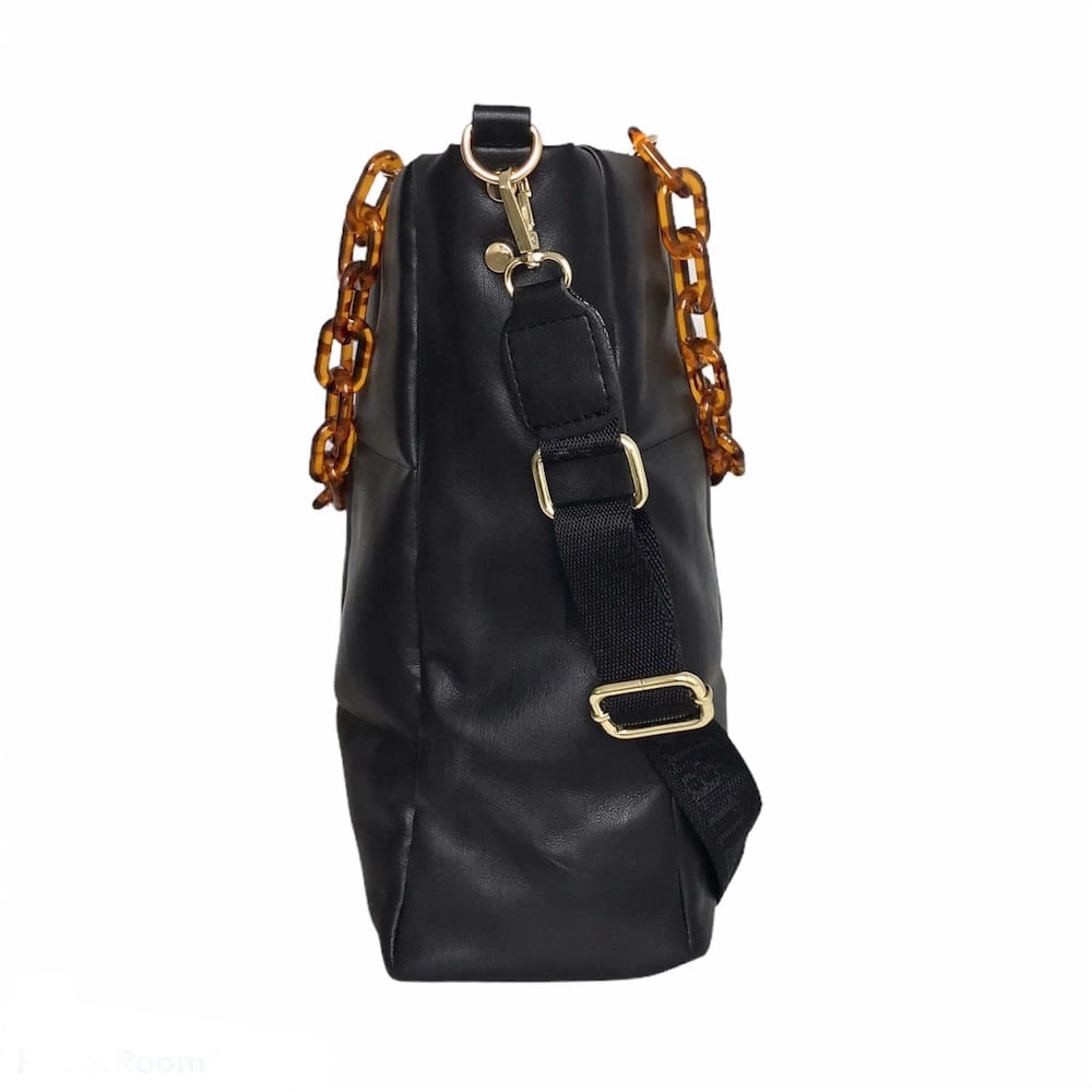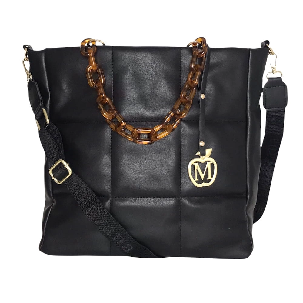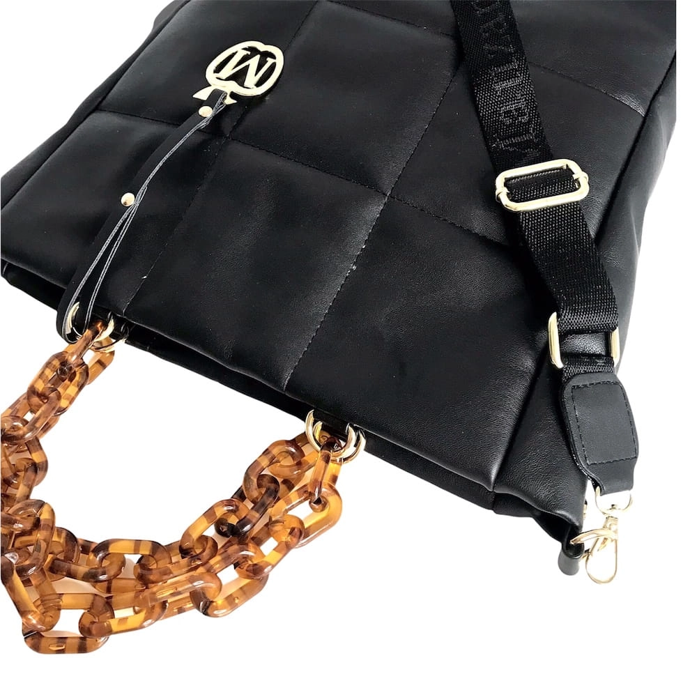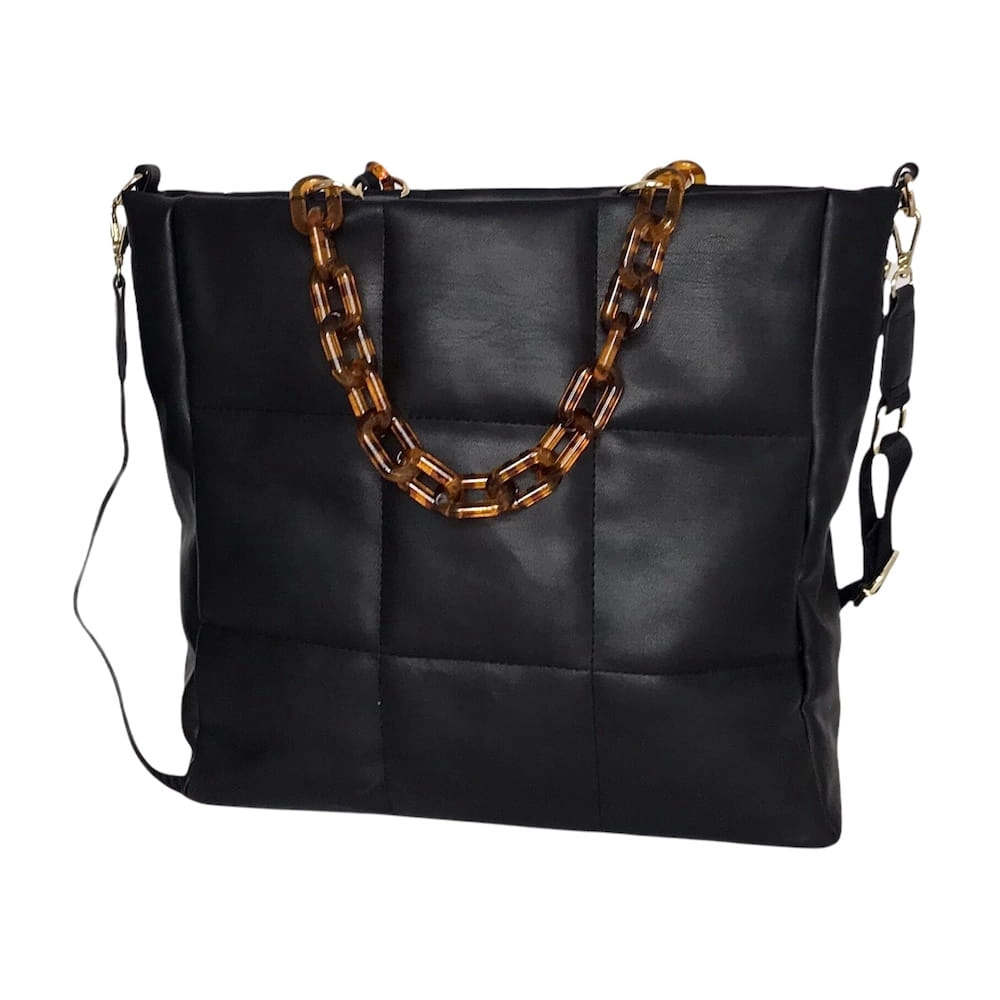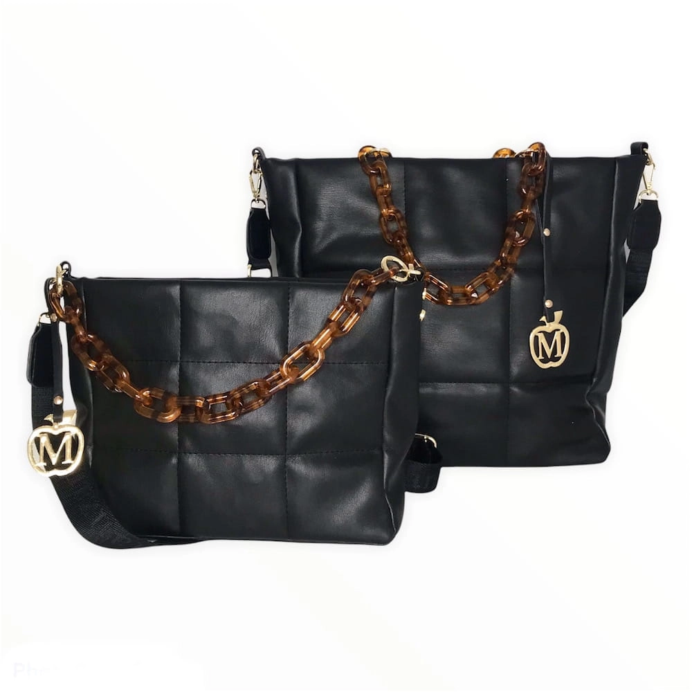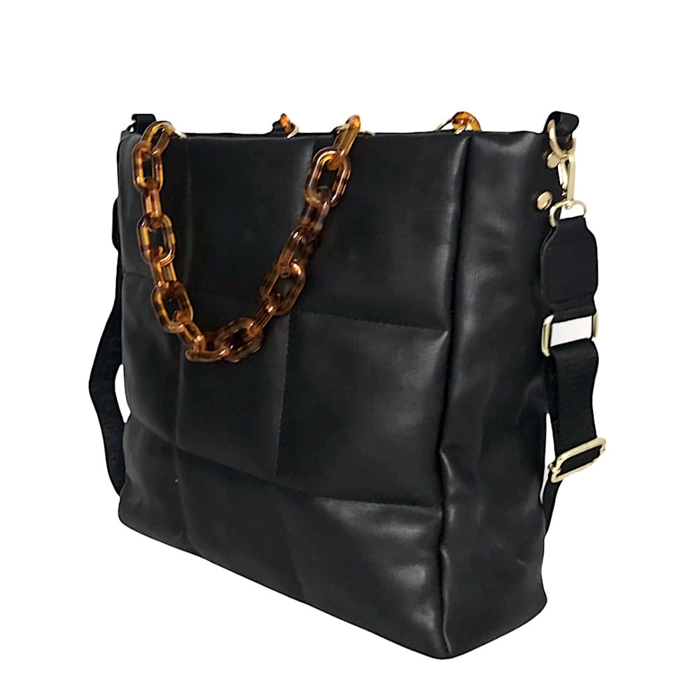 Duża torebka pikowana łańcuszek złote dodatki CZARNY - ROTA DUŻA format A4 ,