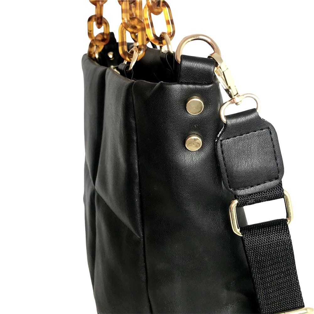 Oczywiście torebka została ręcznie uszyta a pikowanie na torebce jest przez Nas ręcznie robione. Wybraliśmy czarny kolor, dodaliśmy złote dodatki ponieważ to zawsze idealnie pasuje :)