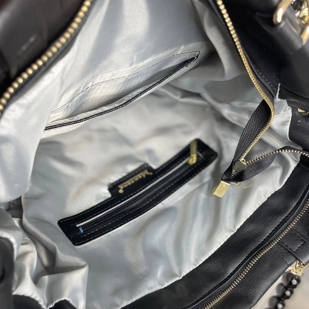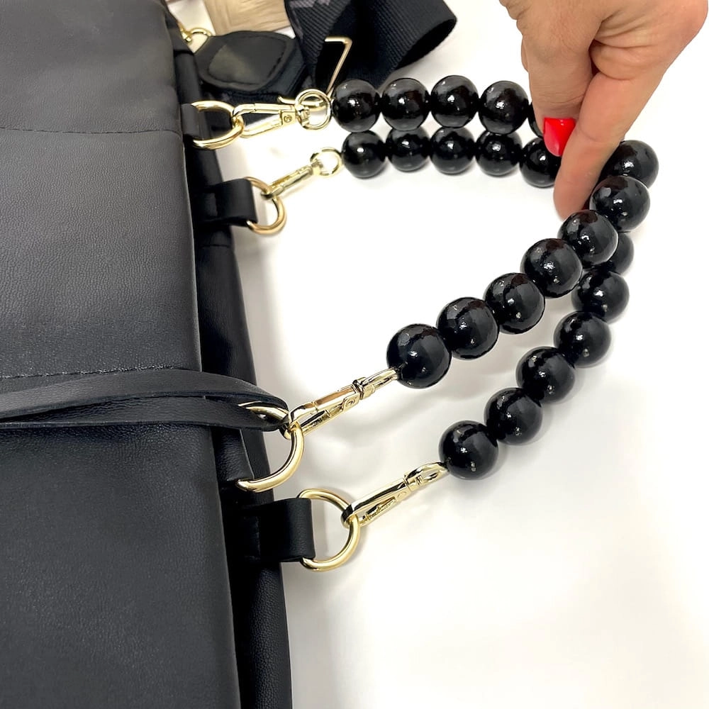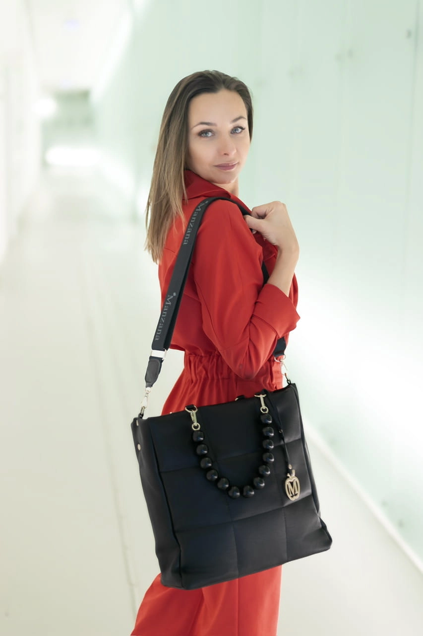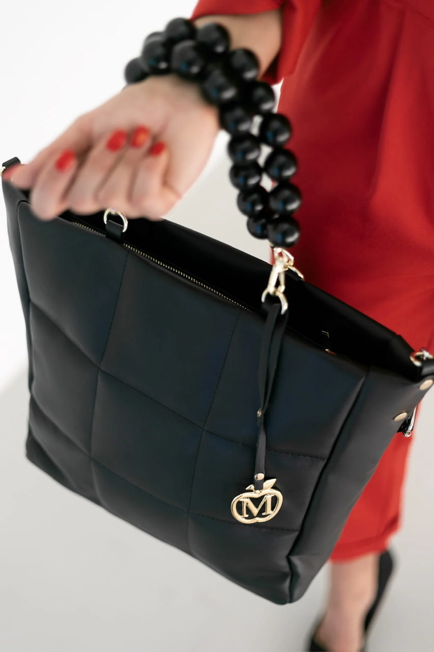 Duża torebka ręcznie pikowana złote dodatki CZARNA - ROTA DUŻA KORALE
