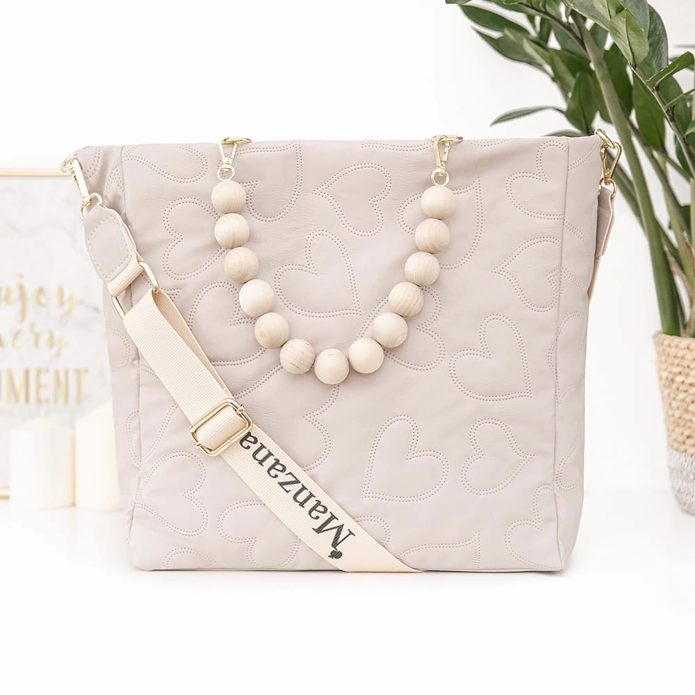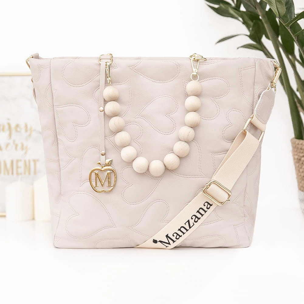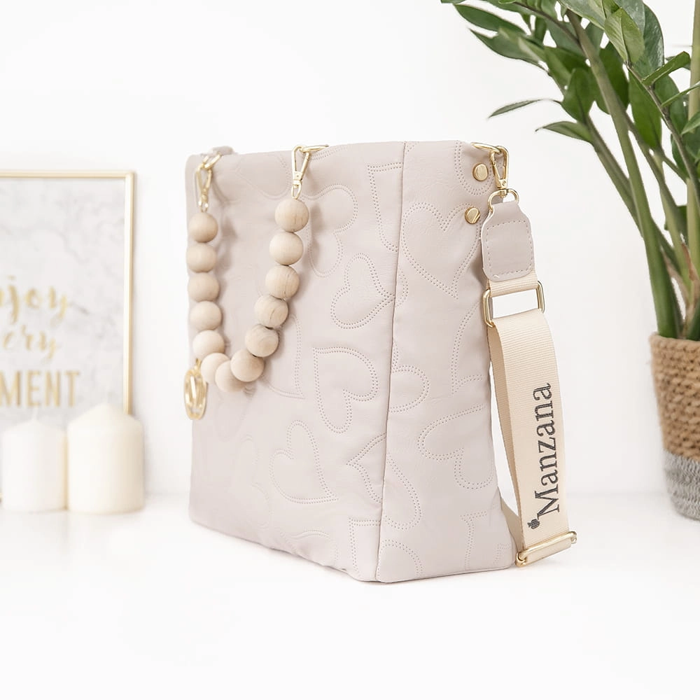 Duża torebka złote dodatki NUDE - ROTA DUŻA KORALE SERCA