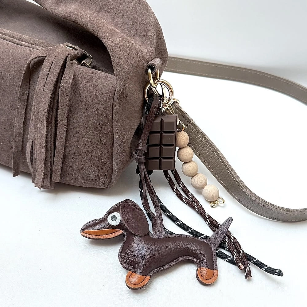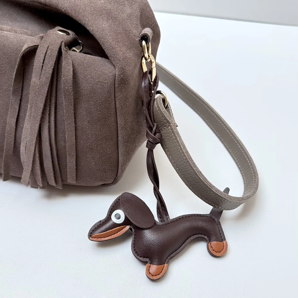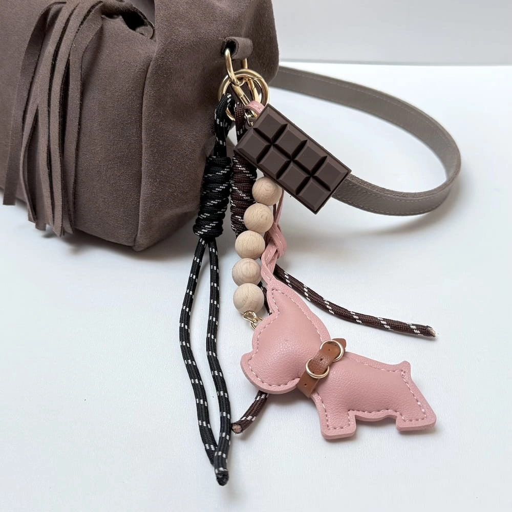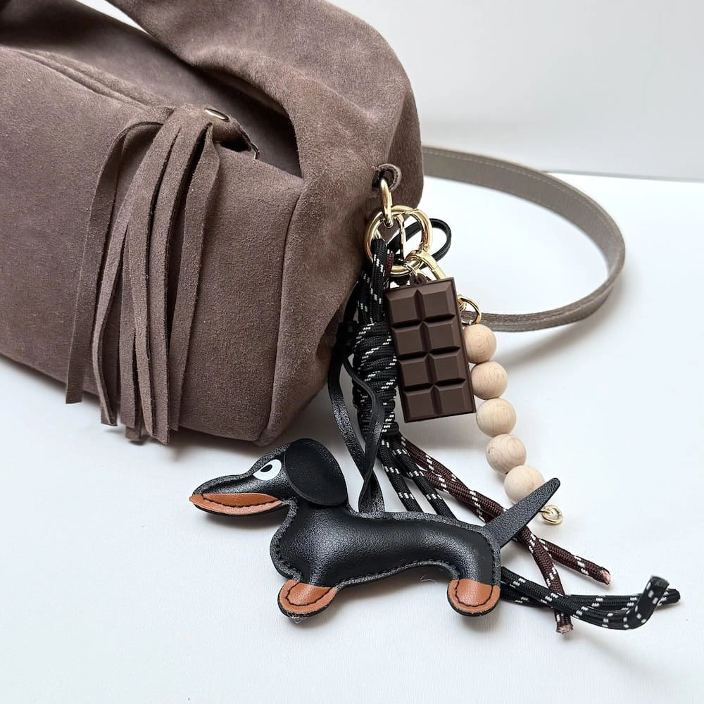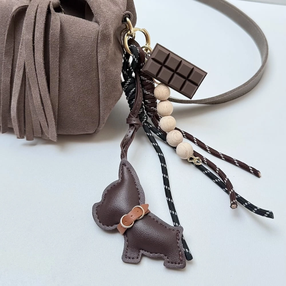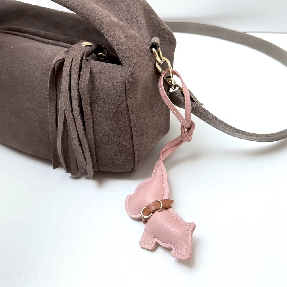 Torebka w standardzie ma frędzel przy suwaku ale możesz dobrać do torebki breloczek buldoga lub jamnika lub misia.