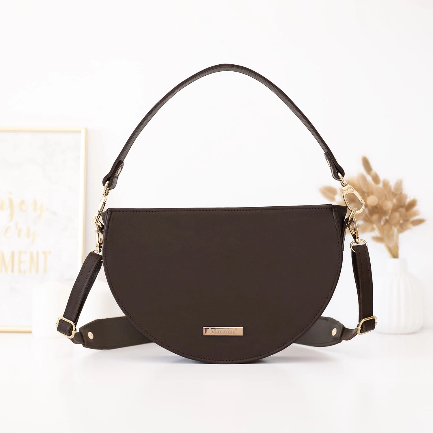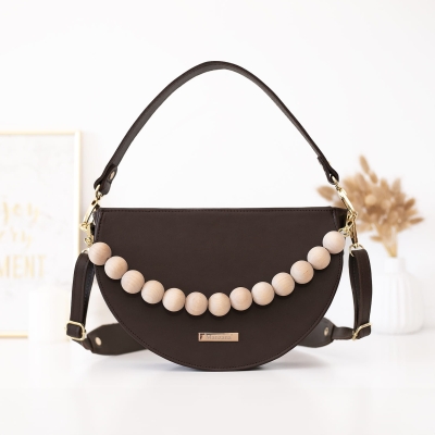 Listonoszka MALAGA ROZMIAR L półksiężyc 2 paski KORALE SKÓRA NATURALNA CZEKOLADOWA MAT