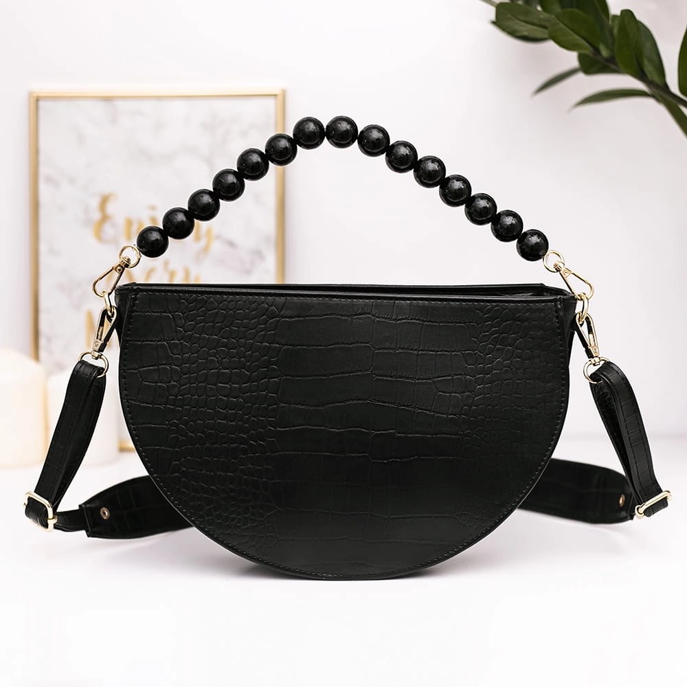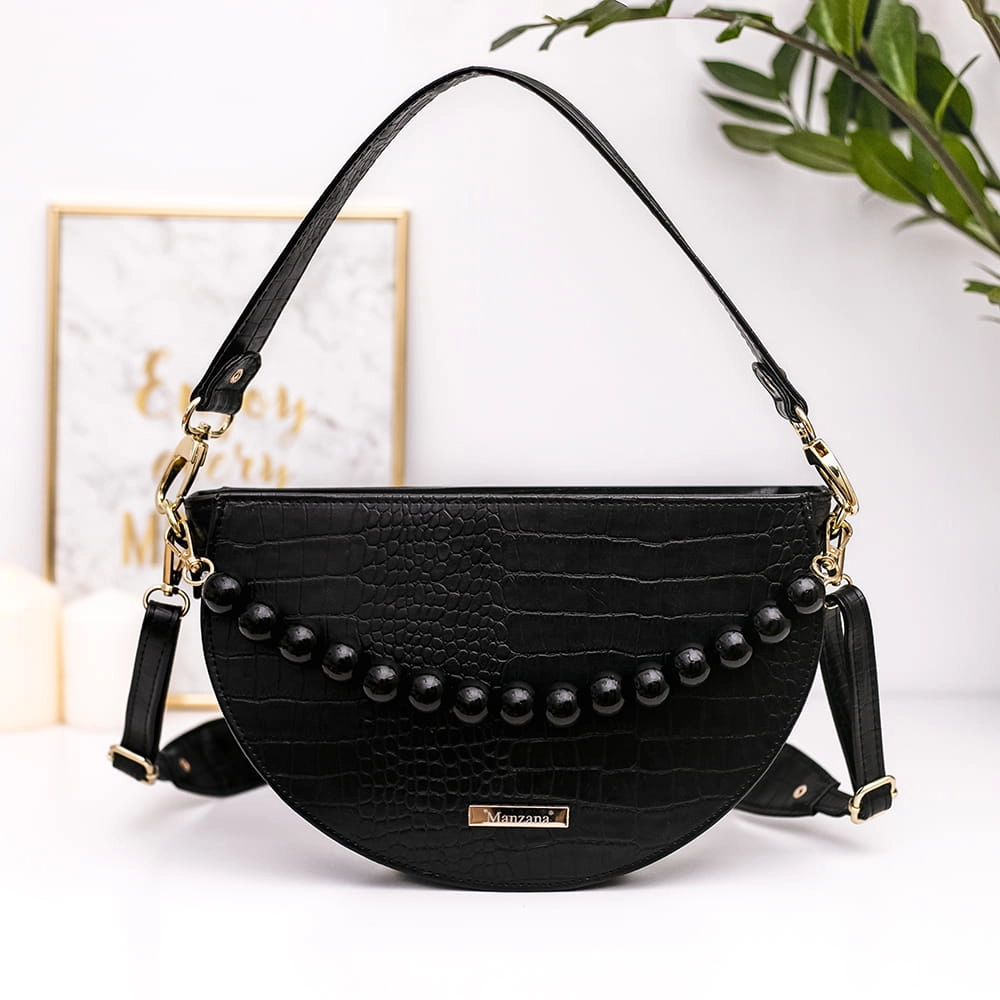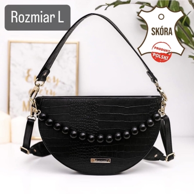Malaga bo tak nazwaliśmy ten model to listonoszką półksiężyc ale bez klapki z ozdobnymi koralami ręcznie malowane. Torebka jest jednokomorowa, zapinana na duży zamek, w środku jest siwa podszewka. Usztywnienie pozwala na komfortowe noszenie oraz przechowywanie wszelkich bardziej lub mniej ważny przedmiotów i drobiazgów.