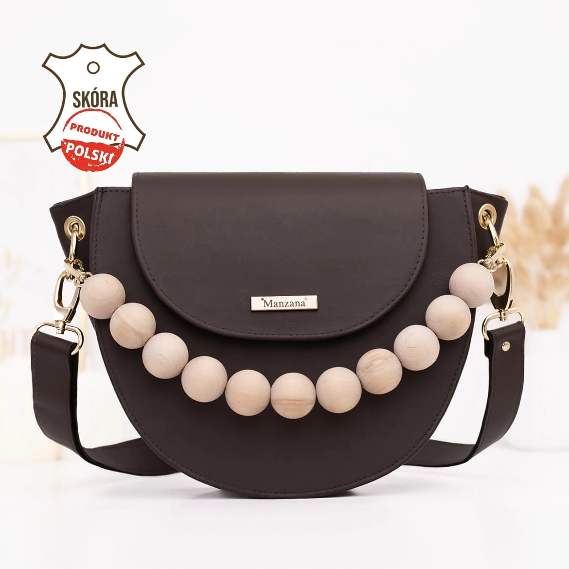 MERIDA CZEKOLADOWA MAT - listonoszka trapez Drewniane KORALE SKÓRA NATURALNA .