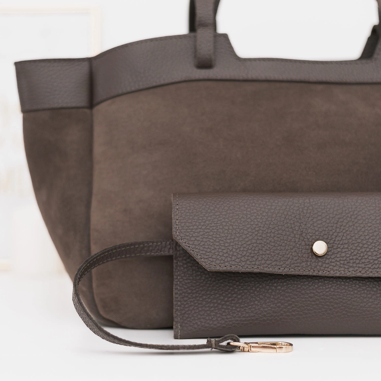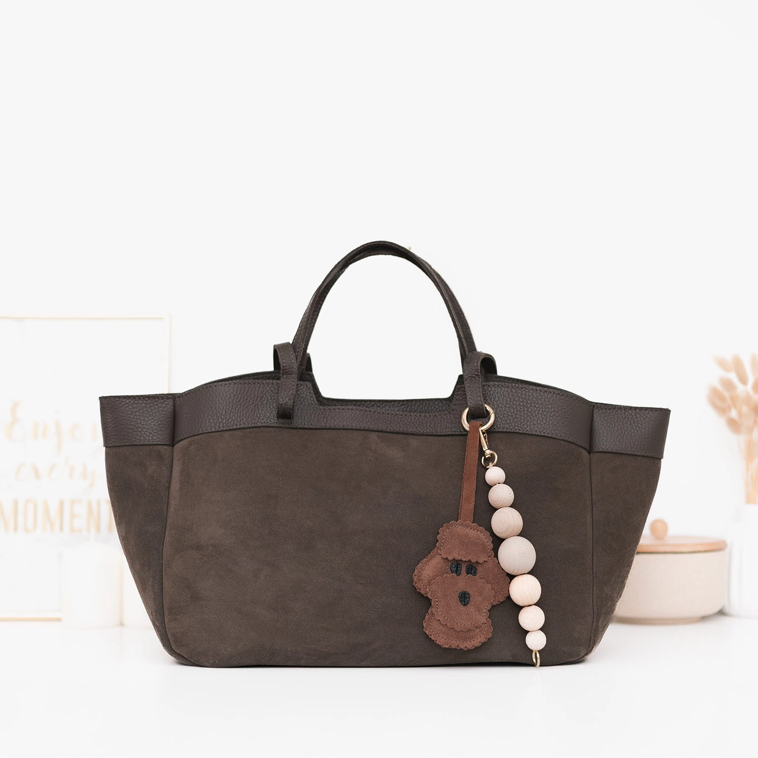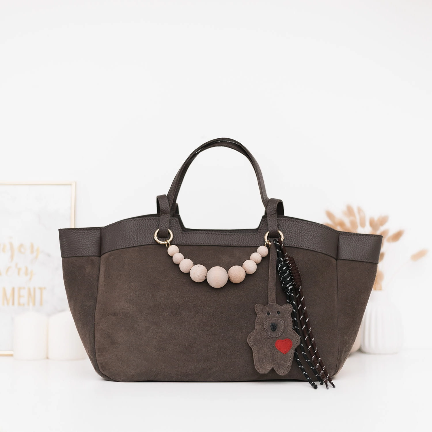 Torebka LANZAROTE w kolorze Mleczna Czekolada z naturalnego zamszu i skóry - Handmade