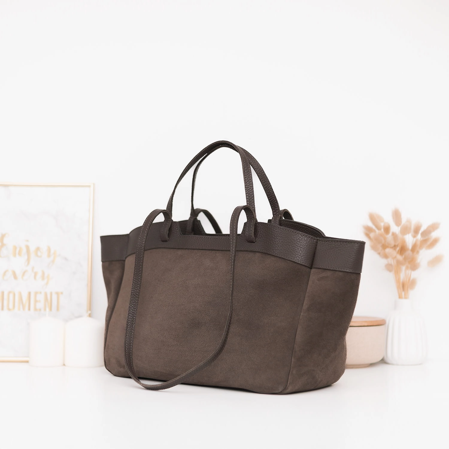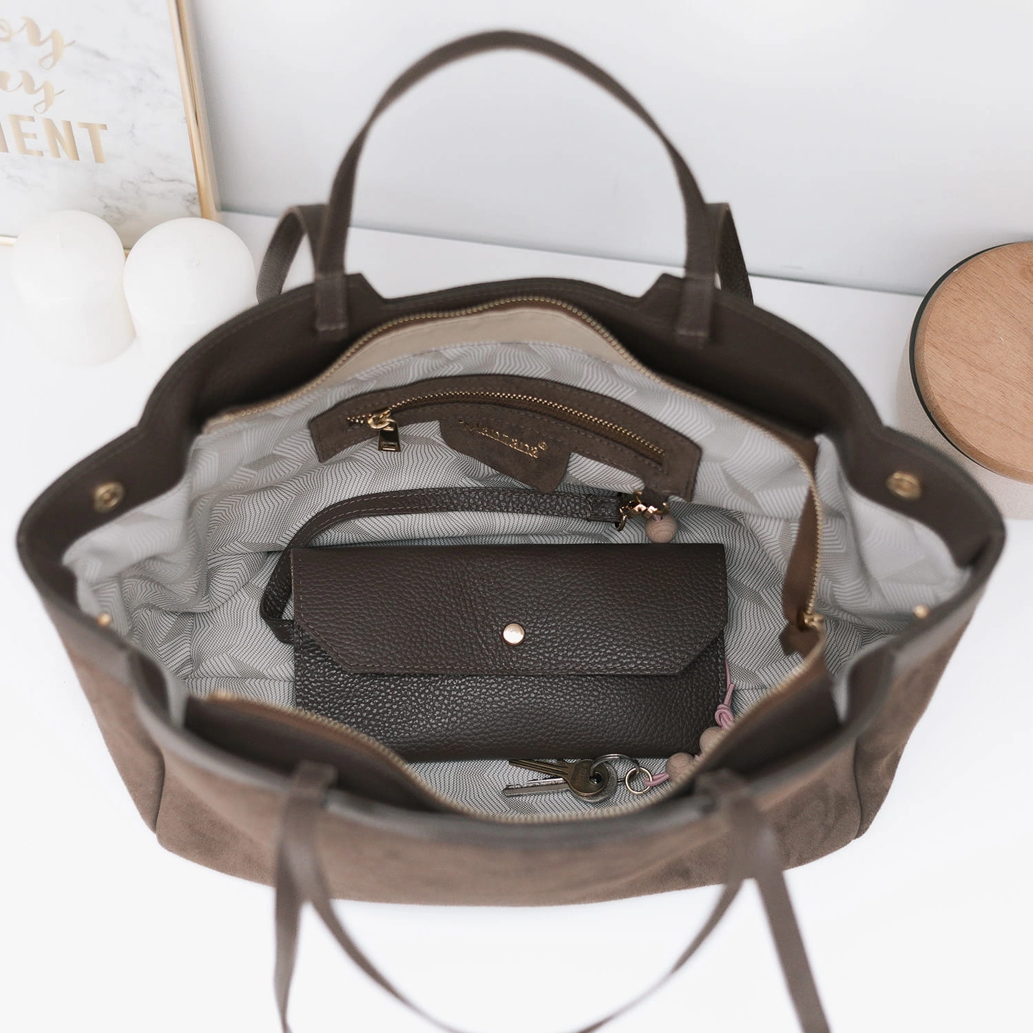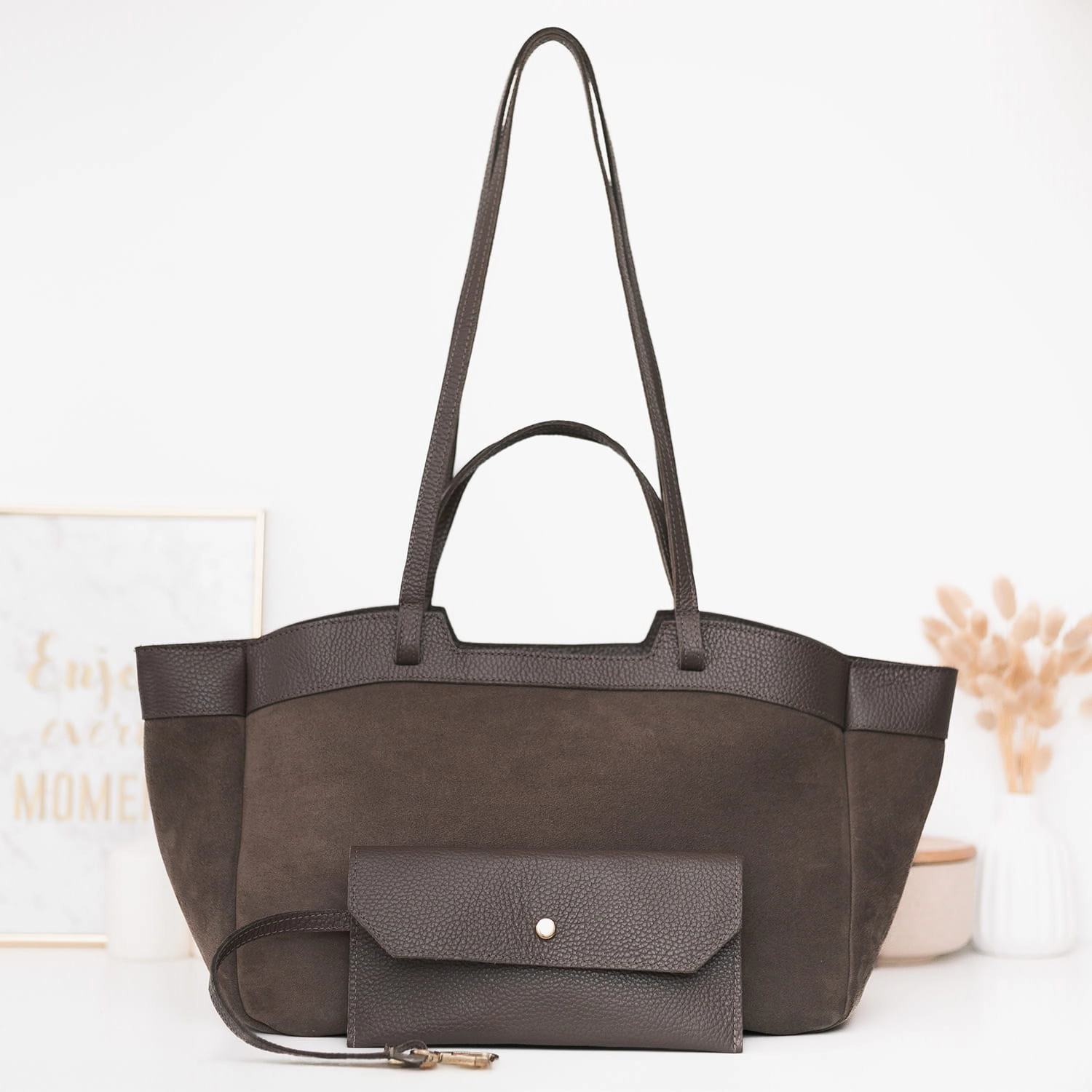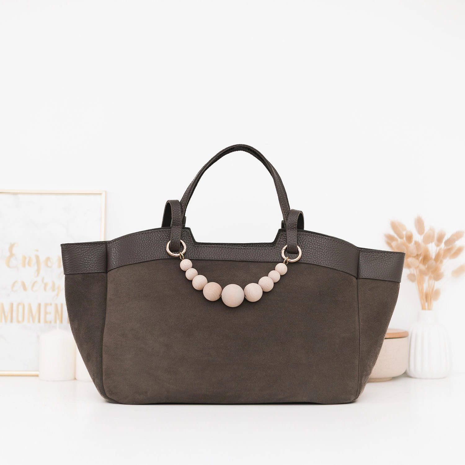 Model Lanzarote w kolorze mleczna czekolada to wyjątkowe połączenie ciepłego, eleganckiego odcienia z ponadczasową formą miejskiej shopperki. Torebka została wykonana w Polsce z naturalnego zamszu i skóry naturalnej najwyższej jakości - jest miękka w dotyku, trwała i niezwykle komfortowa w codziennym użytkowaniu.