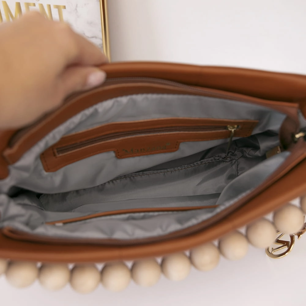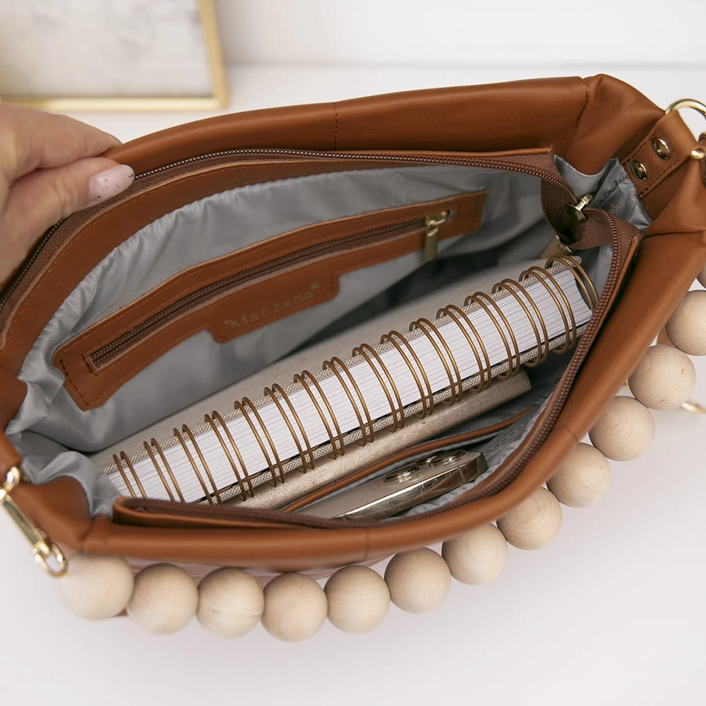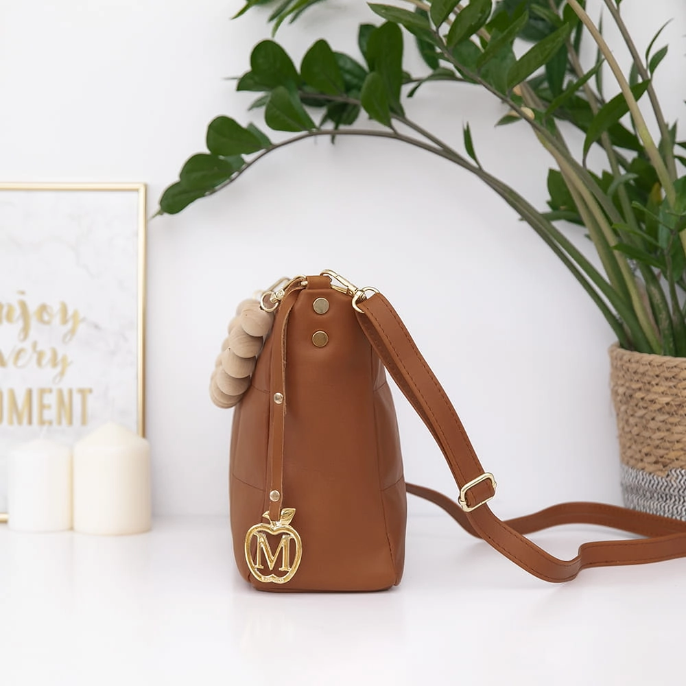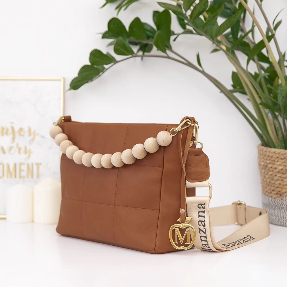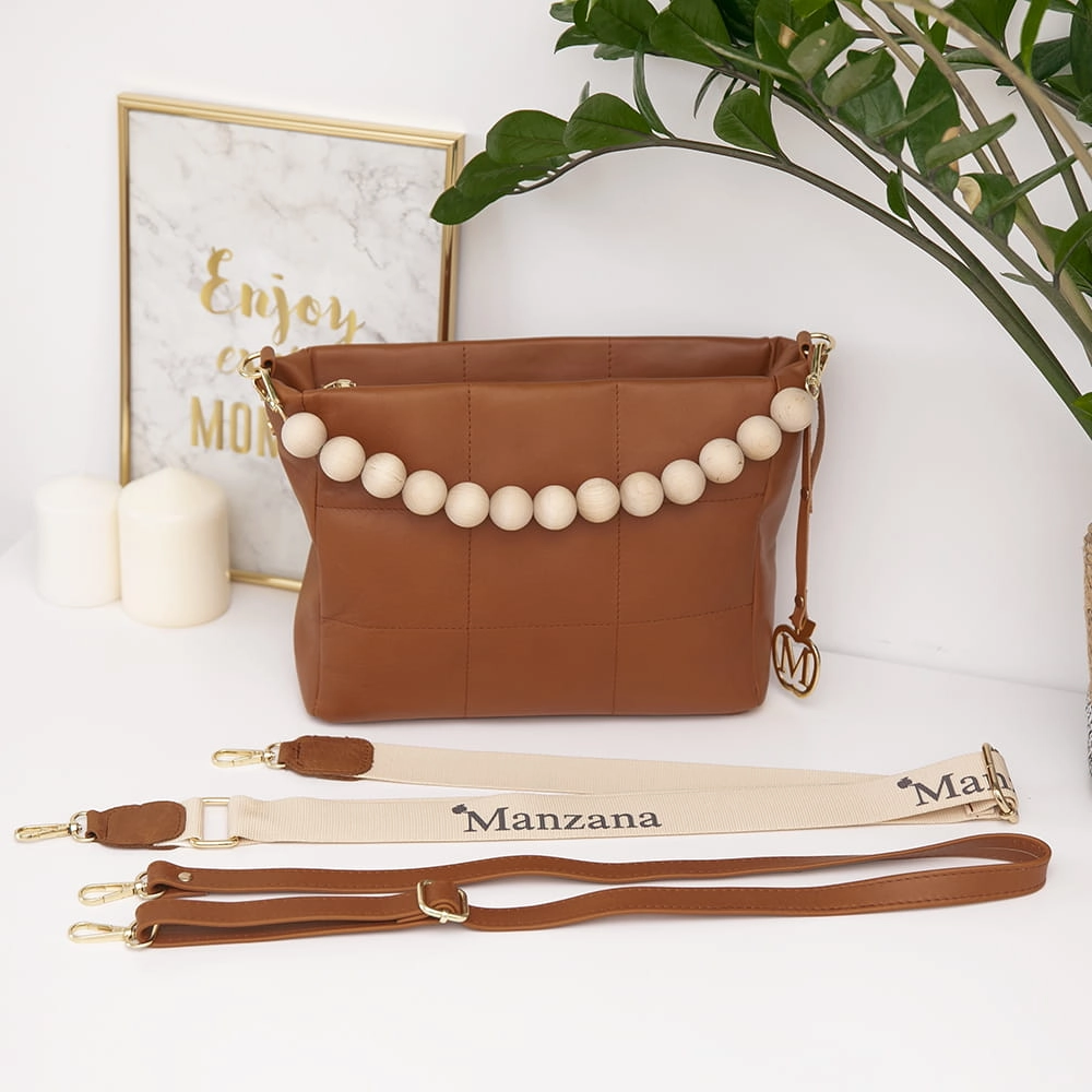 Manzana Listonoszka pikowana złote dodatki ROTA MAŁA Karmel 2 PASKI