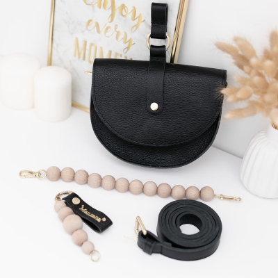 Nerka lub listonoszka 2w1 SKÓRA NATURALNA CZARNA + naturalne korale + brelok