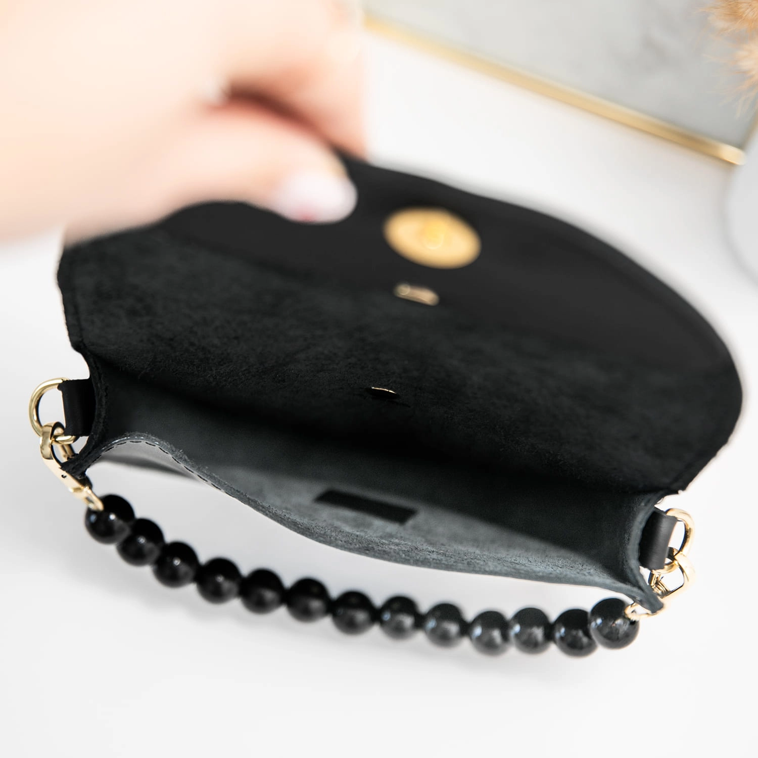 Do nerki dodałam czarne małe korale, które możesz odpinać oraz złote okucia.