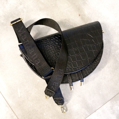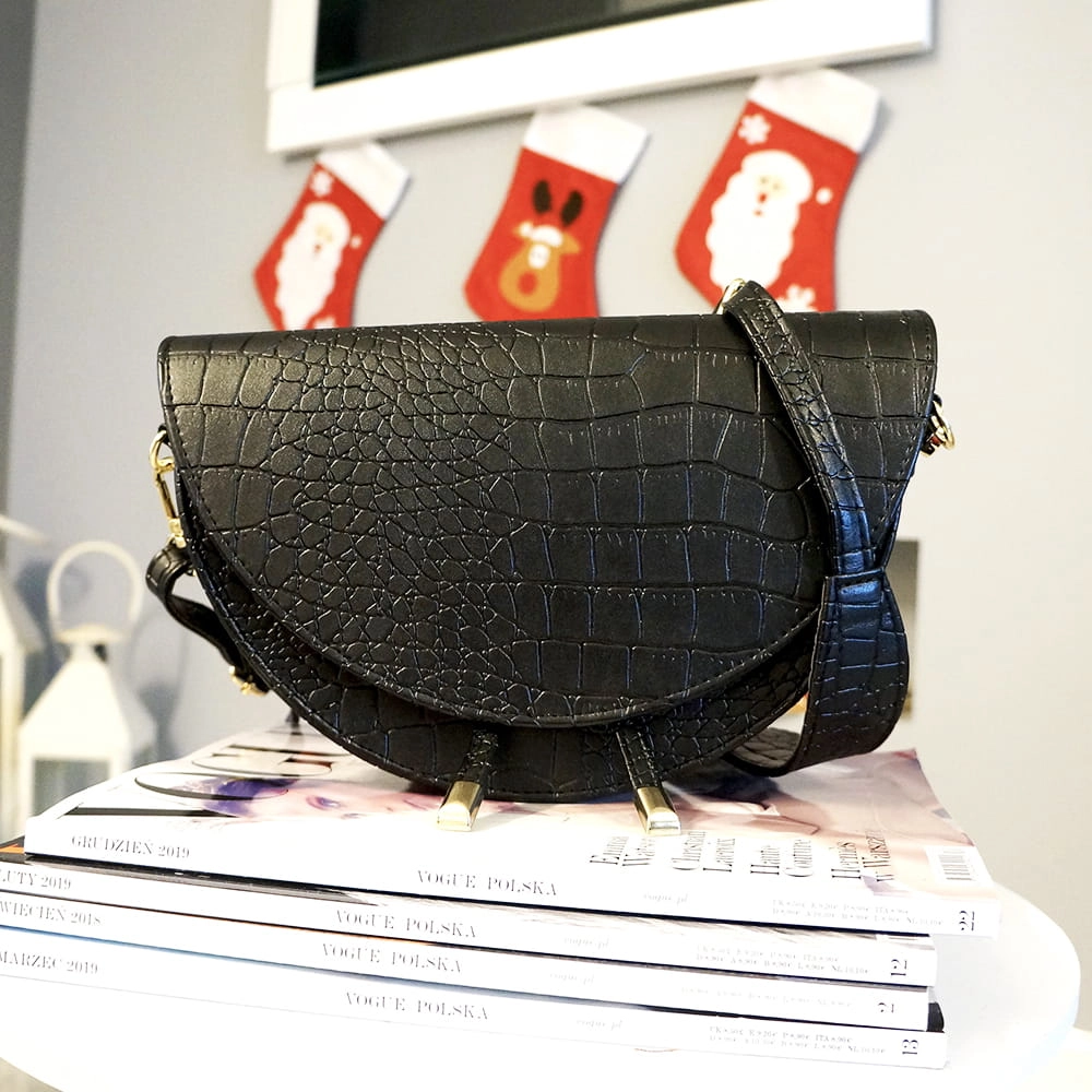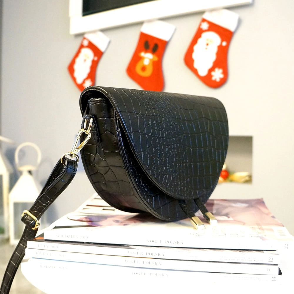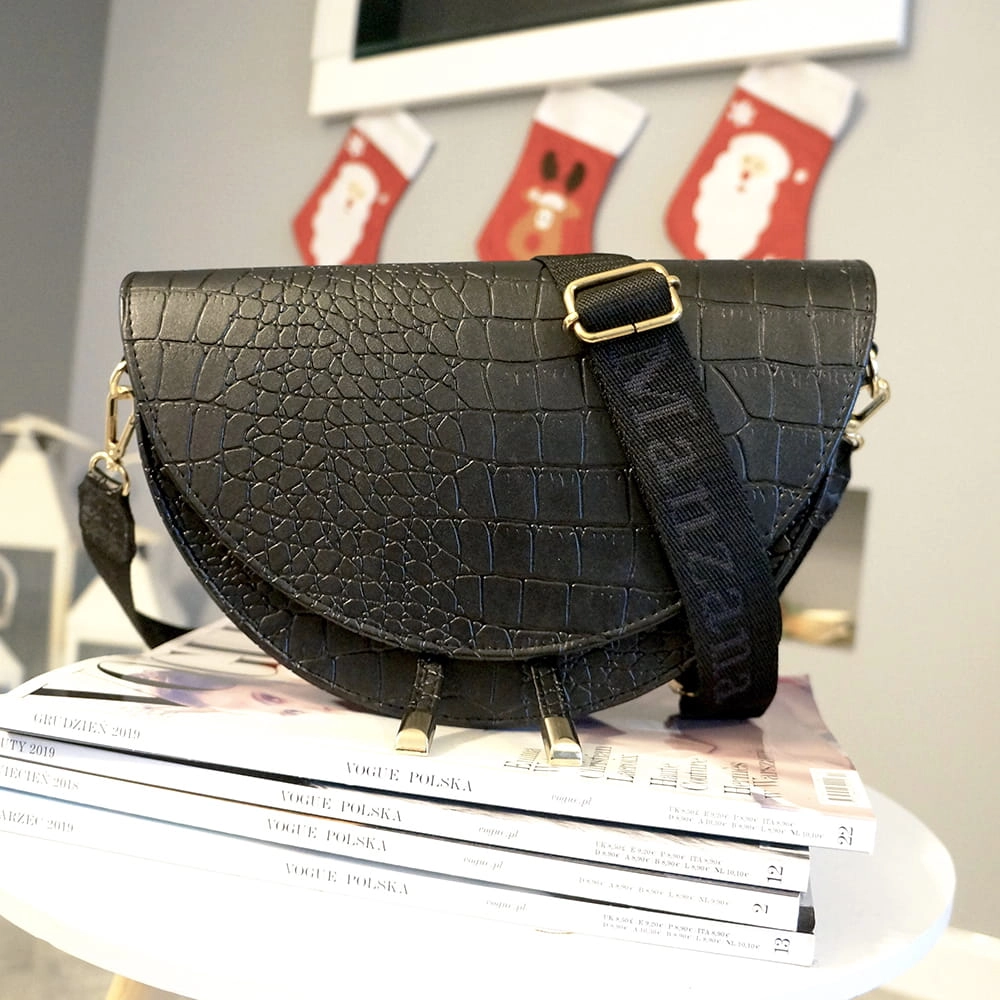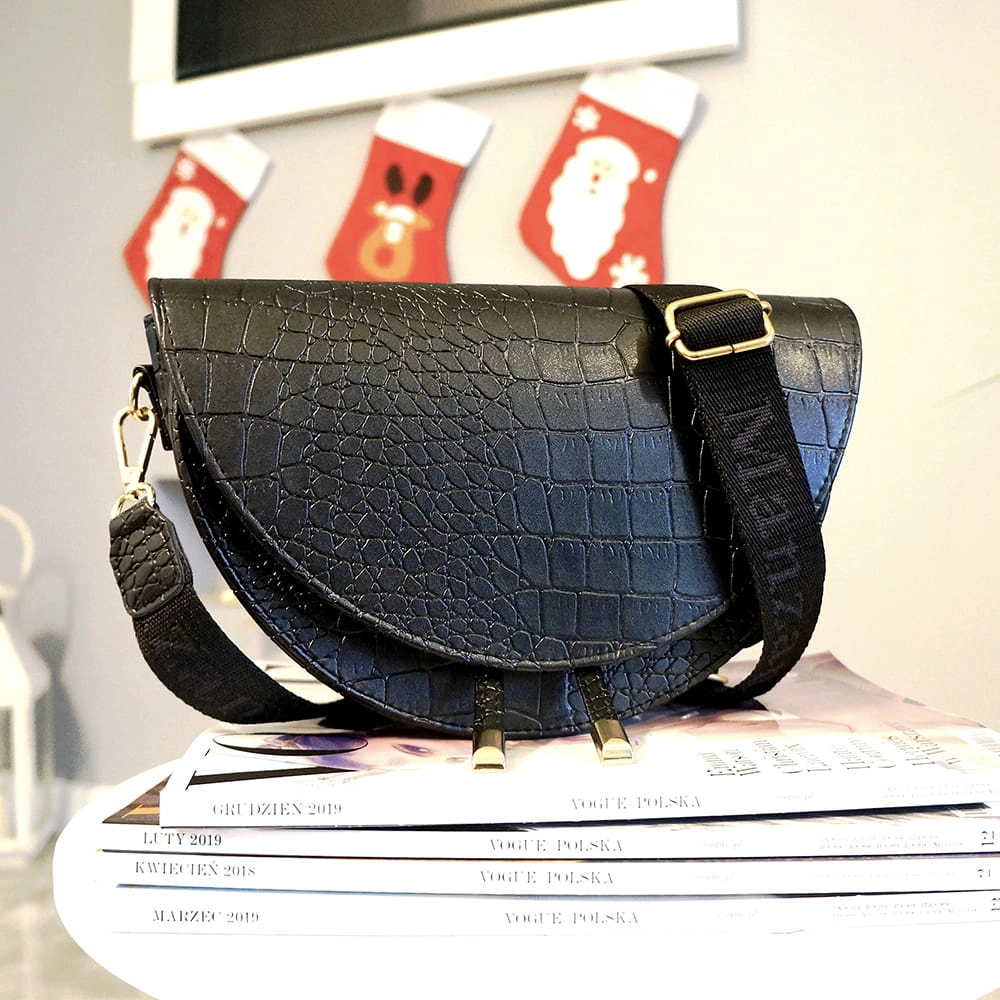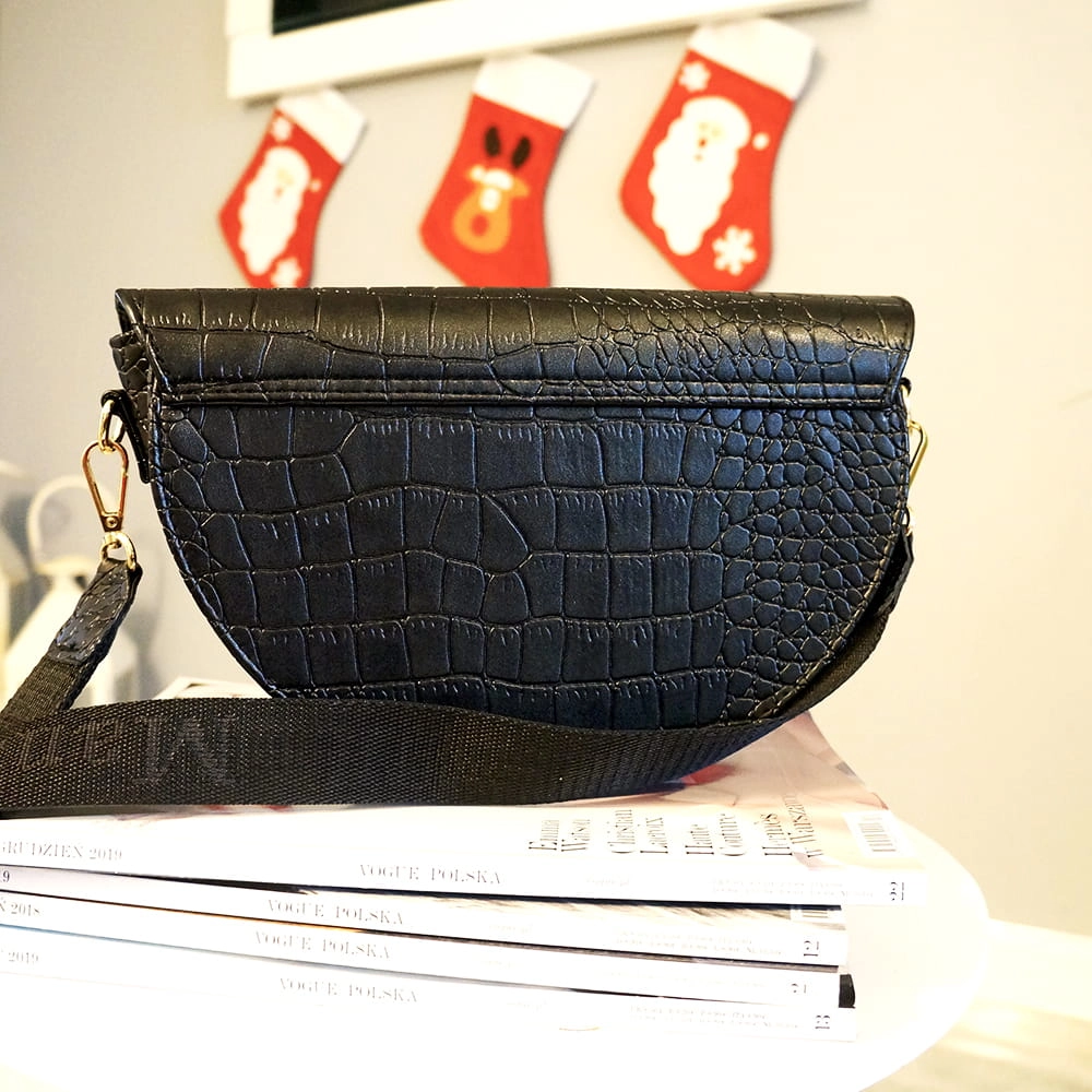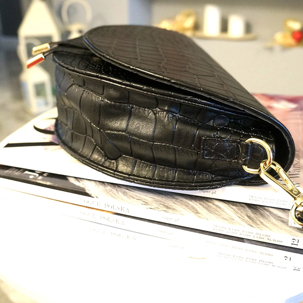 ROZMIAR M - Listonoszka półksiężyc złote dodatki czarny krokodyl .