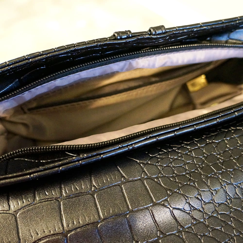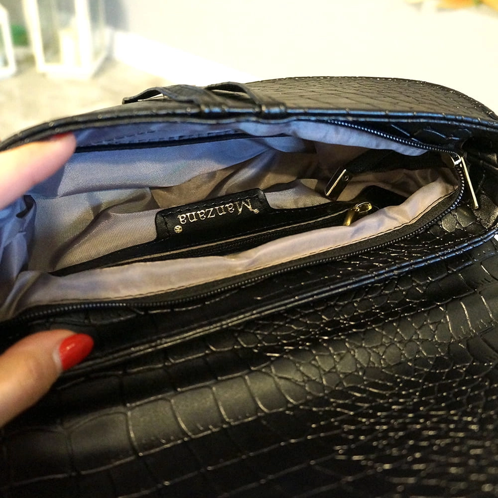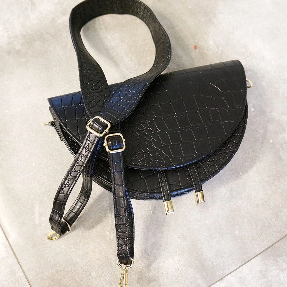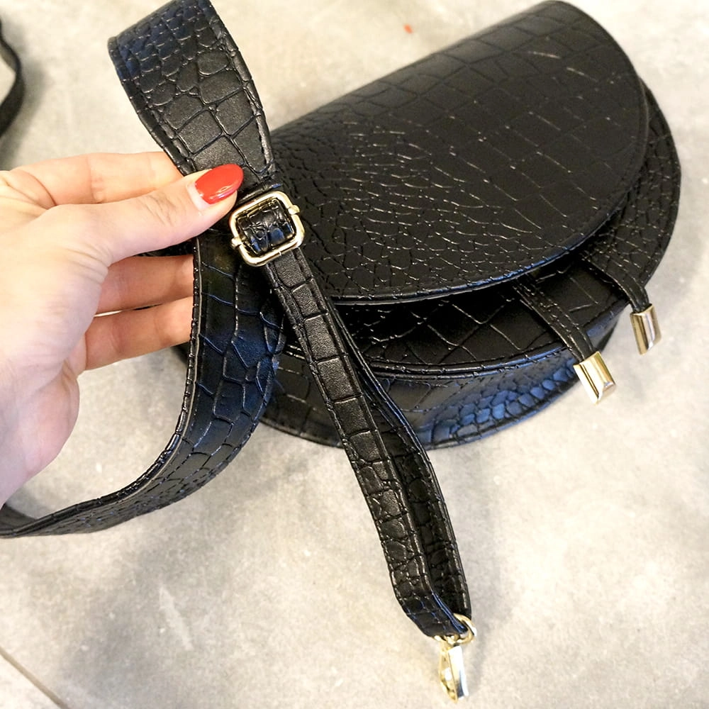 • Regulowany pasek wykonany z tej samej ekologicznej imitacji skóry krokodyla