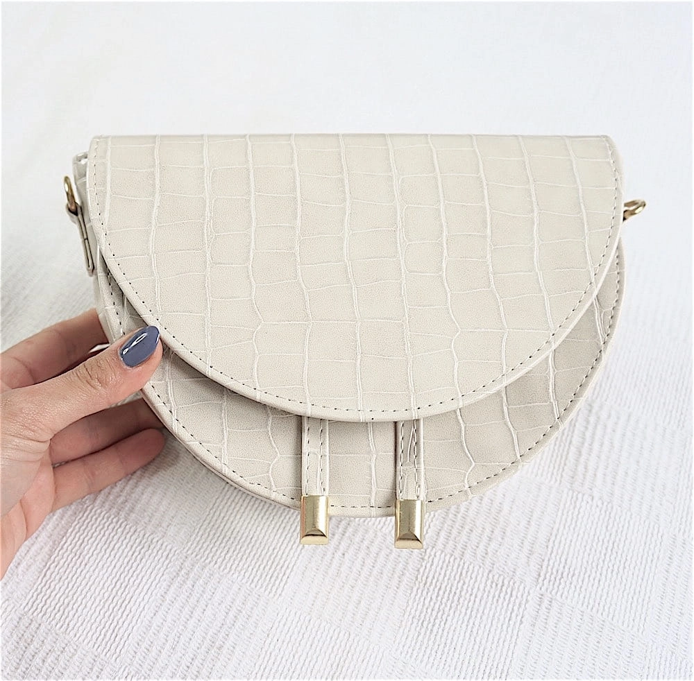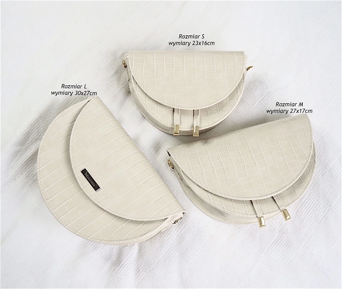 Piękna damska listonoszka w gustownym fasonie. Ta półksiężycowa listonoszka to wygodna propozycja dla kobiet ceniących sobie niewymuszoną elegancję w mniejszym rozmiarem. Specialnie dla Was uszyliśmy mniejszą wersję półksiężyca. Aby było łatwiej listonoszke nazywamy Rozmiarem S.
