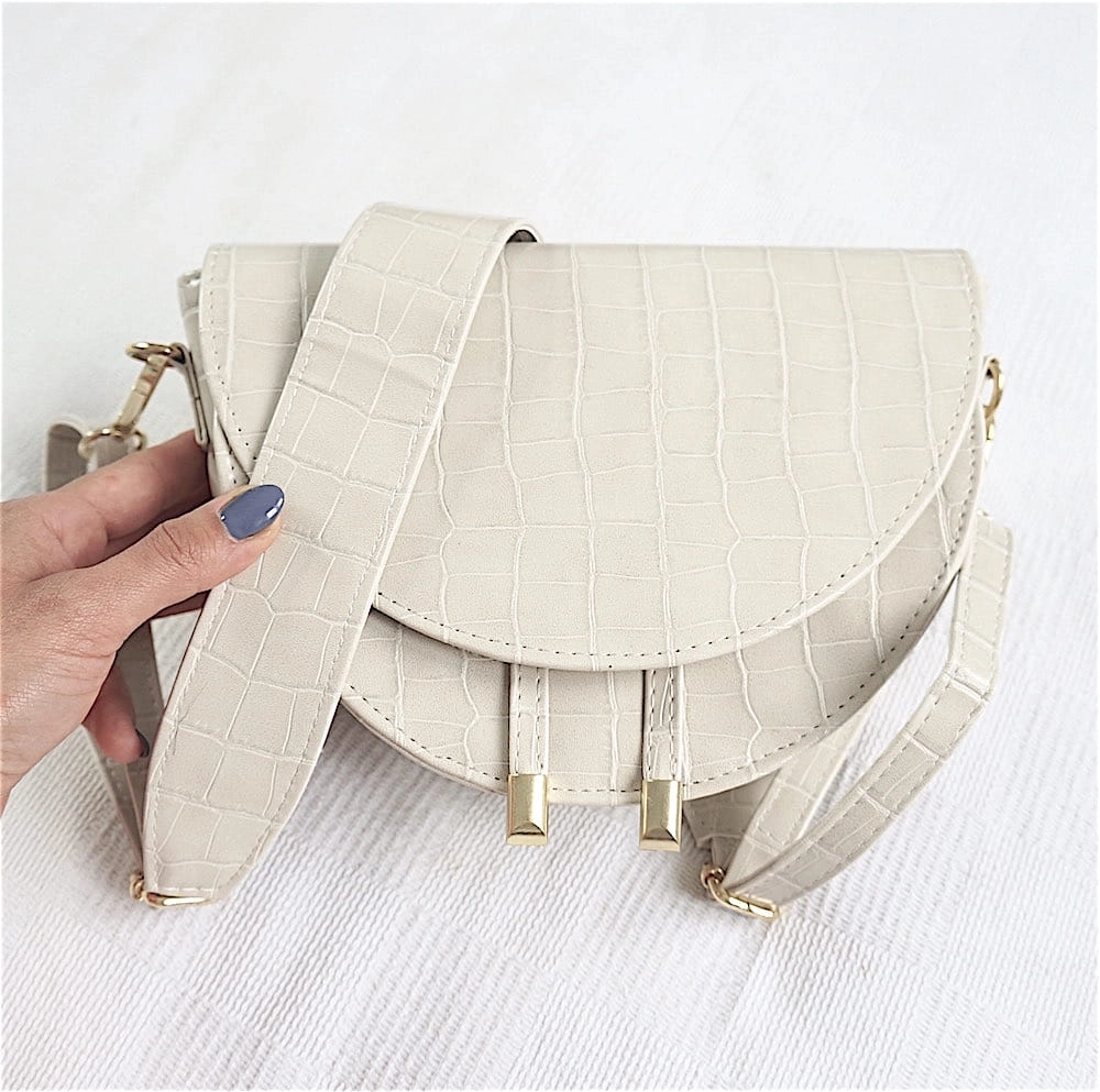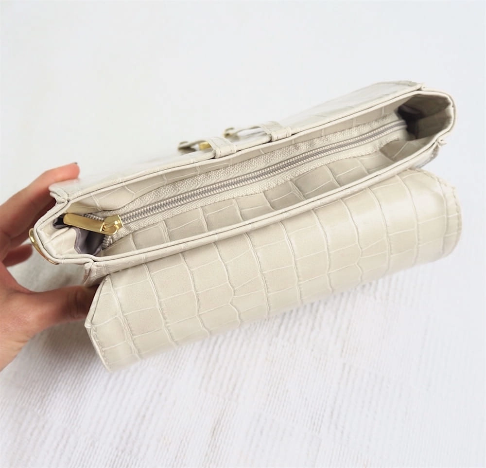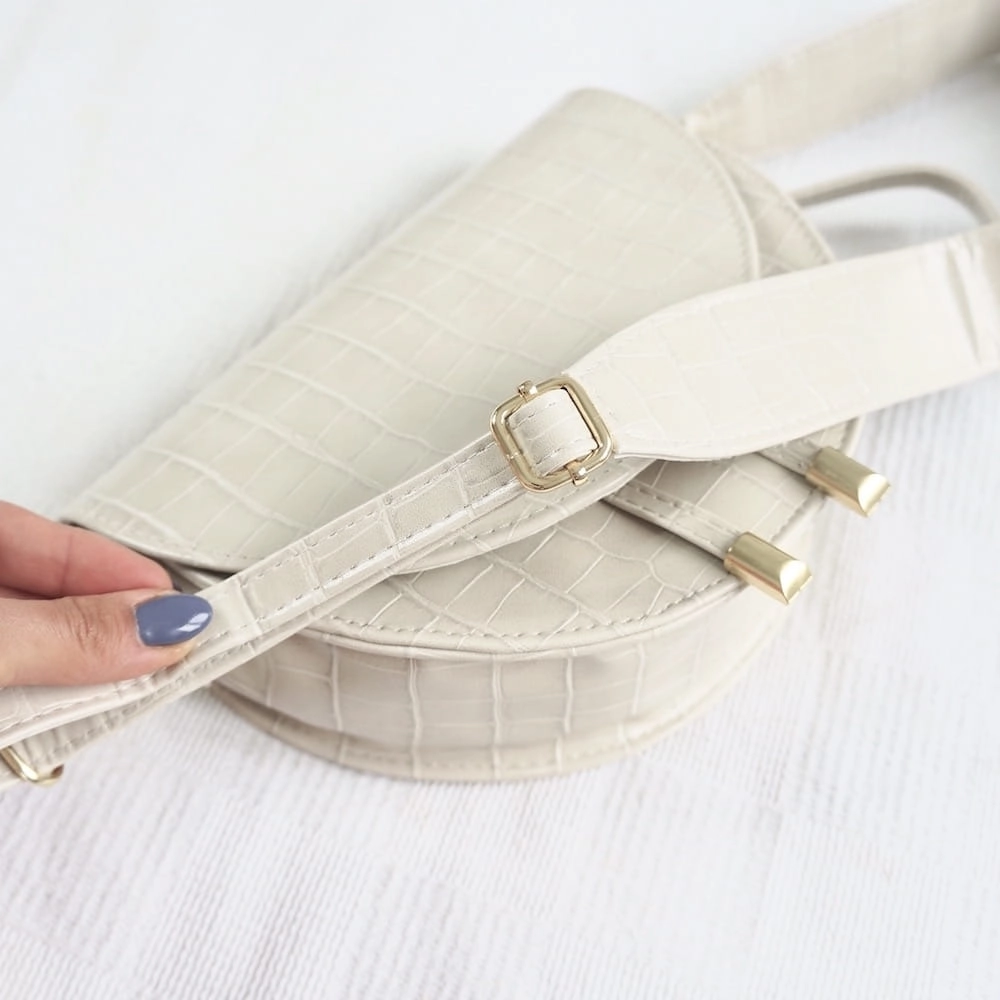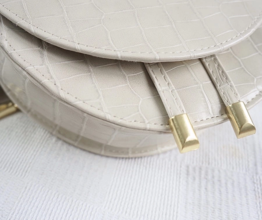 Wykonana w całości w krokodylej eko skóry, w kolorze NUDE