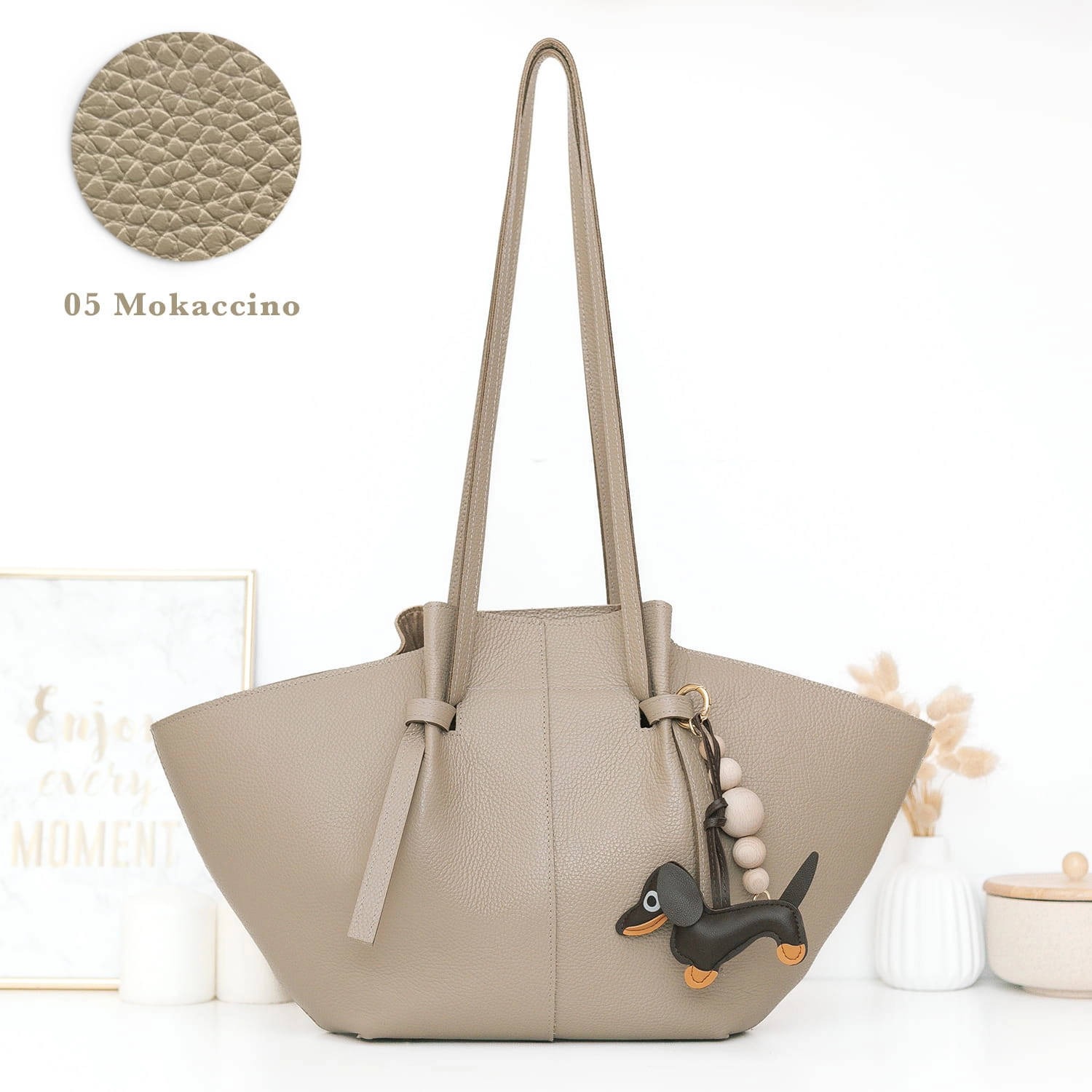 torebka damska, torebka skórzana, torebka shopper, duża torebka, pojemna torebka, torebka na ramię, elegancka torebka, torebka z kosmetyczką, torebka z organizerem, polska marka, ręcznie szyta torebka, torebka premium, torebka na co dzień, torebka do pracy, torebka z brelokiem, zawieszka jamnik, torebka personalizowana, Manzana Saragossa