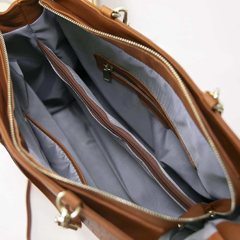 Główna komora torebki zamykana jest na złoty duży zamek. Wnętrze torebki wykończone zostało siwą podszewką z licznymi kieszonkami i przegrodą czyli w środku są dwie komory. Na zewnątrz torebki jest kieszonka na zamek np na klucze jest to kiszonka bardzo lubiana przez kobiety