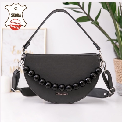 Skóra Naturalna Listonoszka MALAGA półksiężyc rozmiar L SZARY 4 paski