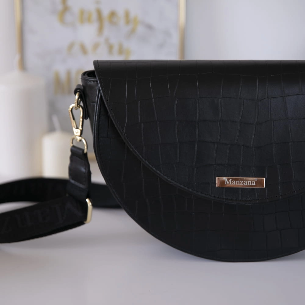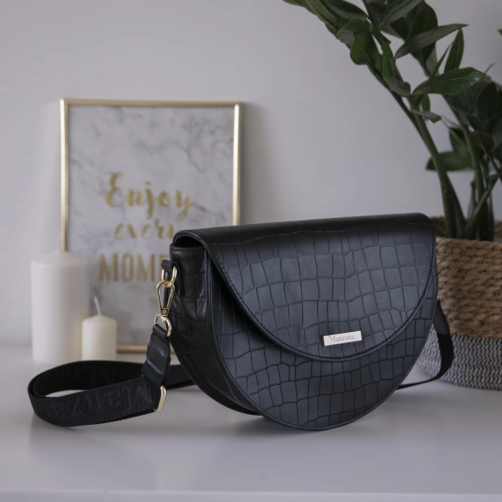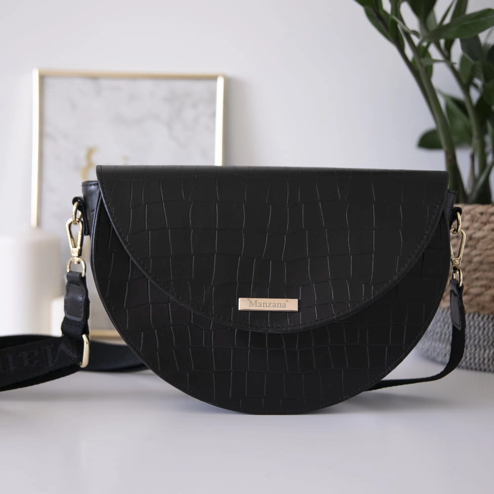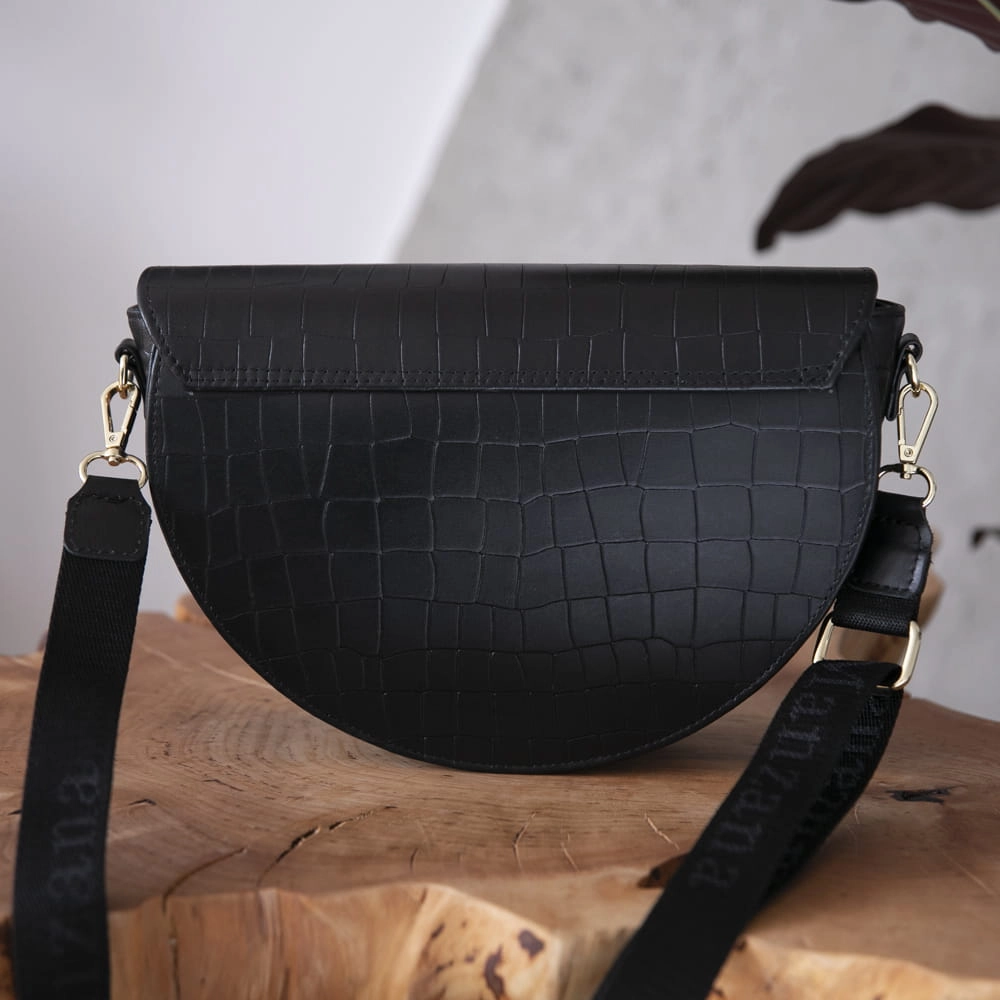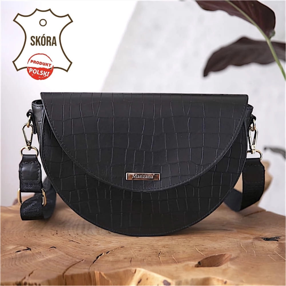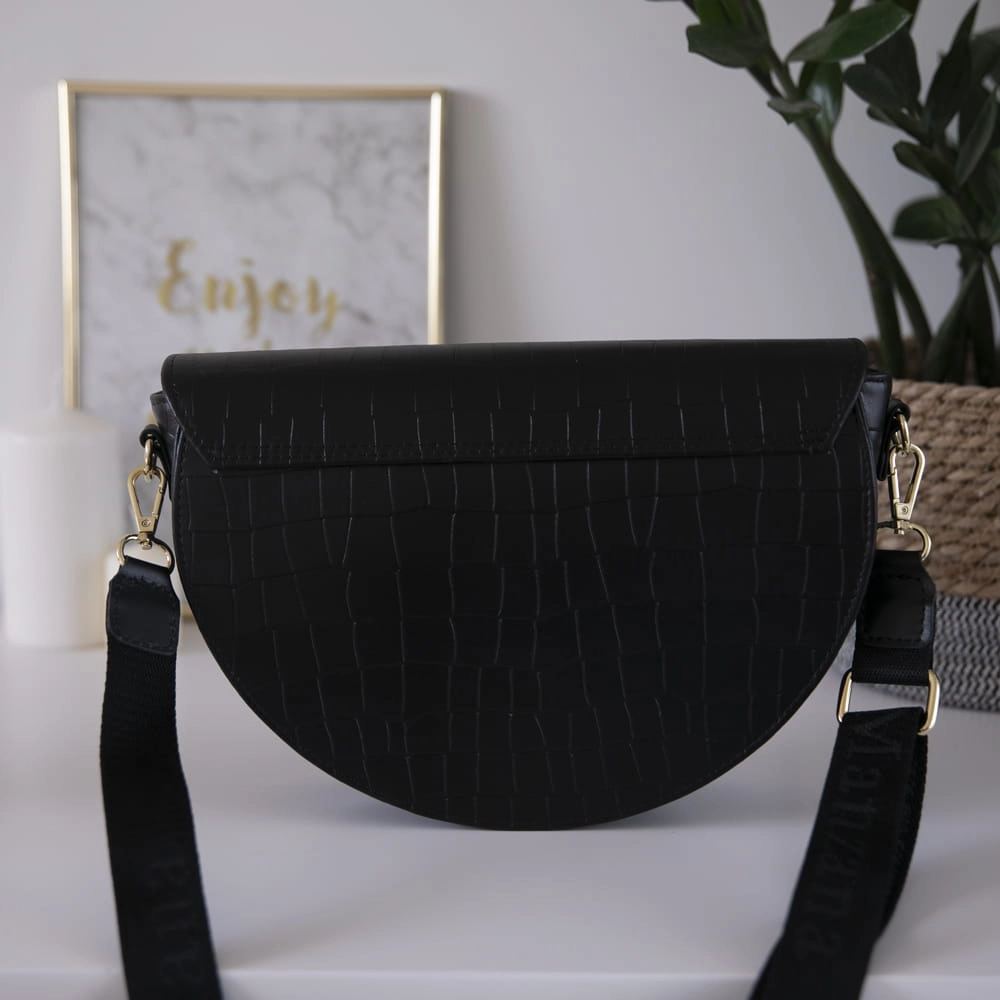Skóra Naturalna Listonoszka Półksiężyc Klasyczna CZARNY KROKODYL 2 paski