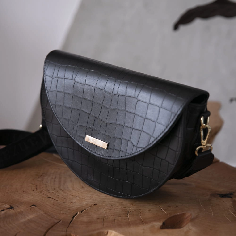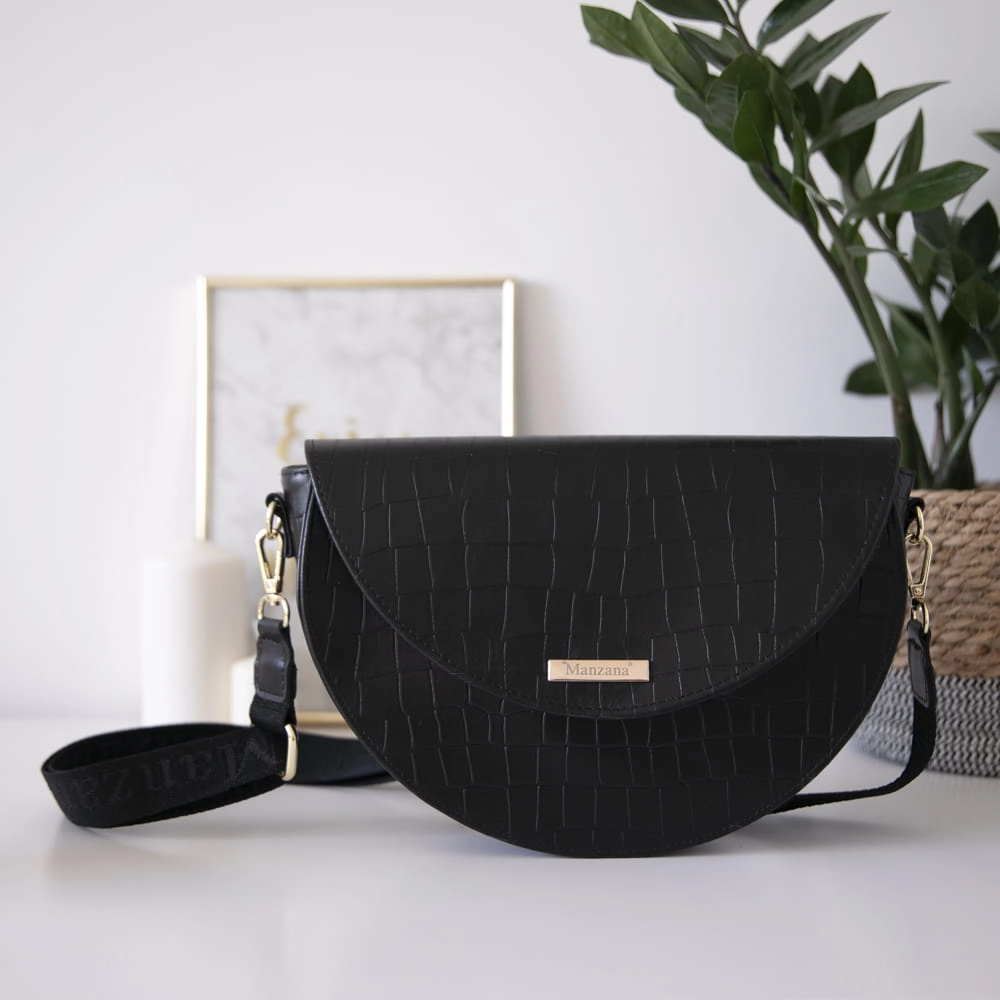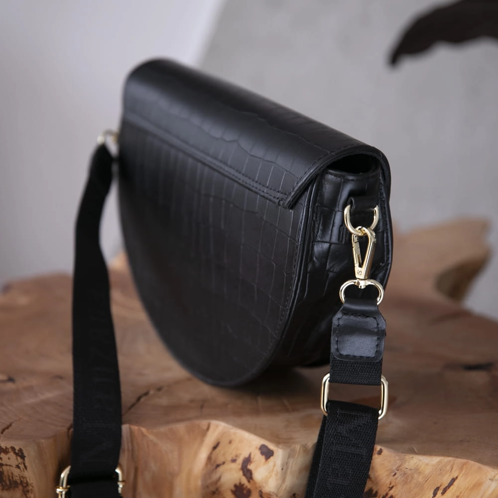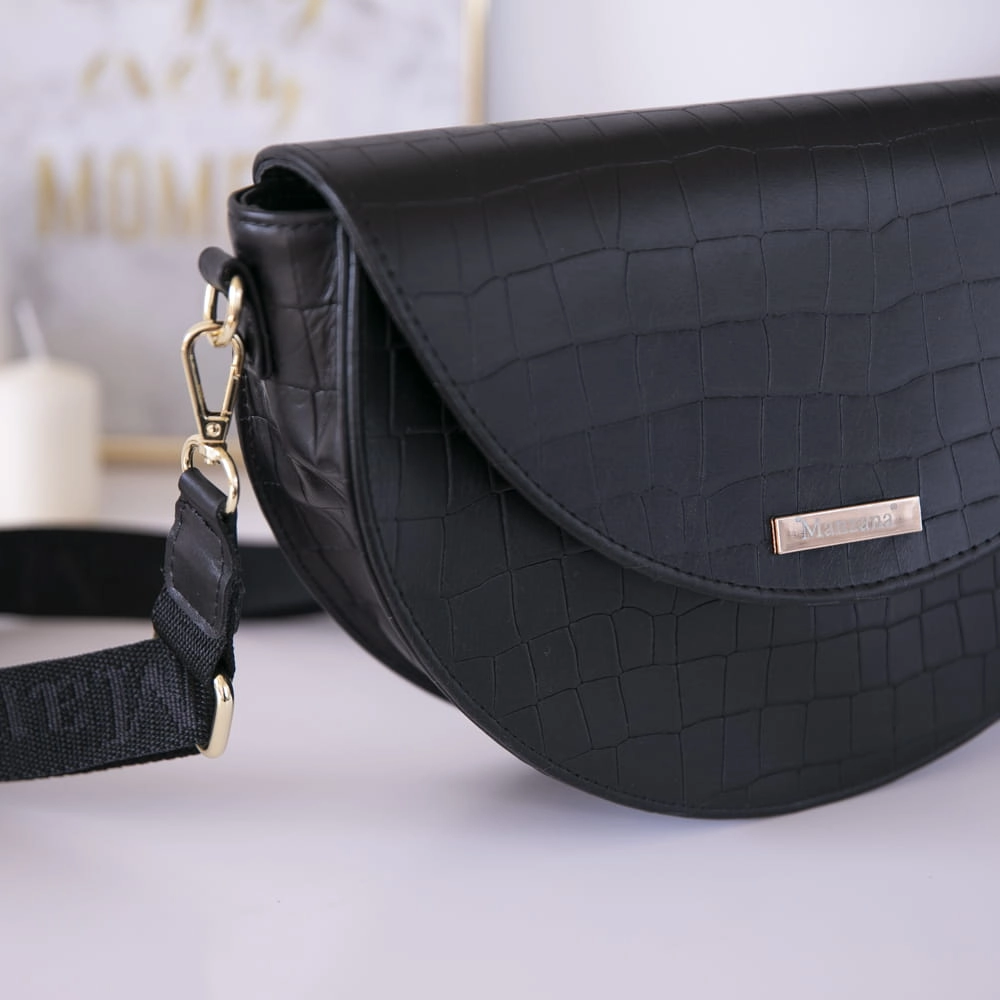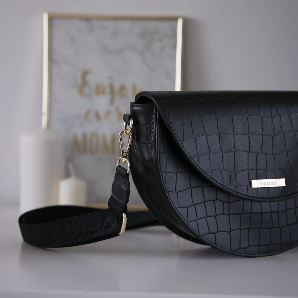 Skóra Naturalna Listonoszka Półksiężyc Klasyczna CZARNY KROKODYL 2 paski