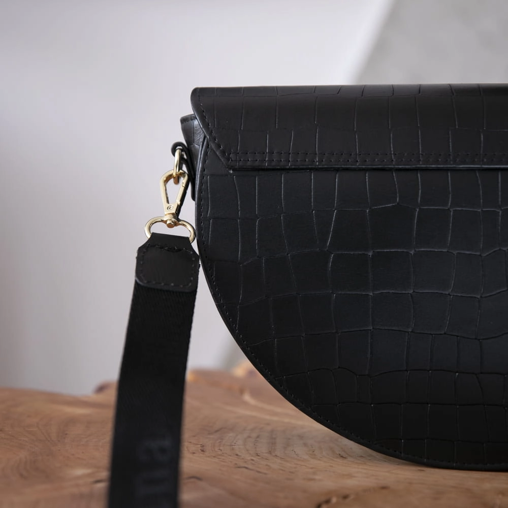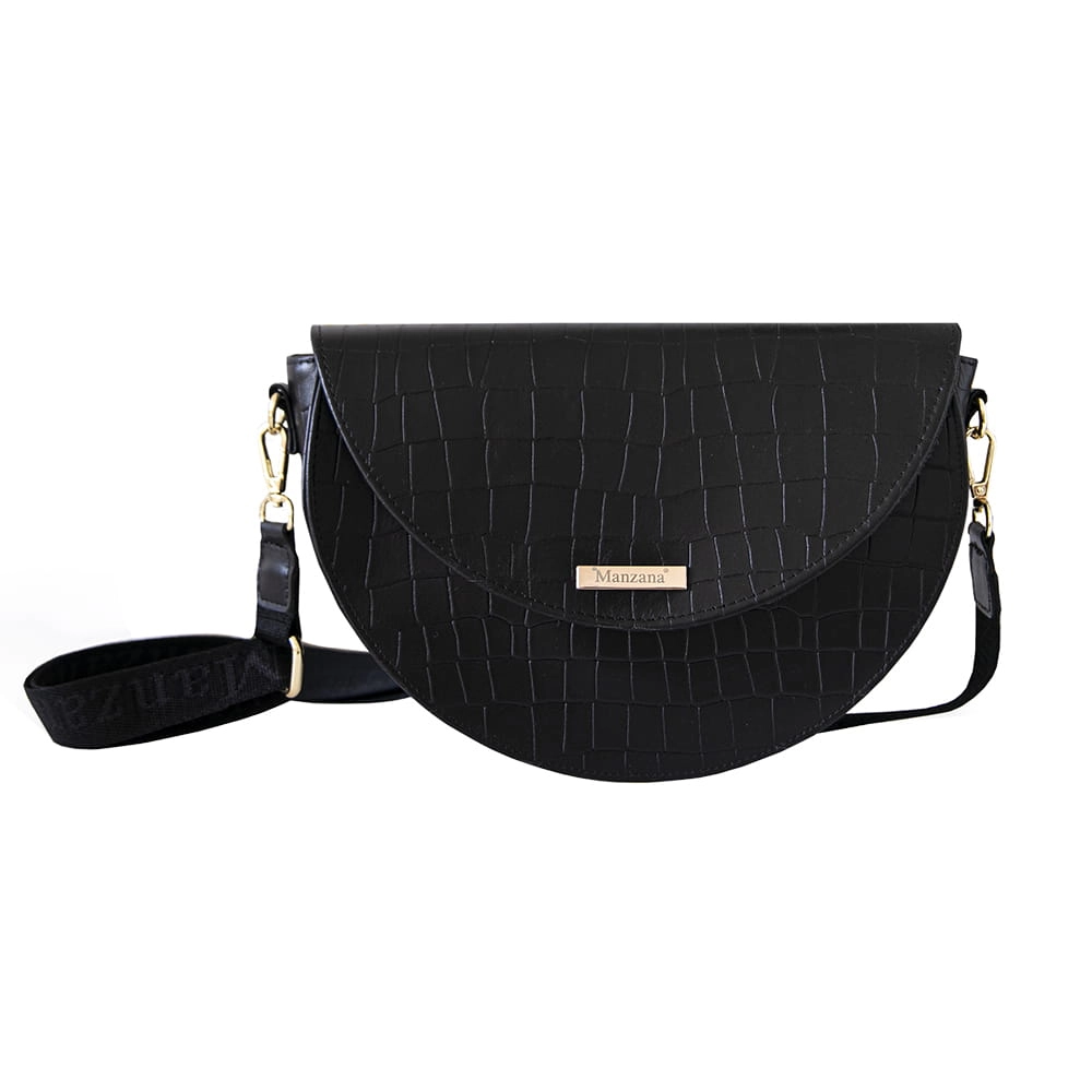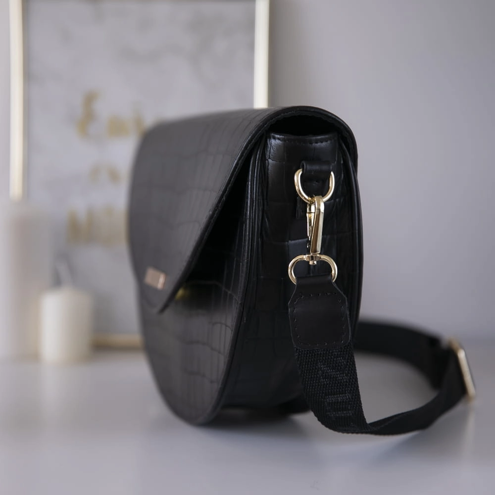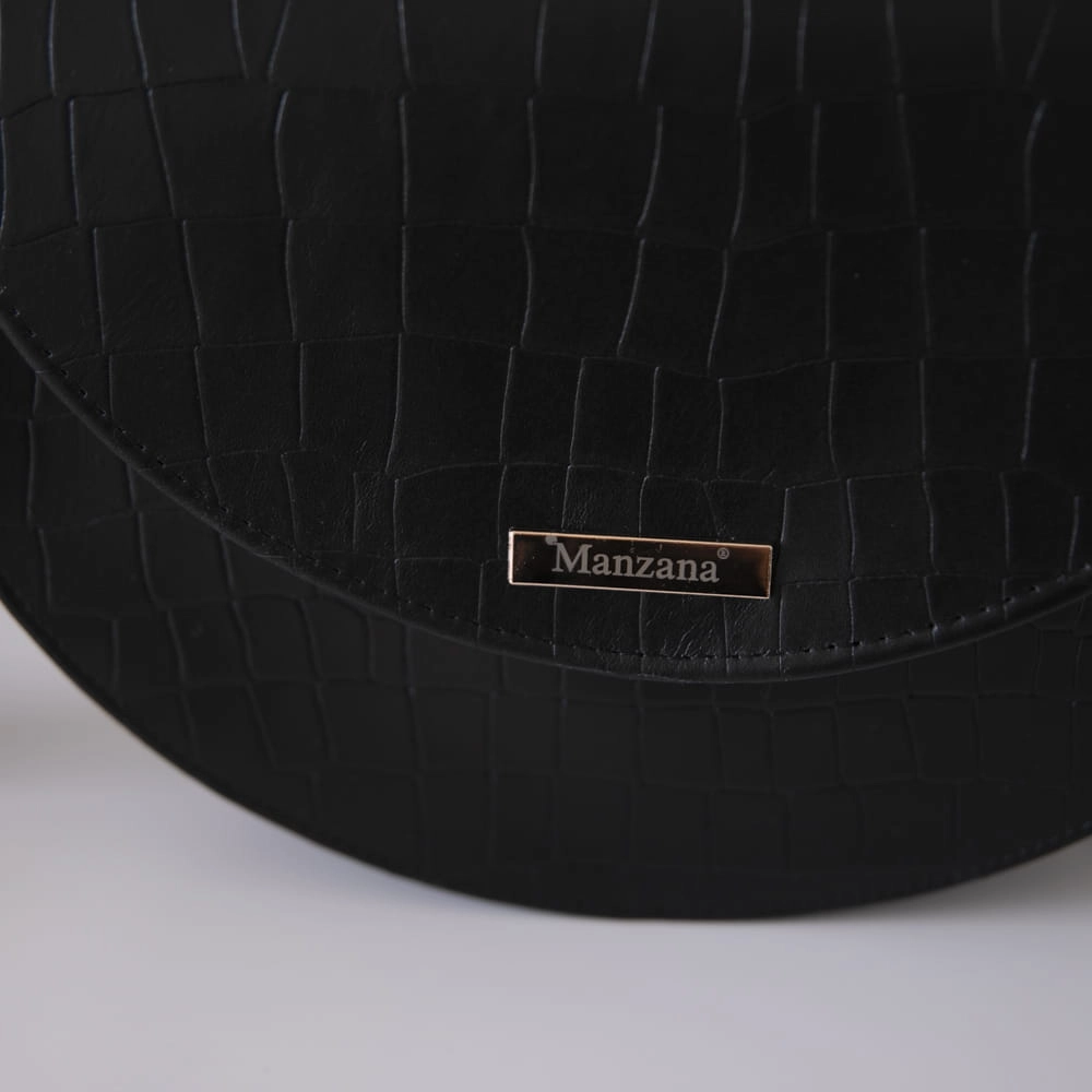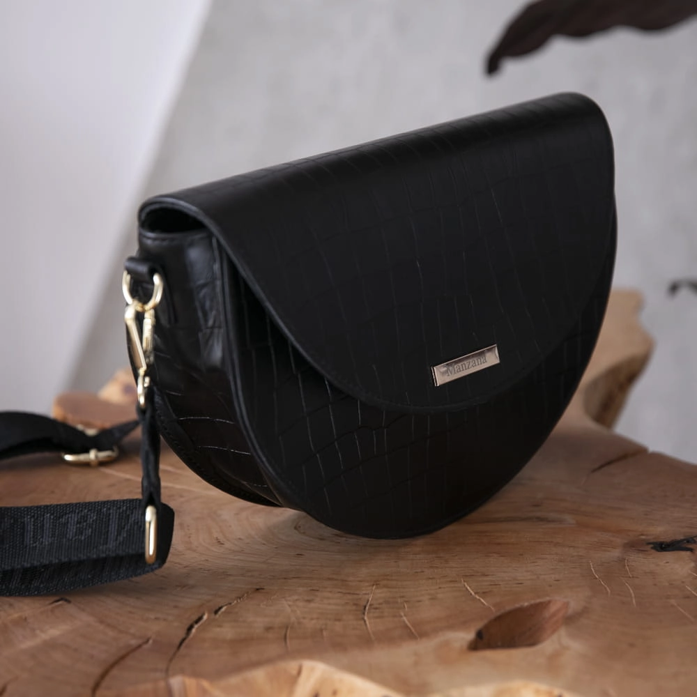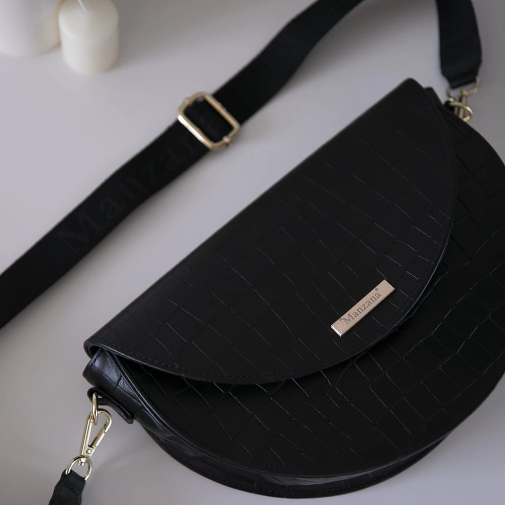 Skóra Naturalna Listonoszka Półksiężyc Klasyczna CZARNY KROKODYL 2 paski