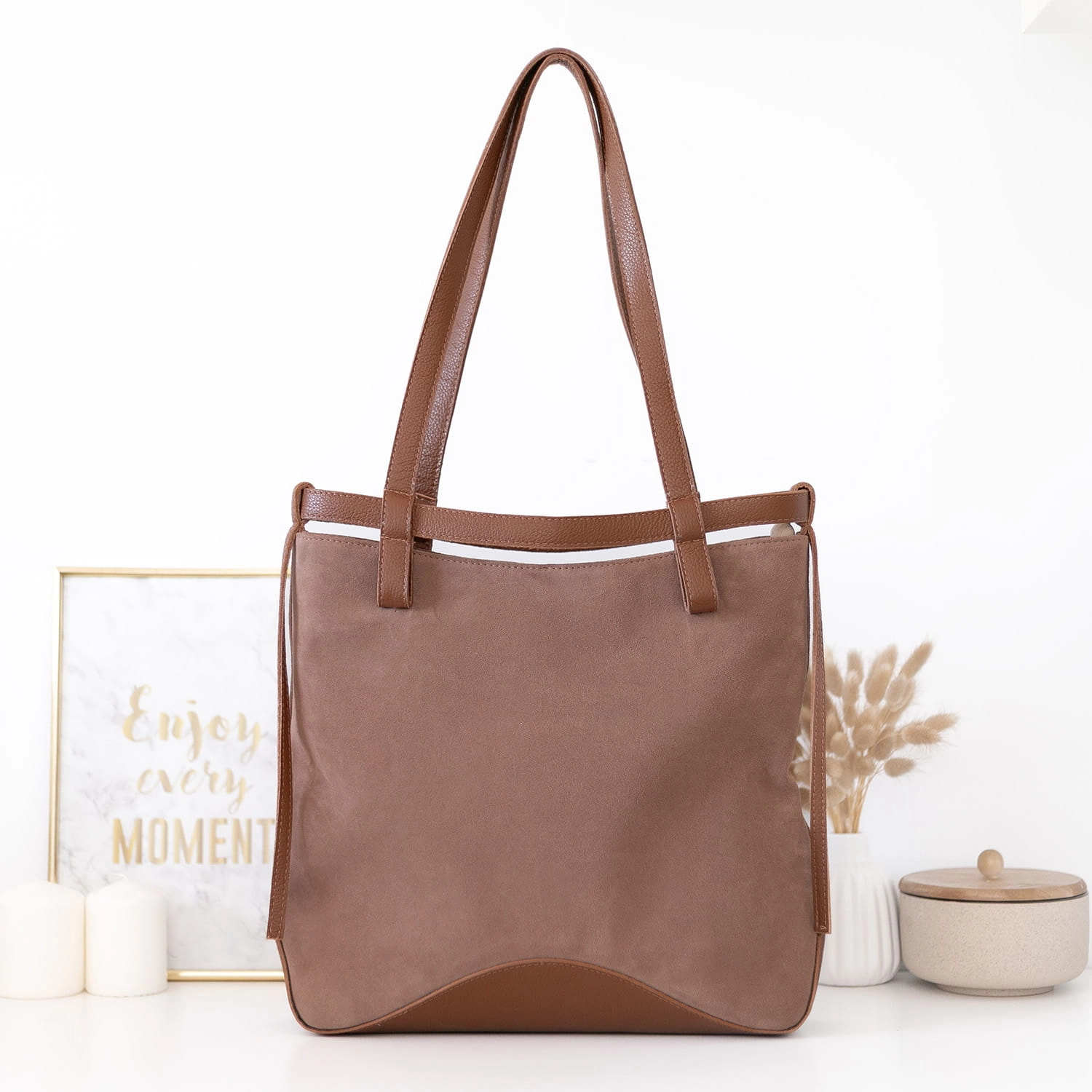 Stylowa i praktyczna torebka IBIZA kolor MOKKA MOUS naturalny zamsz i skóra