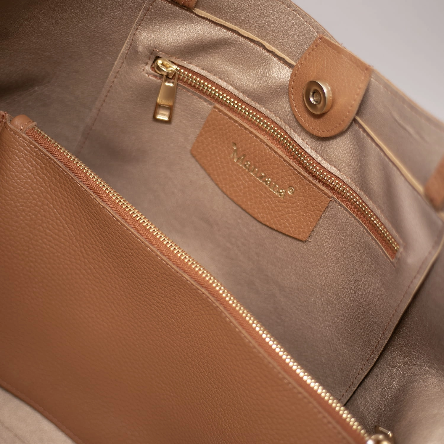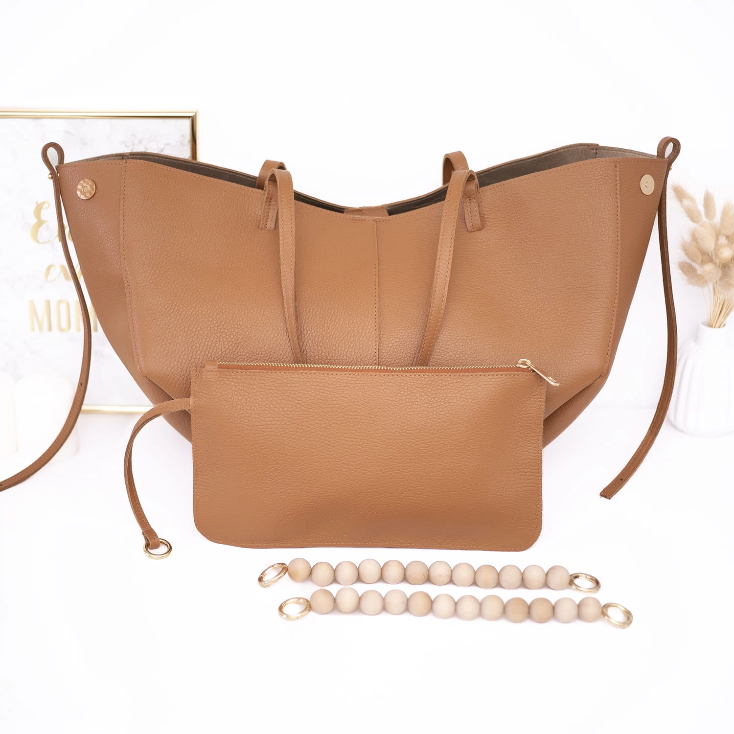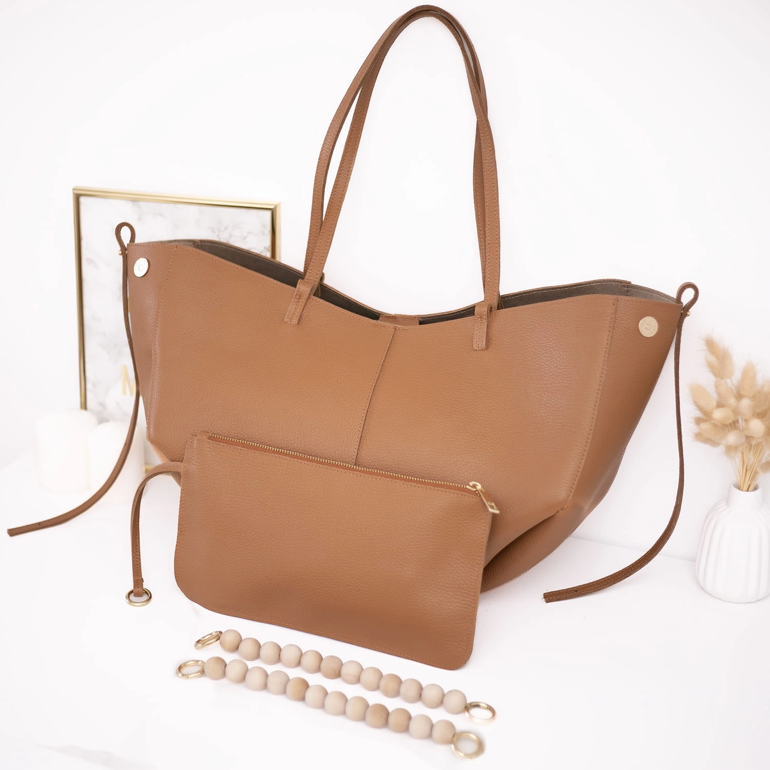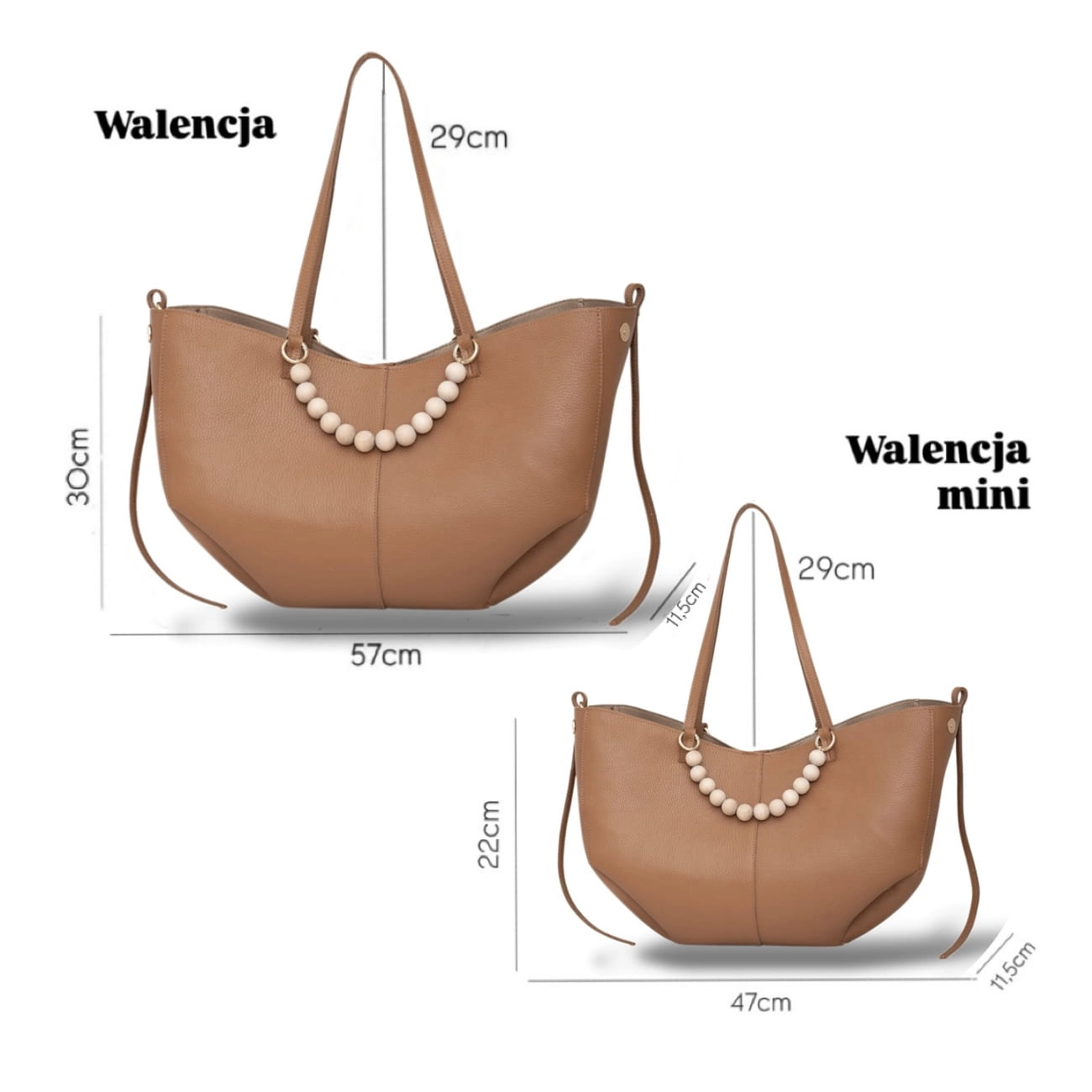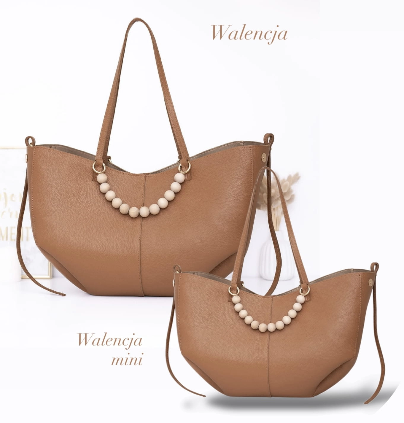 Torebka Walencja z naturalnej skóry KARMEL z wyciąganą kosmetyczka Dwa rodzaje rączek