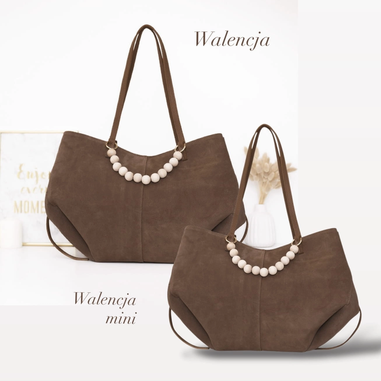 Zamszowa elegancja w dwóch rozmiarach. Klasyczna Walencja została pomniejszona by zachwycać jeszcze bardziej :) Na Waszą prośbę powstała Walencja Mini – mniejsza, lekka i równie stylowa. Ręcznie wykonane torebki, które łączą elegancję, wygodę i wyjątkowy design.