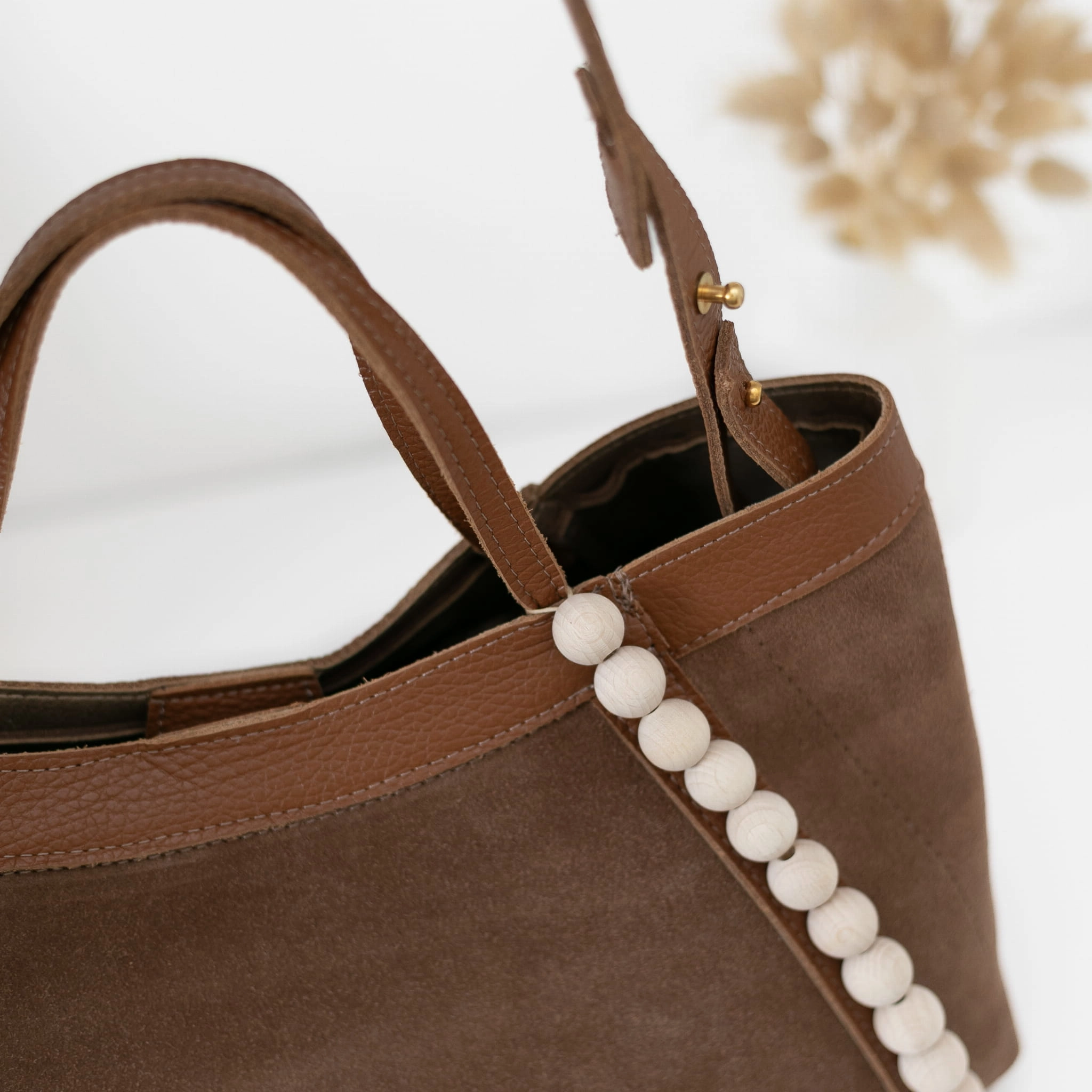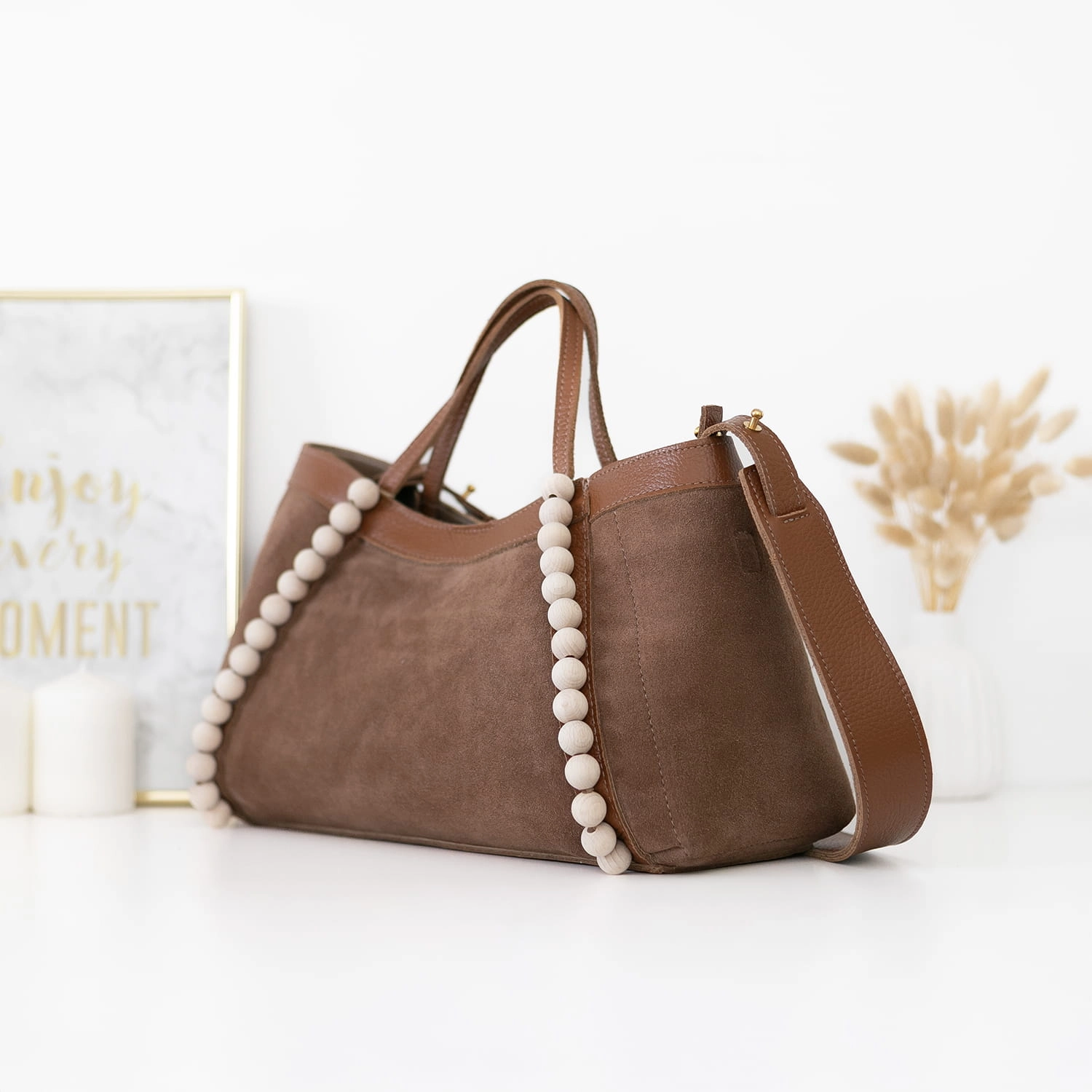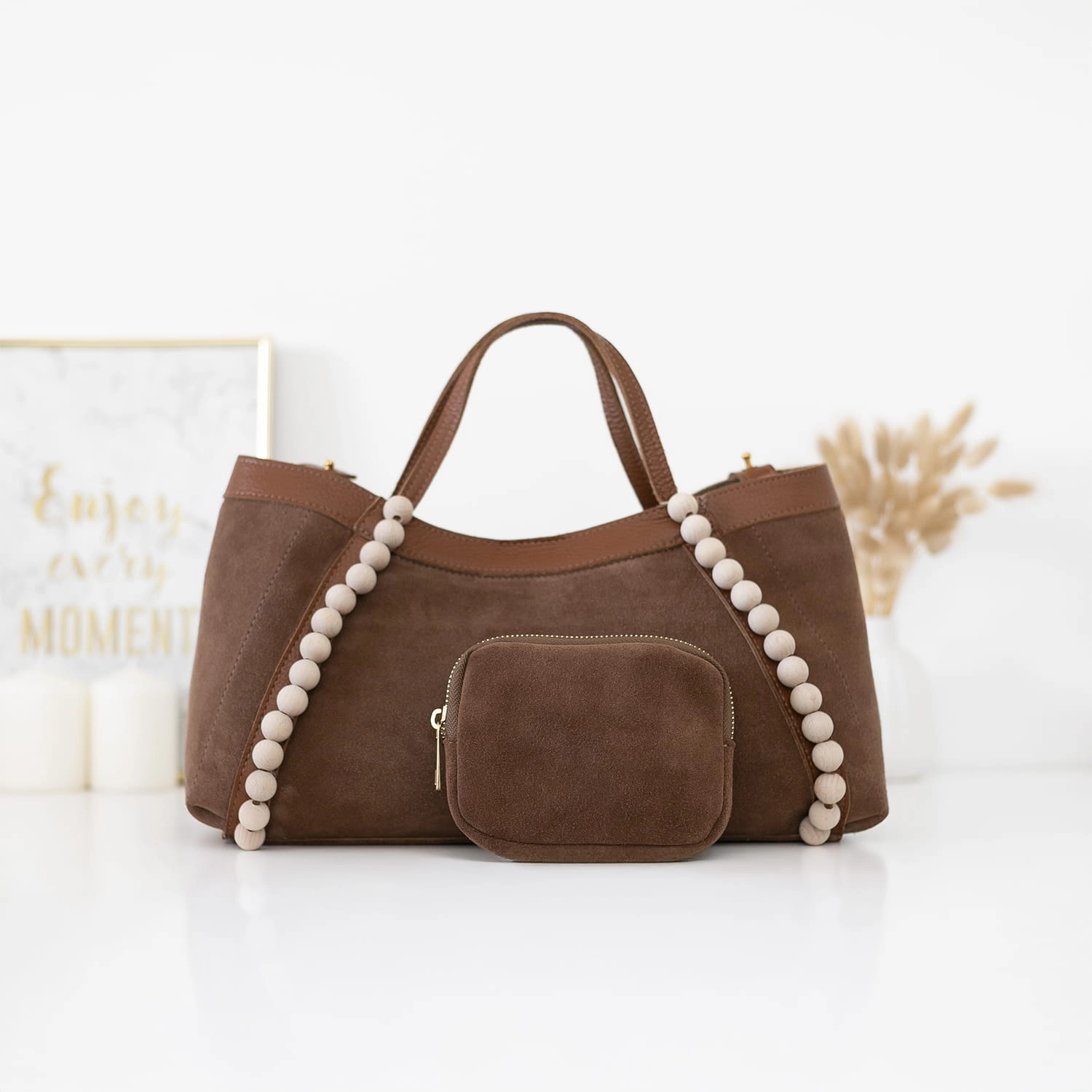 Poznaj naszą nową torebkę Manzana – uszyta z naturalnego zamszu w wyjątkowym kolorze Tabak
