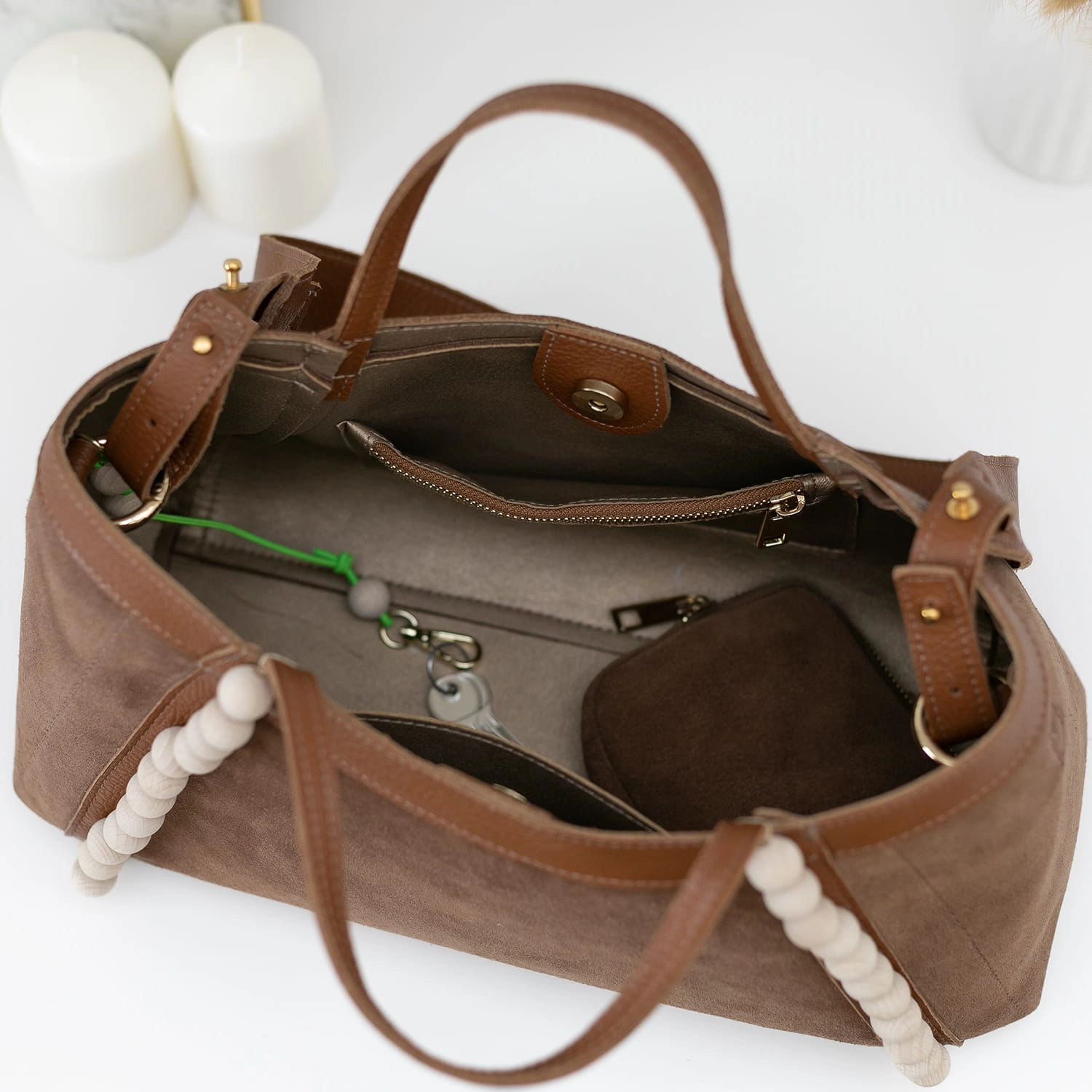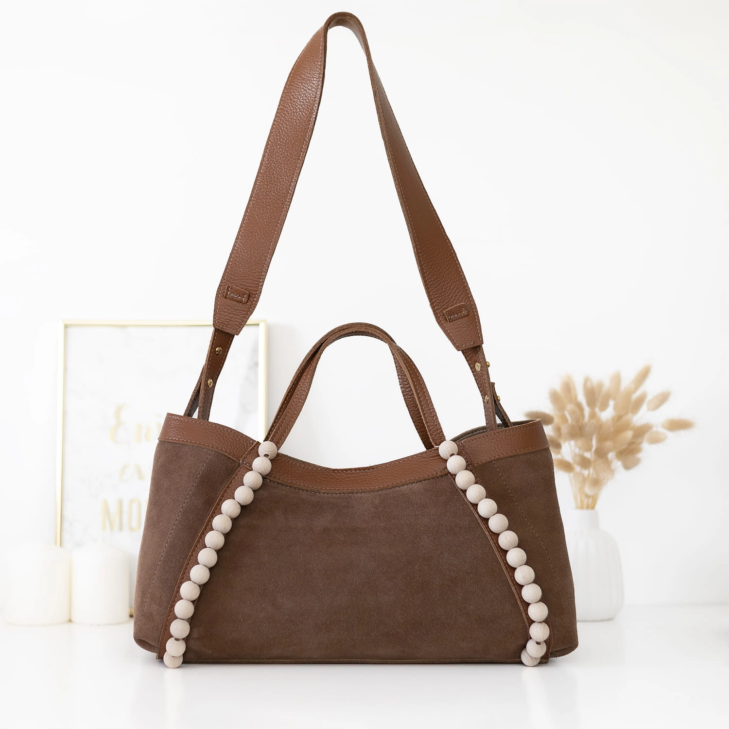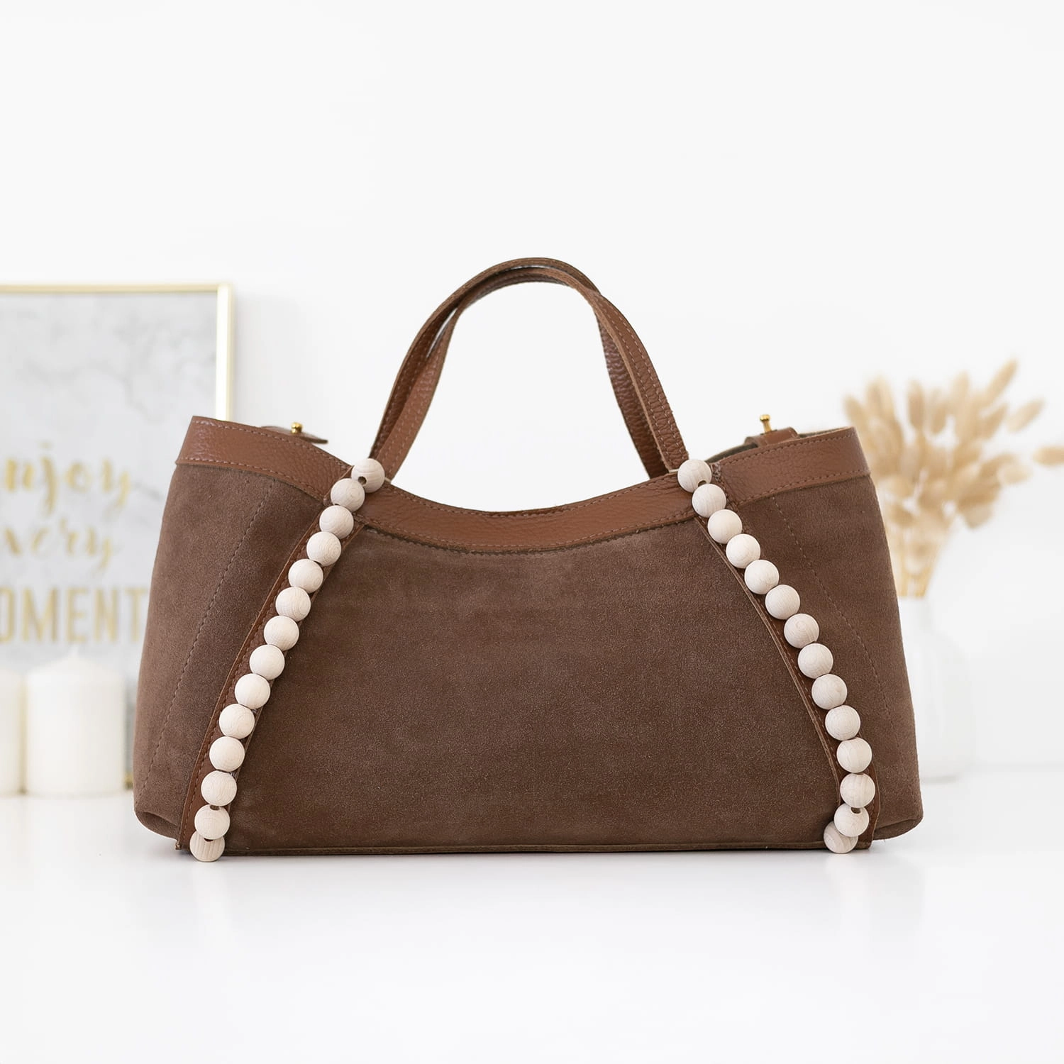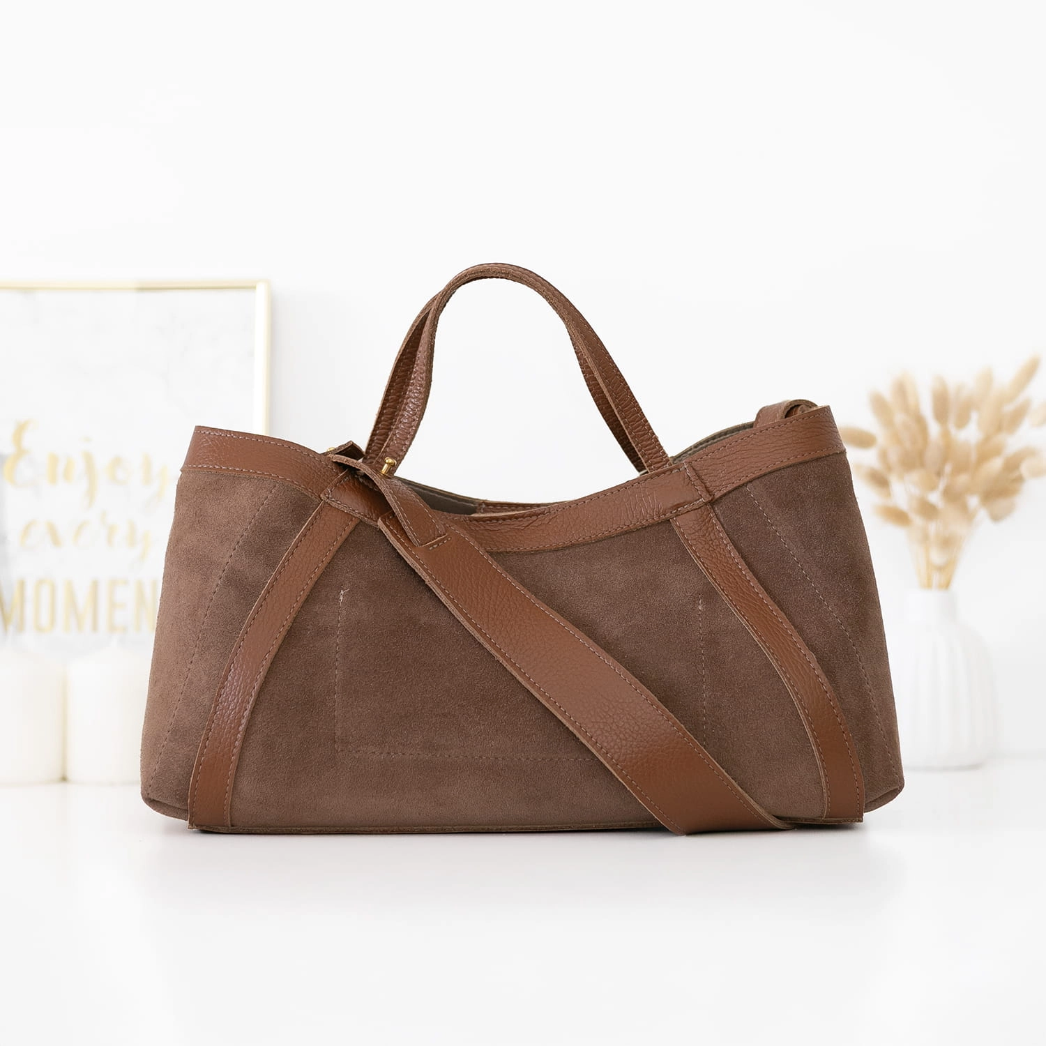 Poznaj naszą nową torebkę Manzana – uszyta z naturalnego zamszu w wyjątkowym kolorze Tabak