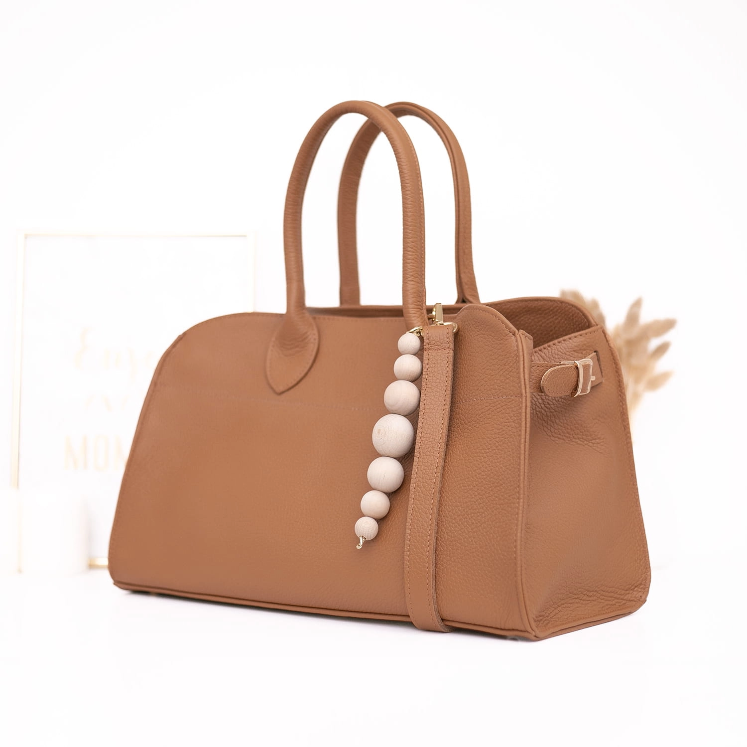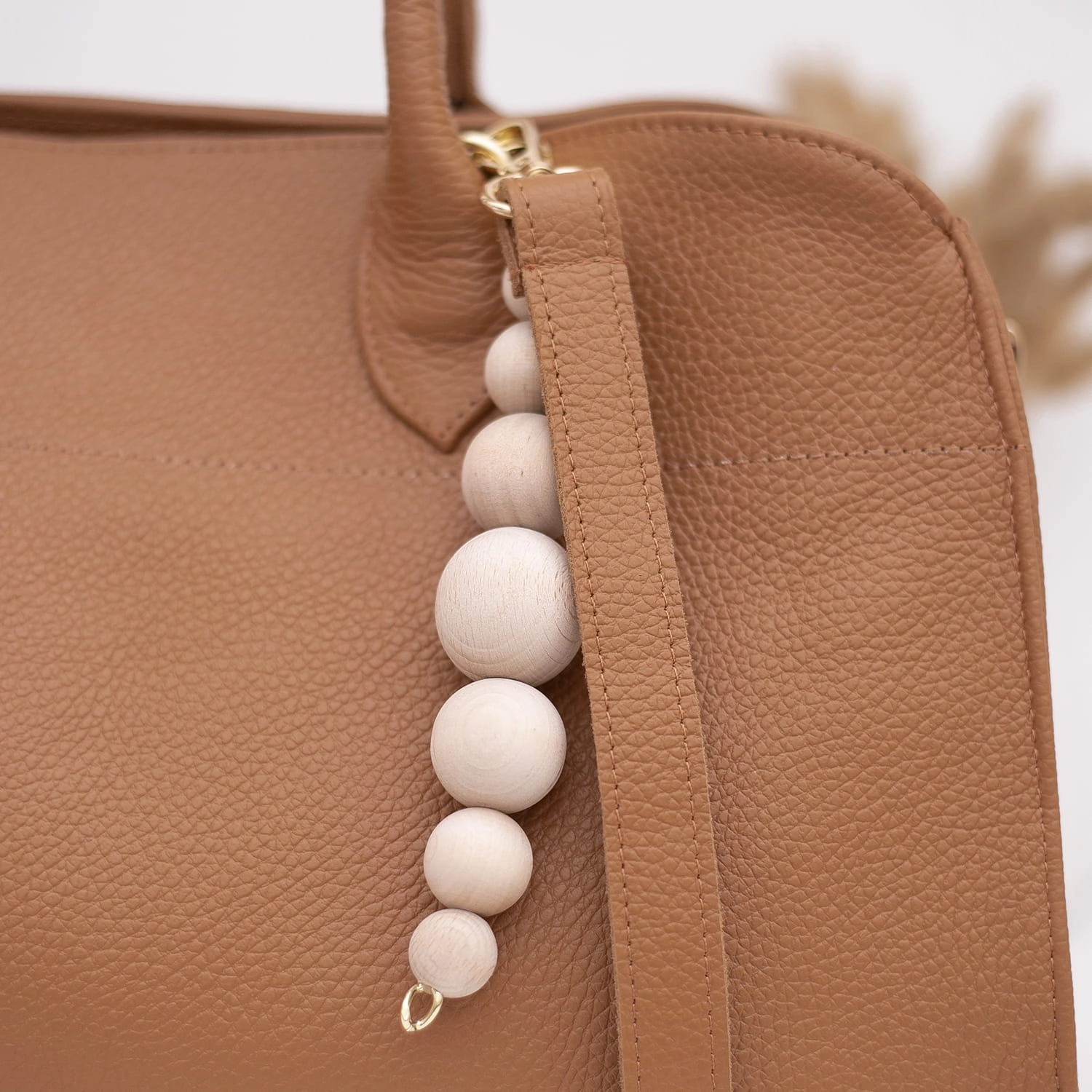 •Dodatki: Stylowy, ozdobny brelok z naturalnymi drewnianymi kulami.