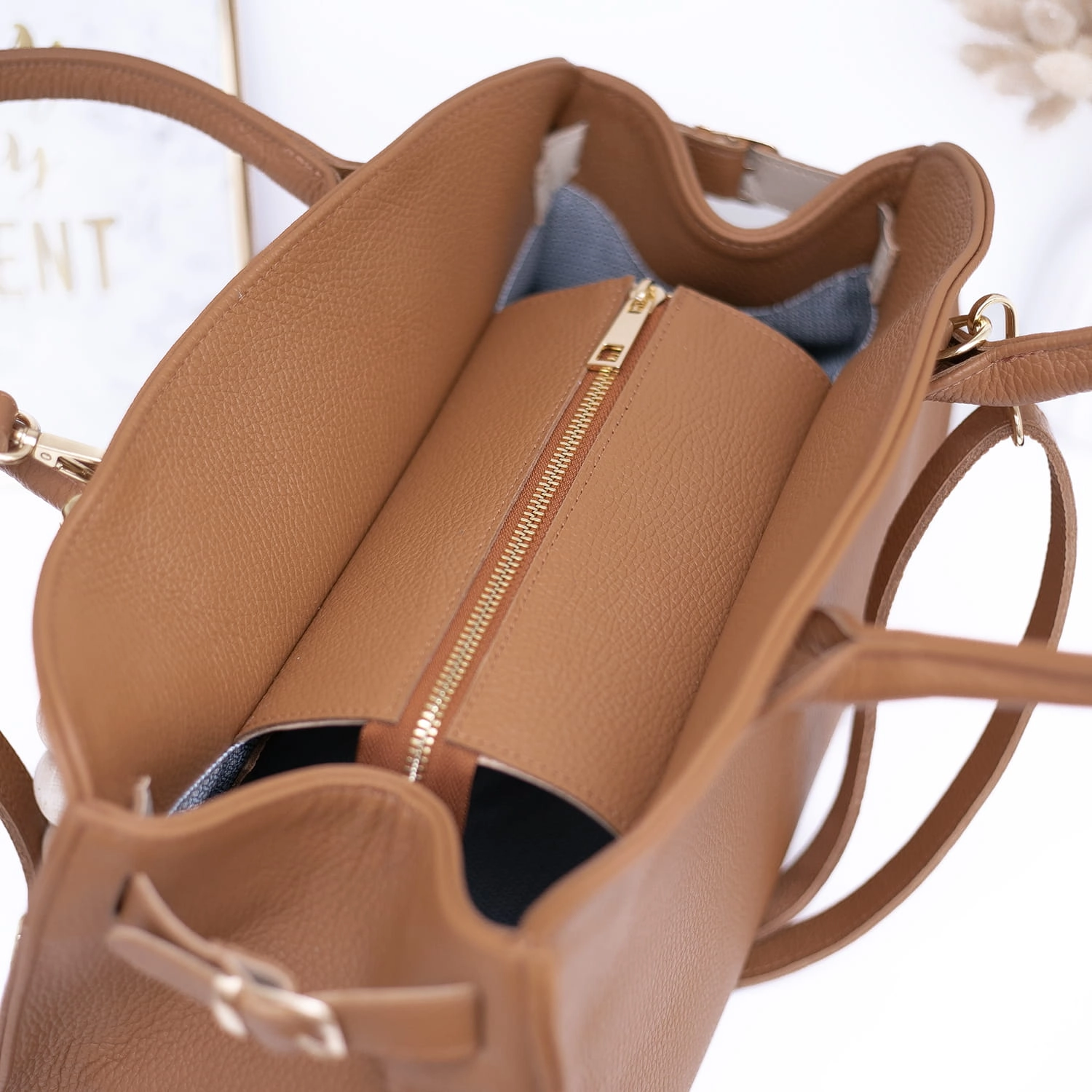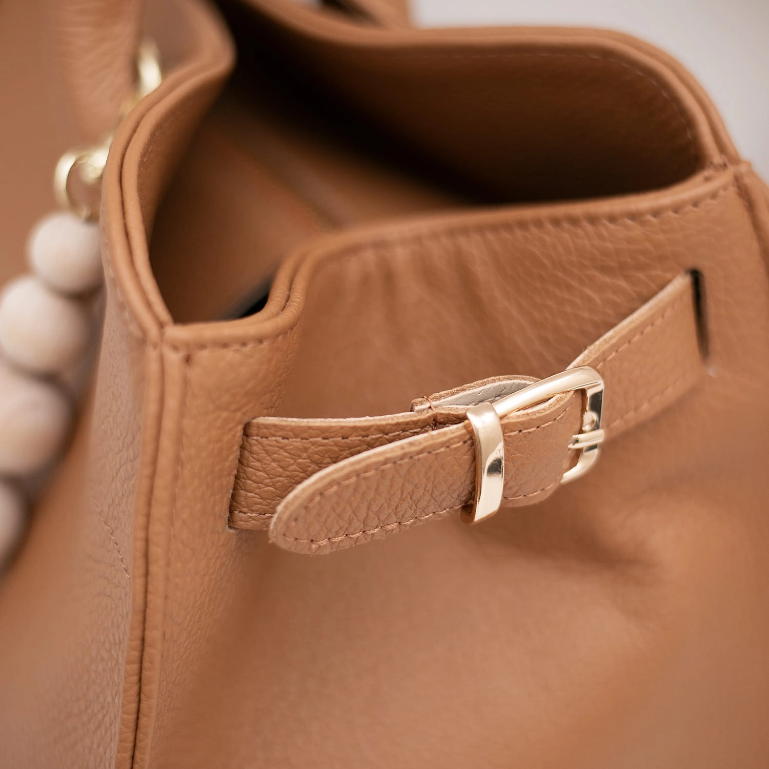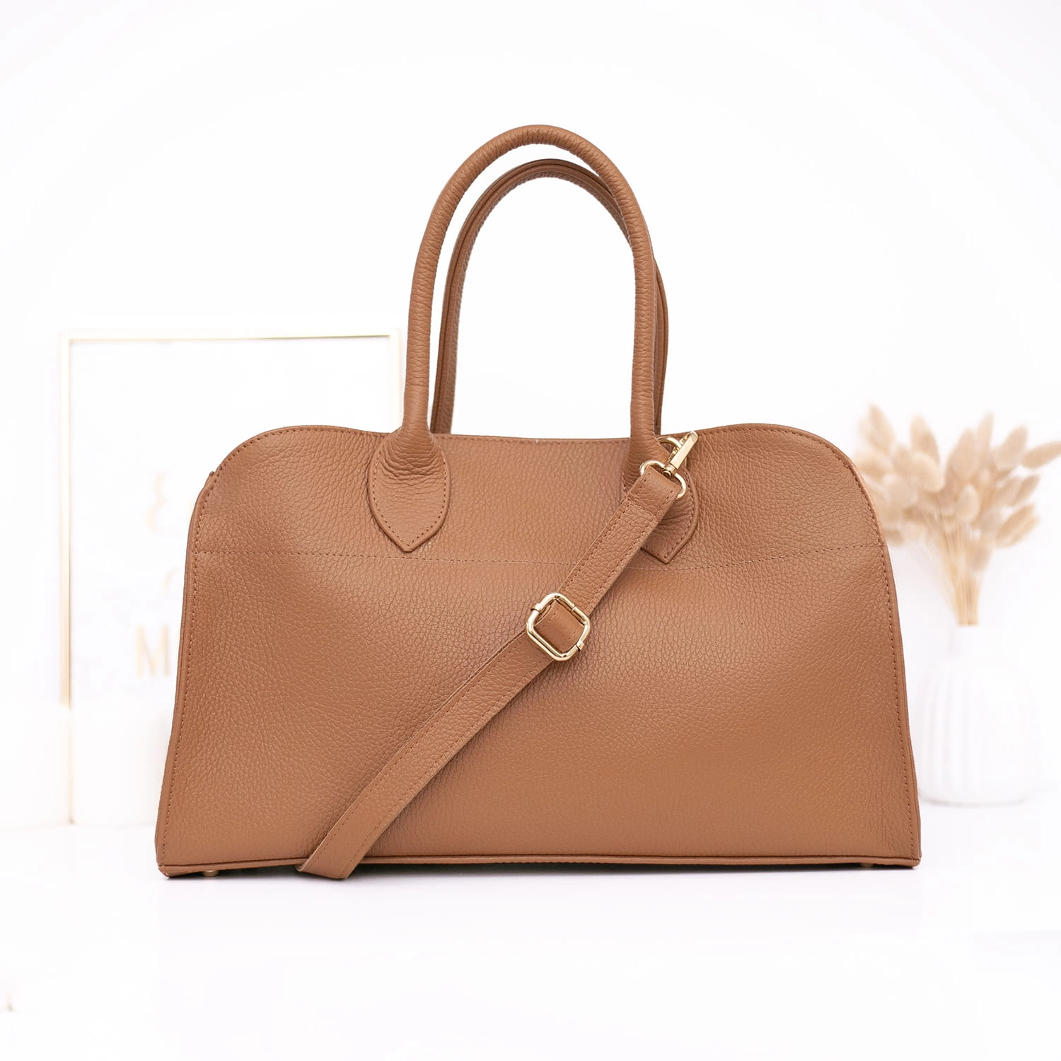 To ręcznie szyty model z naturalnej skóry w przepięknym, karmelowym odcieniu. Jej klasyczny krój i delikatna faktura skóry sprawiają, że pasuje dosłownie do wszystkiego — od codziennych stylizacji po bardziej eleganckie wyjścia.