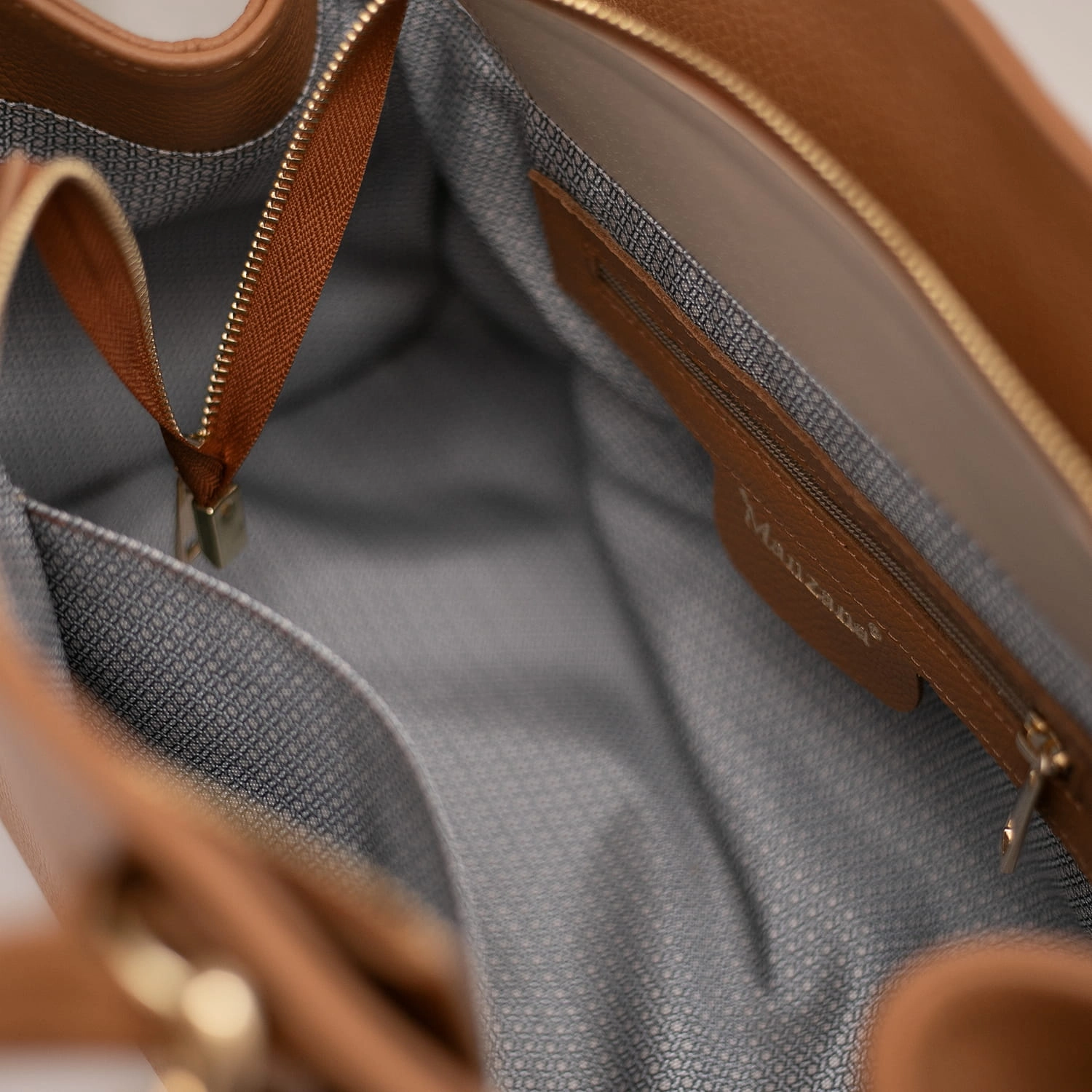 Torebka gwiazd uszyty ręcznie z Naturalnej skóry w kolorze karmelu Model SANTANDER