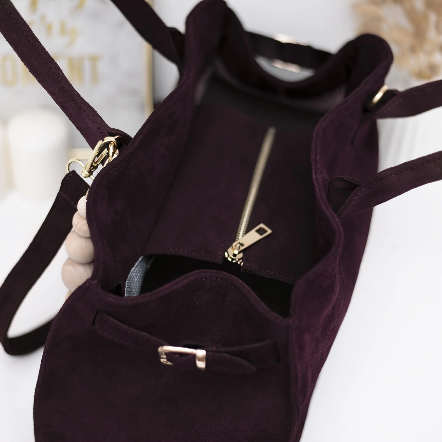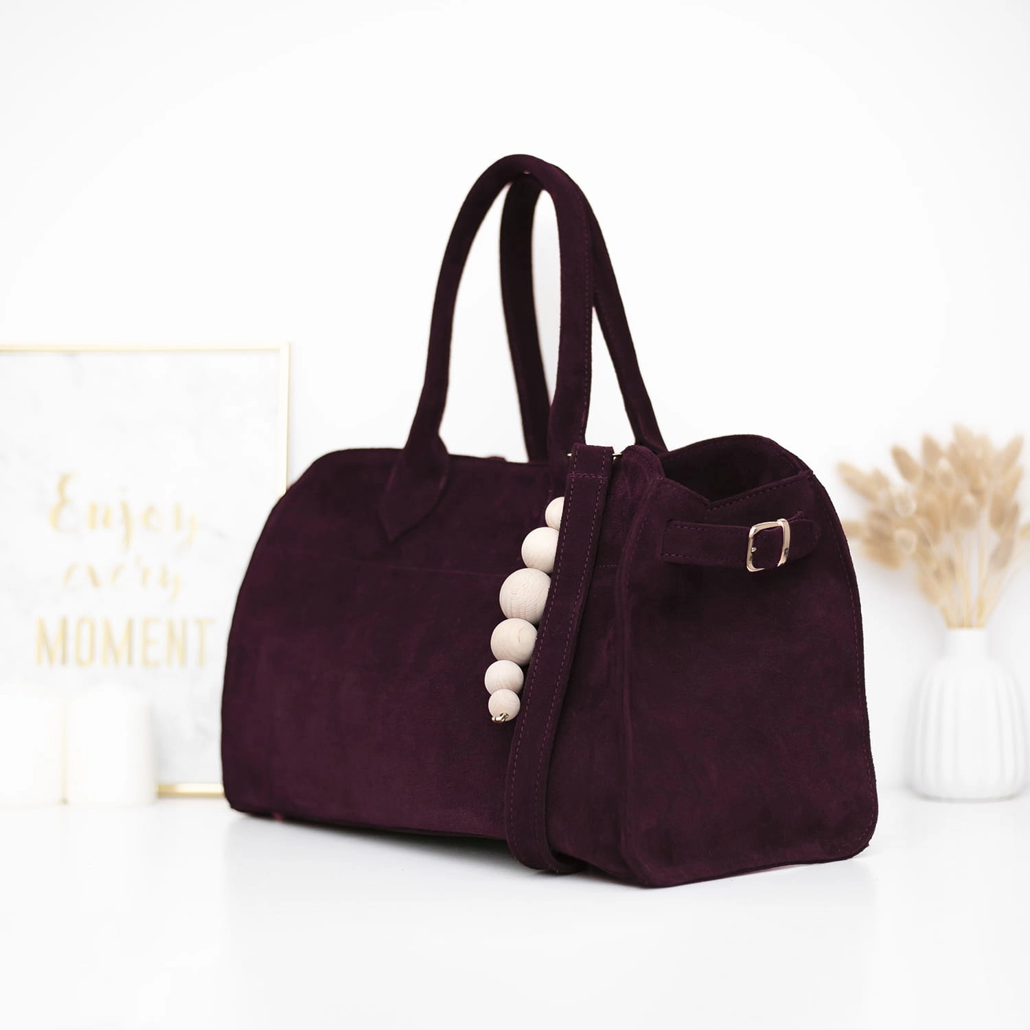 Elegancka bordowa torebka damska zamszowa – Model SANTANDER