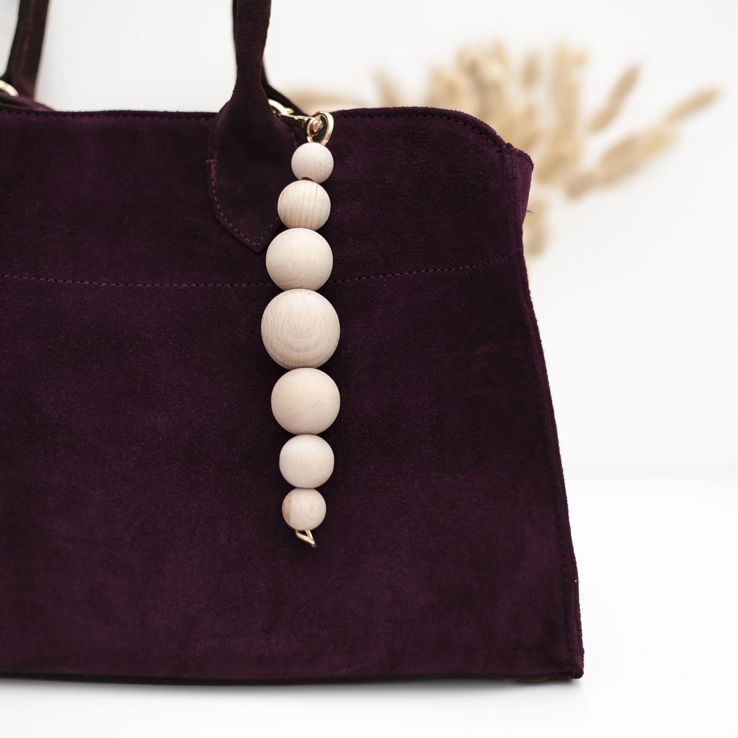 ozdoba z drewnianych koralików, która dodaje wyjątkowego charakteru.