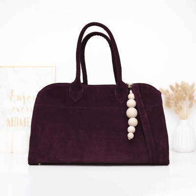 Miejski kuferek Bordowy Naturalny Zamsz Model SANTANDER piękny Shopper bag