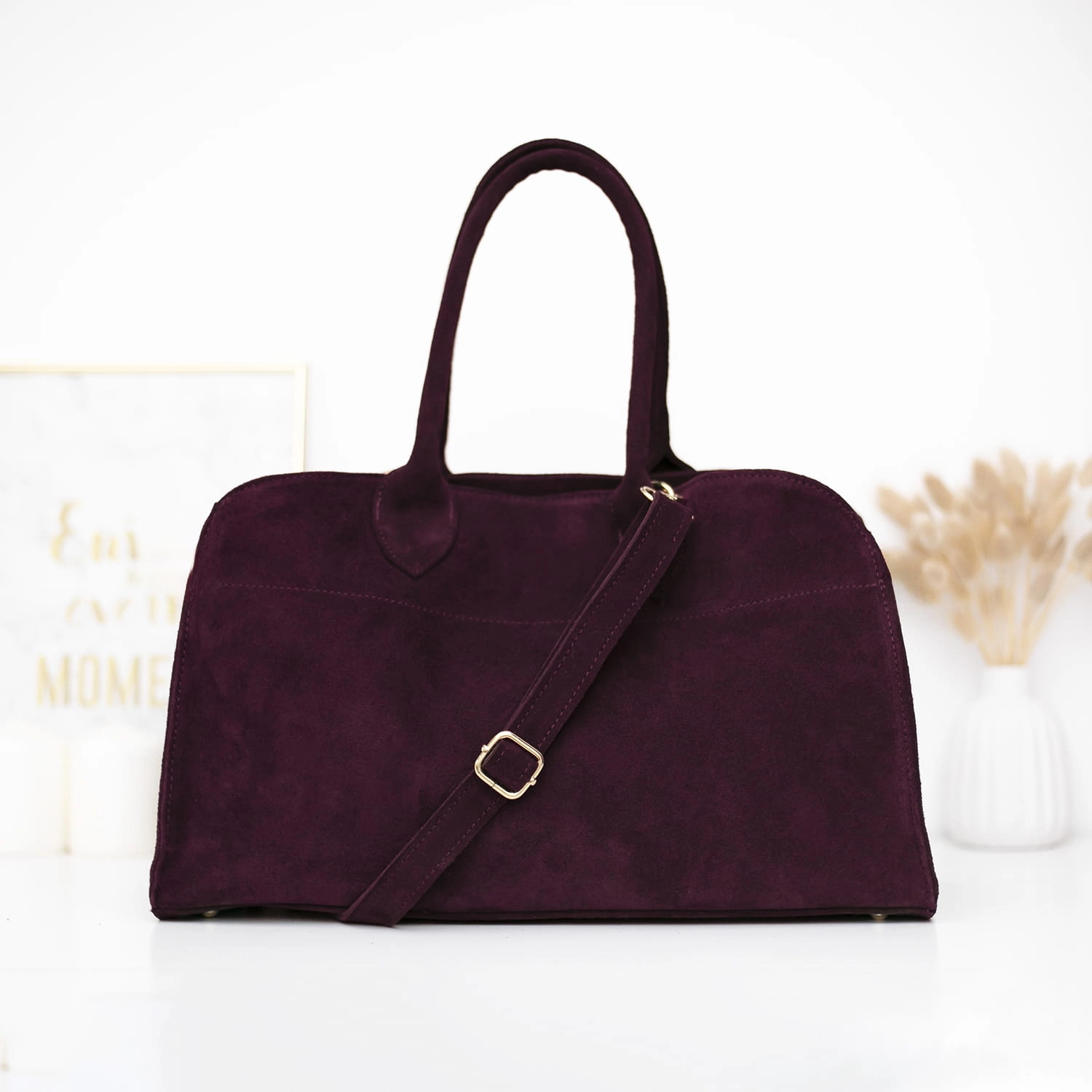 Bordowa torebka damska zamszowa SANTANDER to połączenie klasyki i nowoczesności. Stylowy kuferek marki Emanzana podkreśli Twój look i będzie niezawodnym dodatkiem na wiele sezonów.