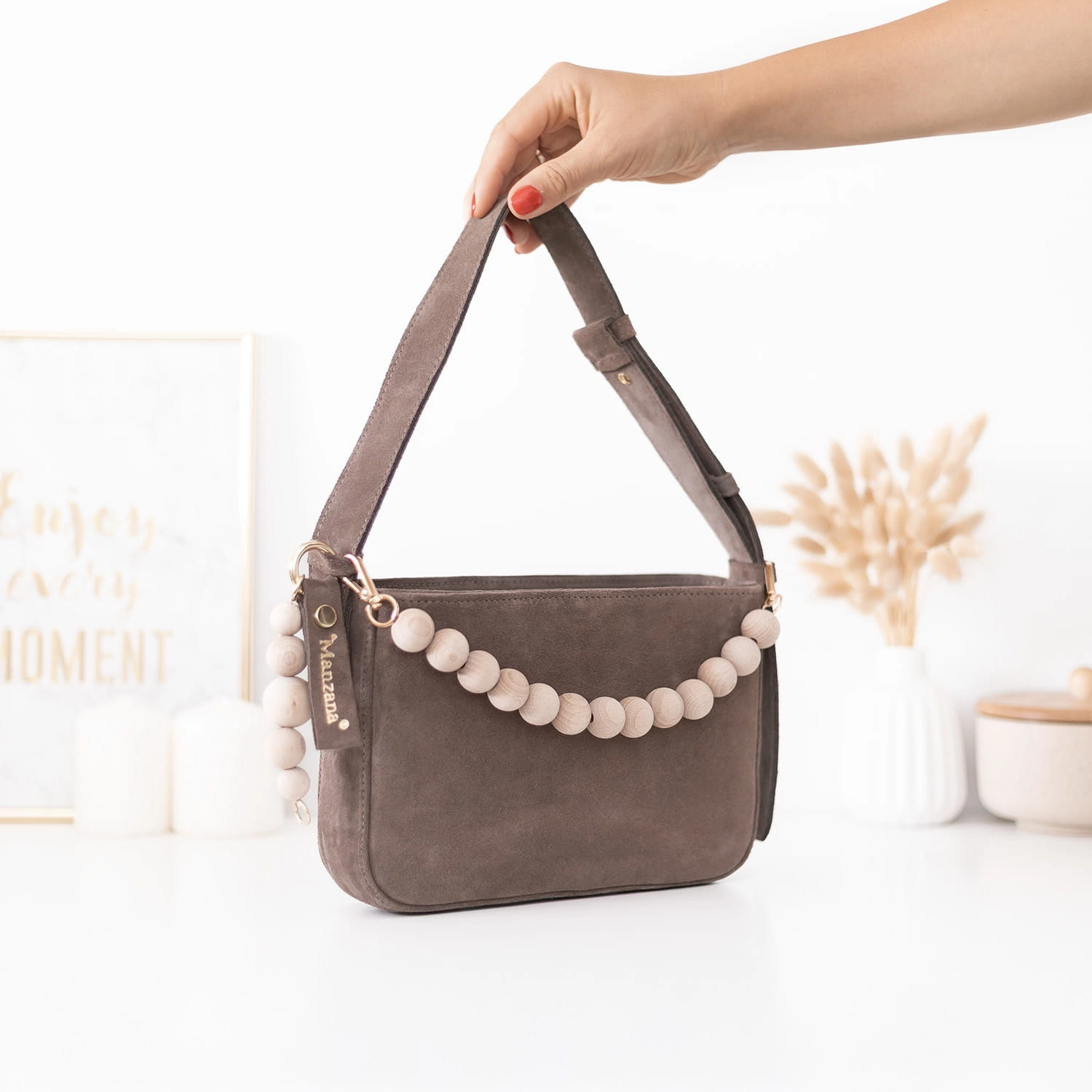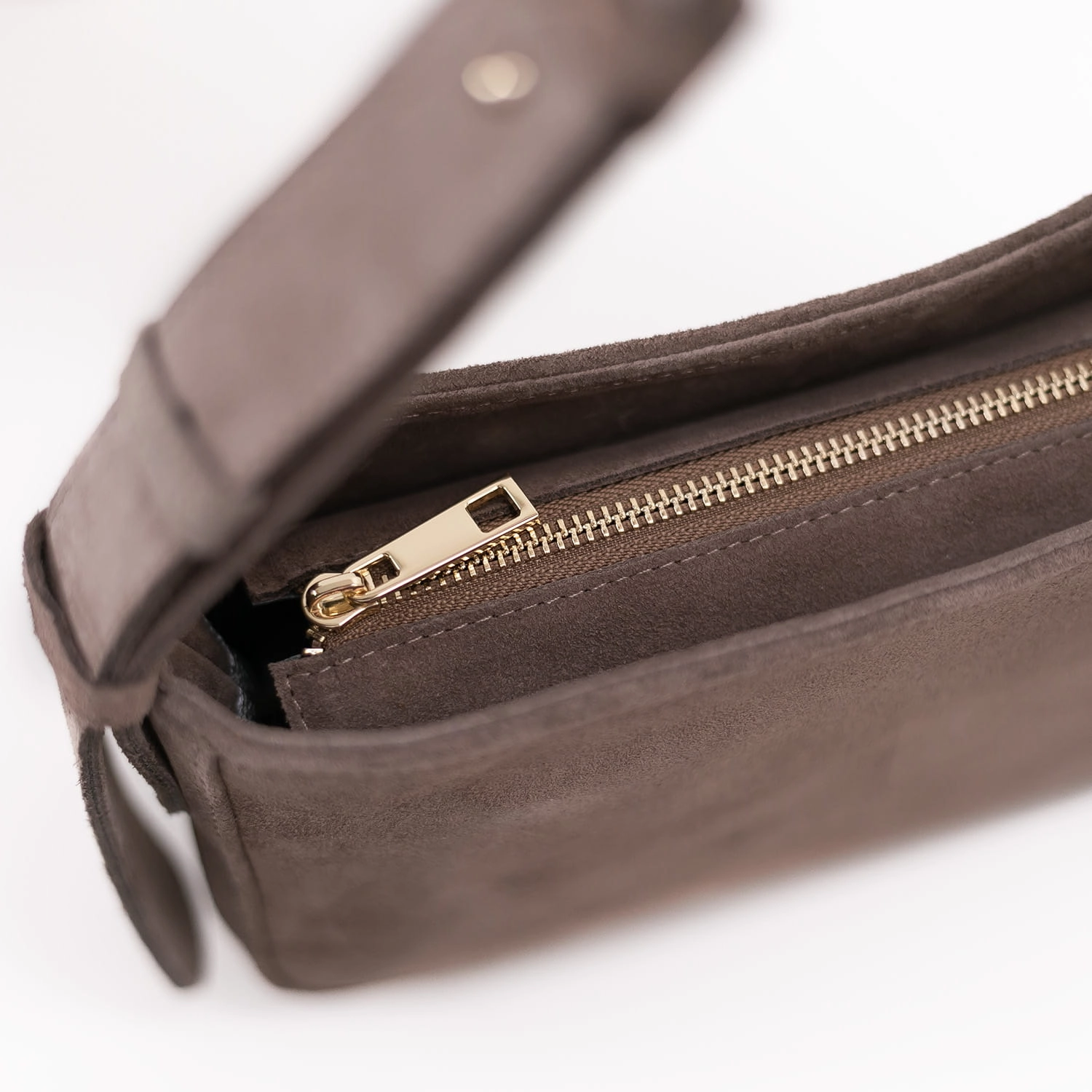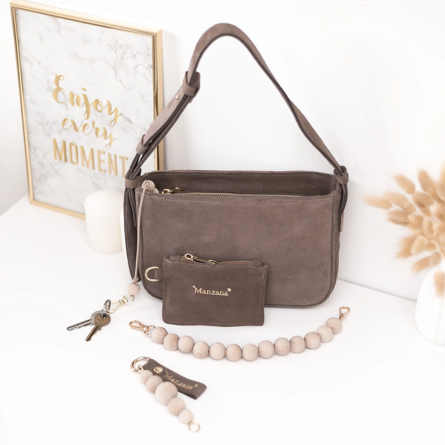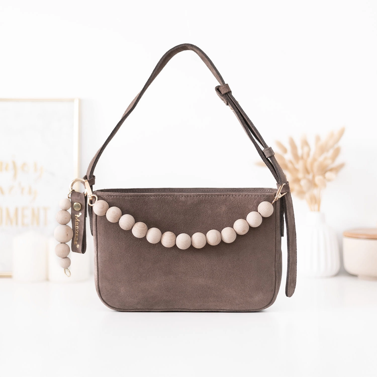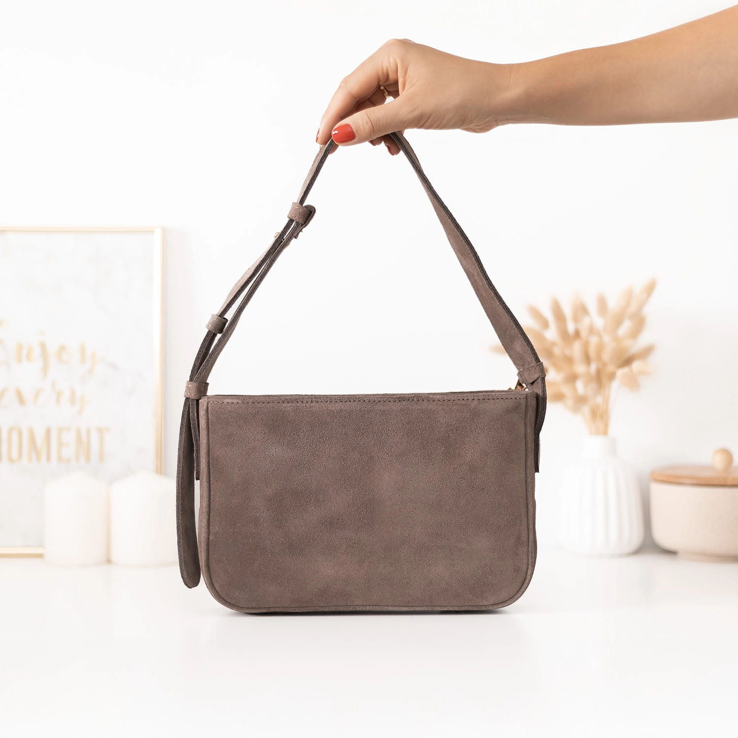 Torebka damska Toledo – zamszowa mleczna czekolada, handmade Polska