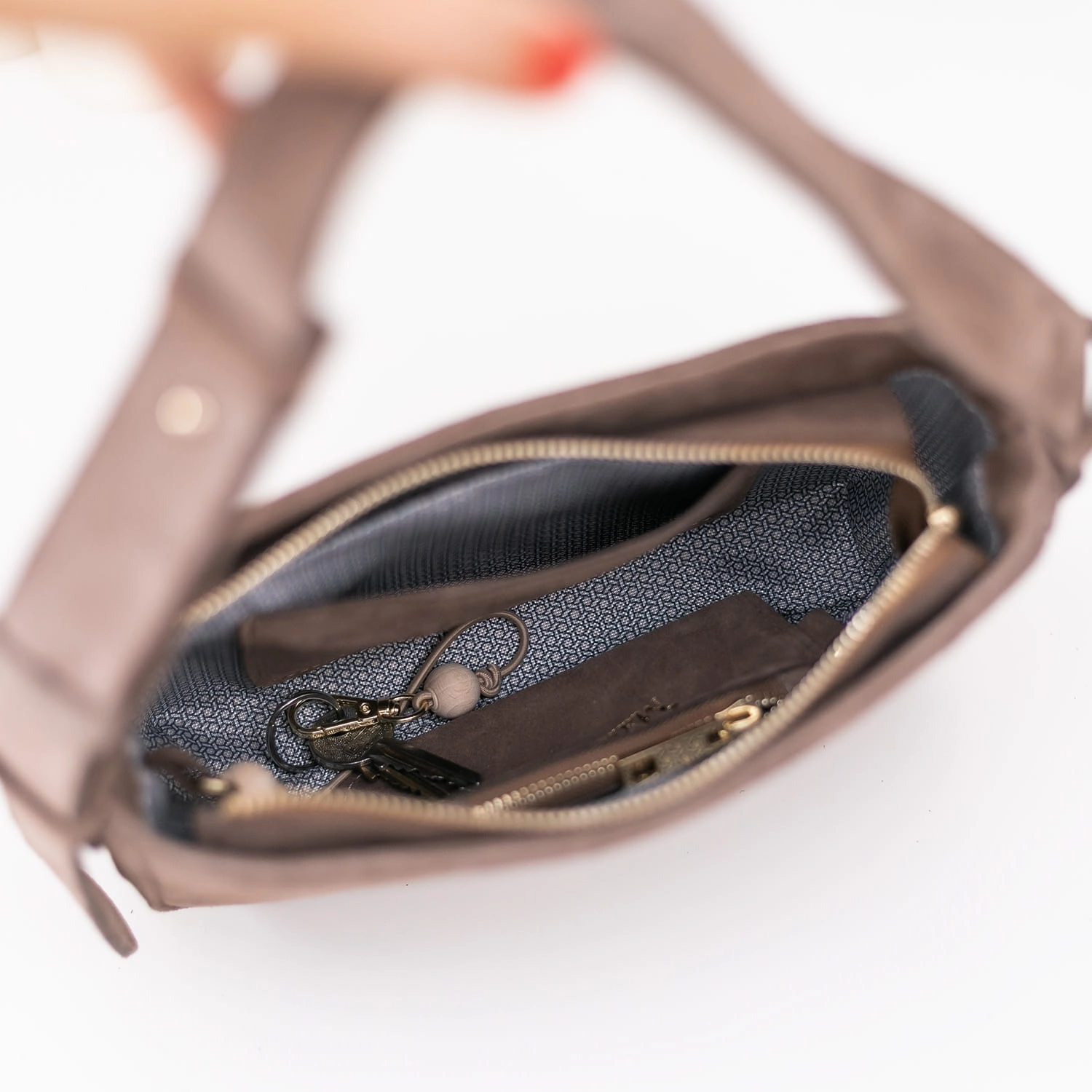 Model Toledo to wyjątkowa torebka damska z naturalnego zamszu w eleganckim kolorze mlecznej czekolady – modny odcień sezonu 2025. To mała torebka na ramię lub crossbody, która łączy nowoczesny design, ponadczasową elegancję i praktyczne rozwiązania. Ręcznie szyta w Polsce, zachwyca jakością wykonania i możliwością personalizacji.