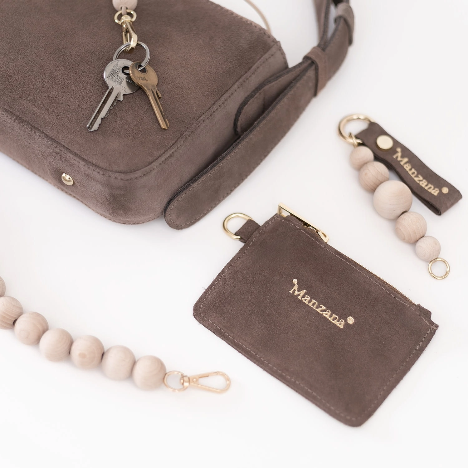 Mała torebka Toledo z portfelikiem i dodatkami Naturalny zamsz MLECZNA CZEKOLADA
